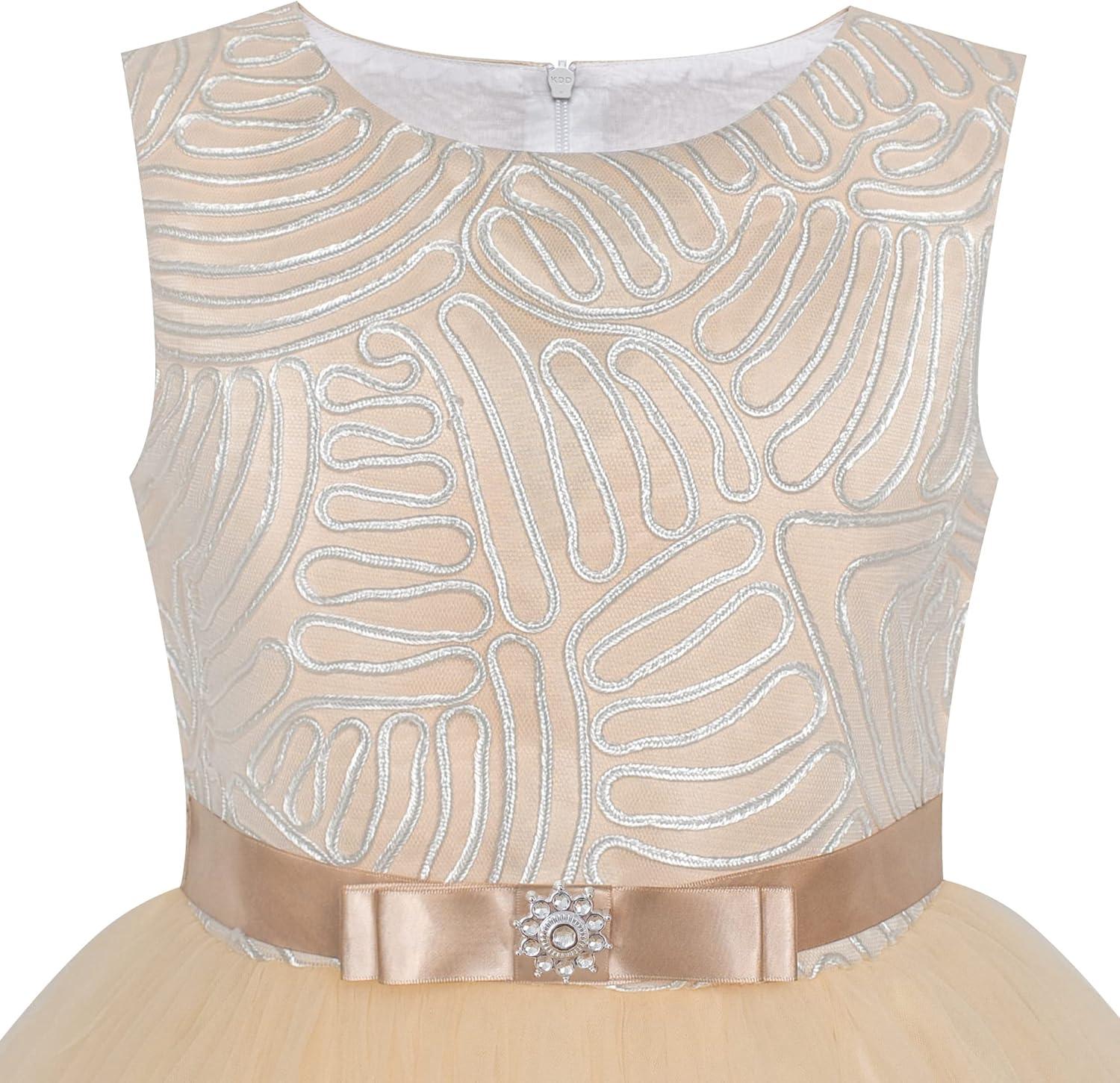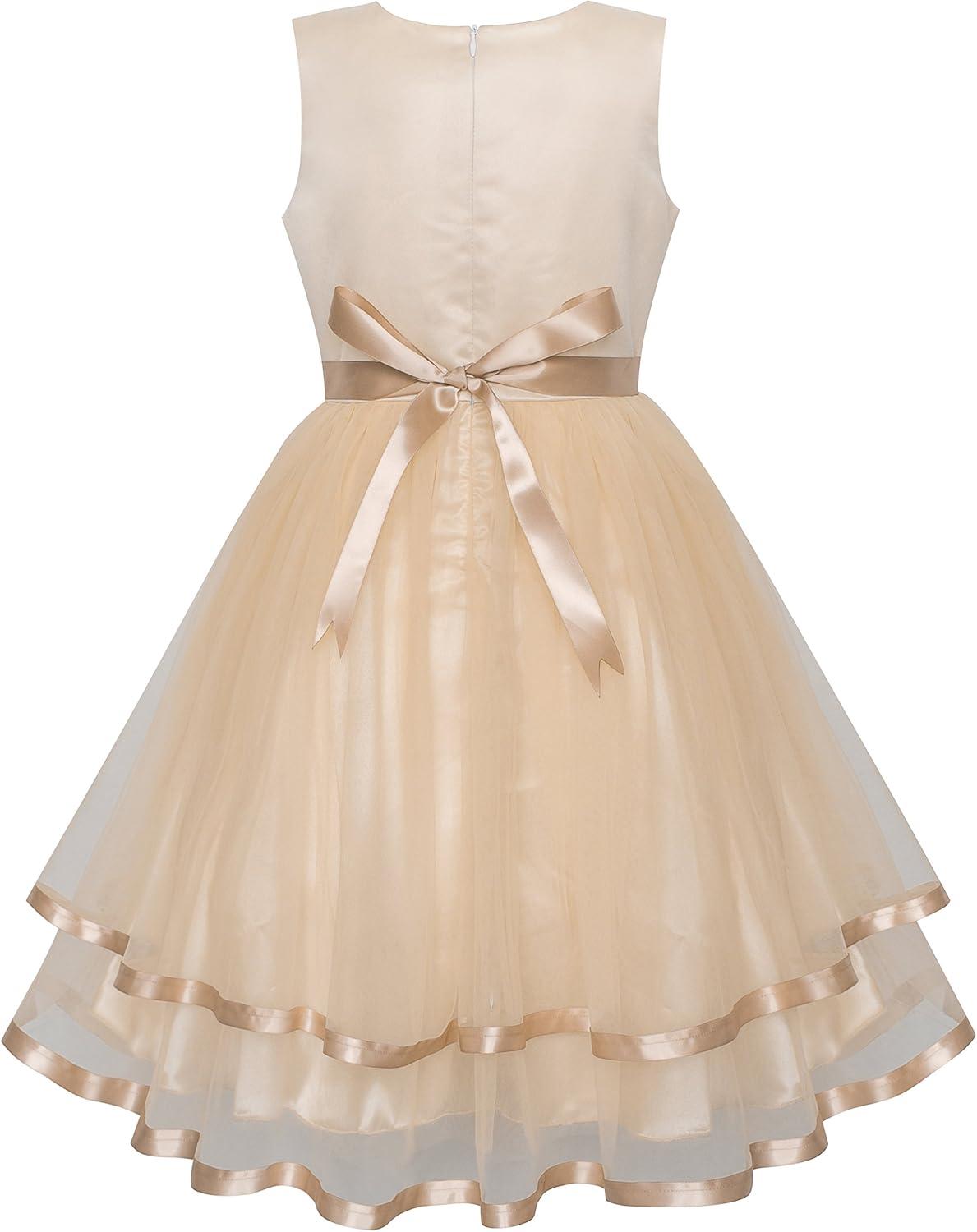 - Sunny Fashion Flower Girls Dress Blue Belted Wedding Party Bridesmaid Size 4-12(Beige)