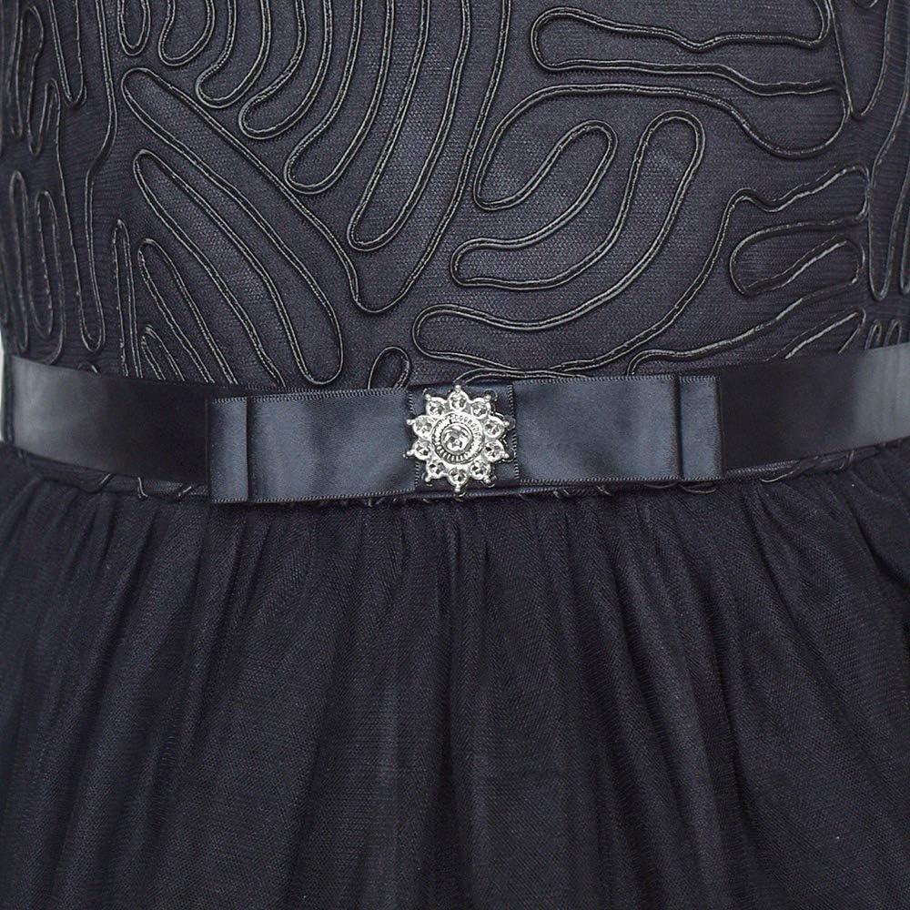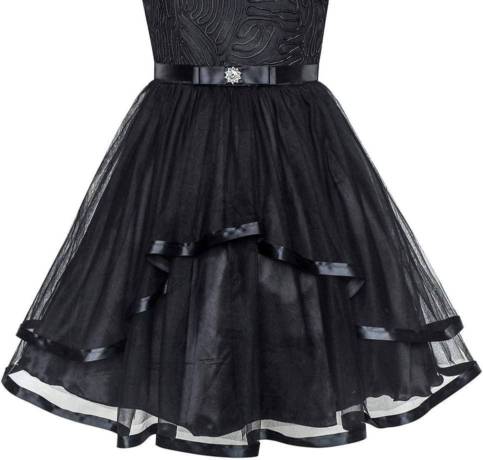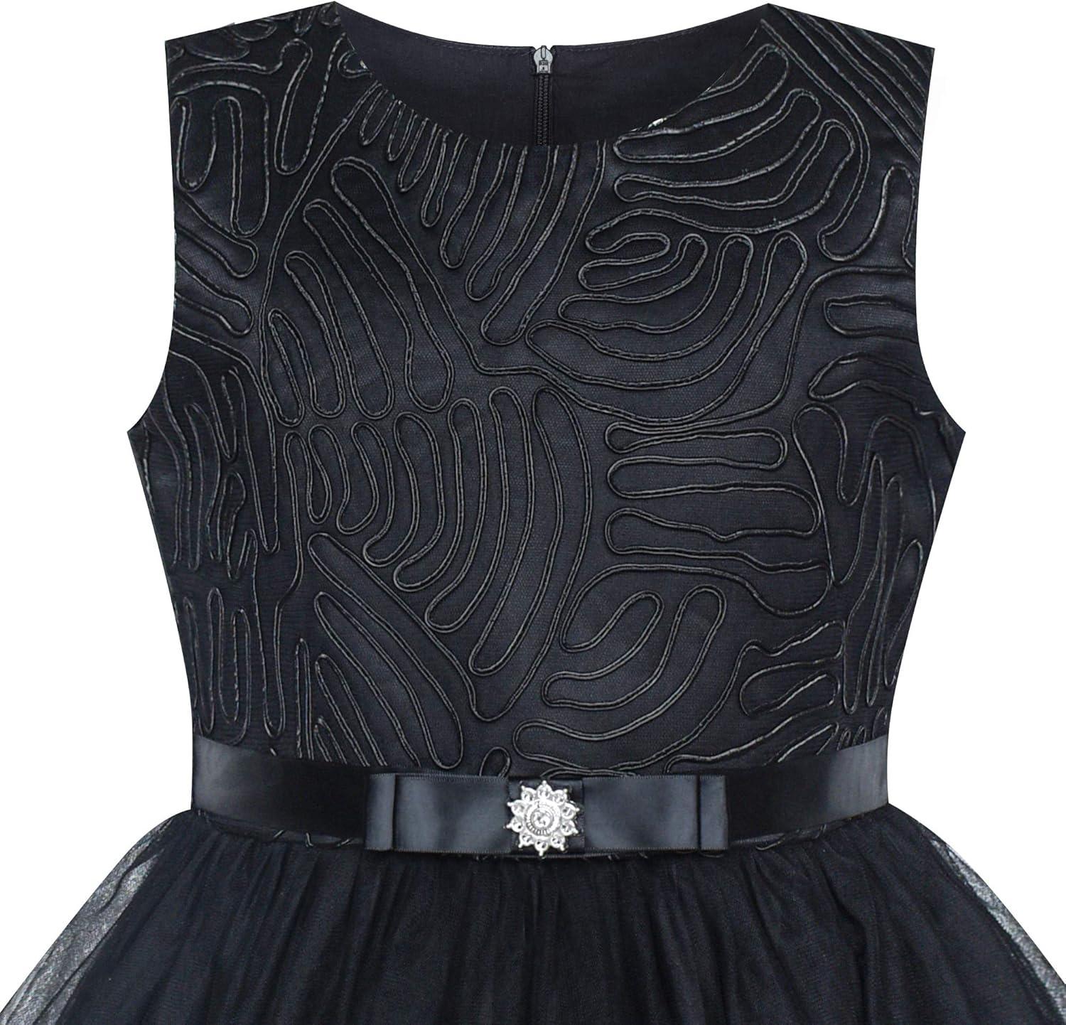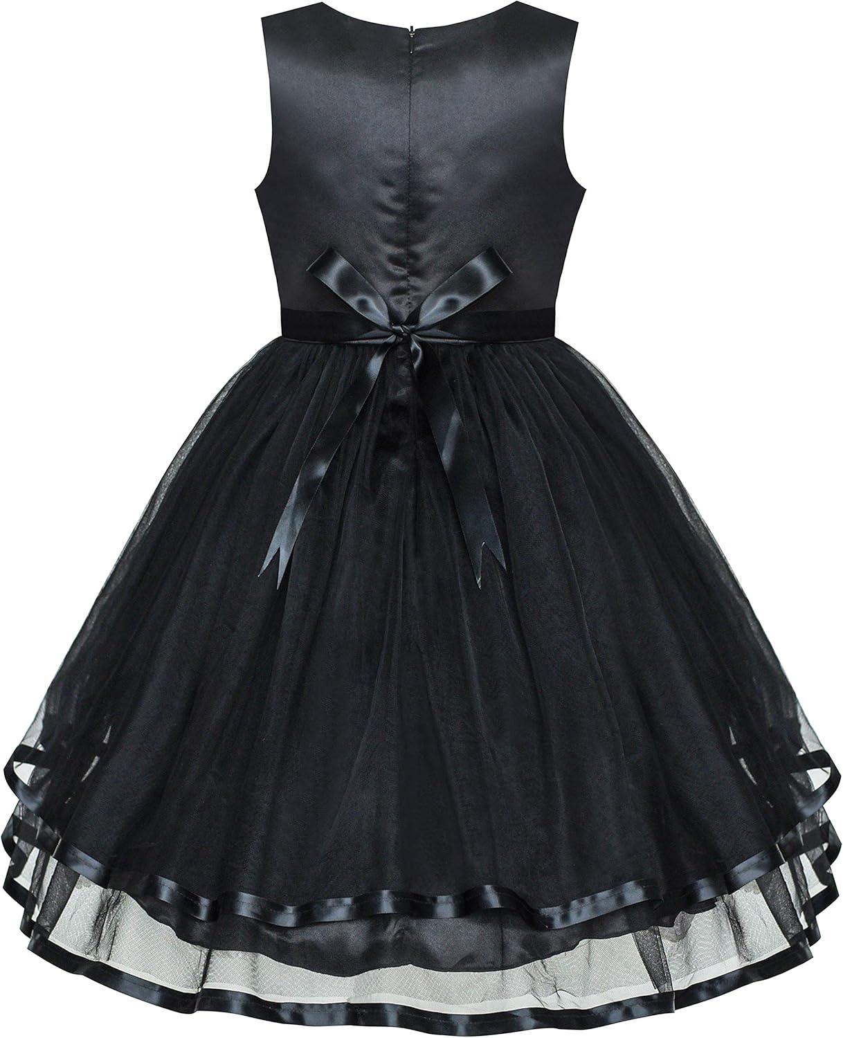 - Sunny Fashion Flower Girls Dress Blue Belted Wedding Party Bridesmaid Size 4-12(Black)