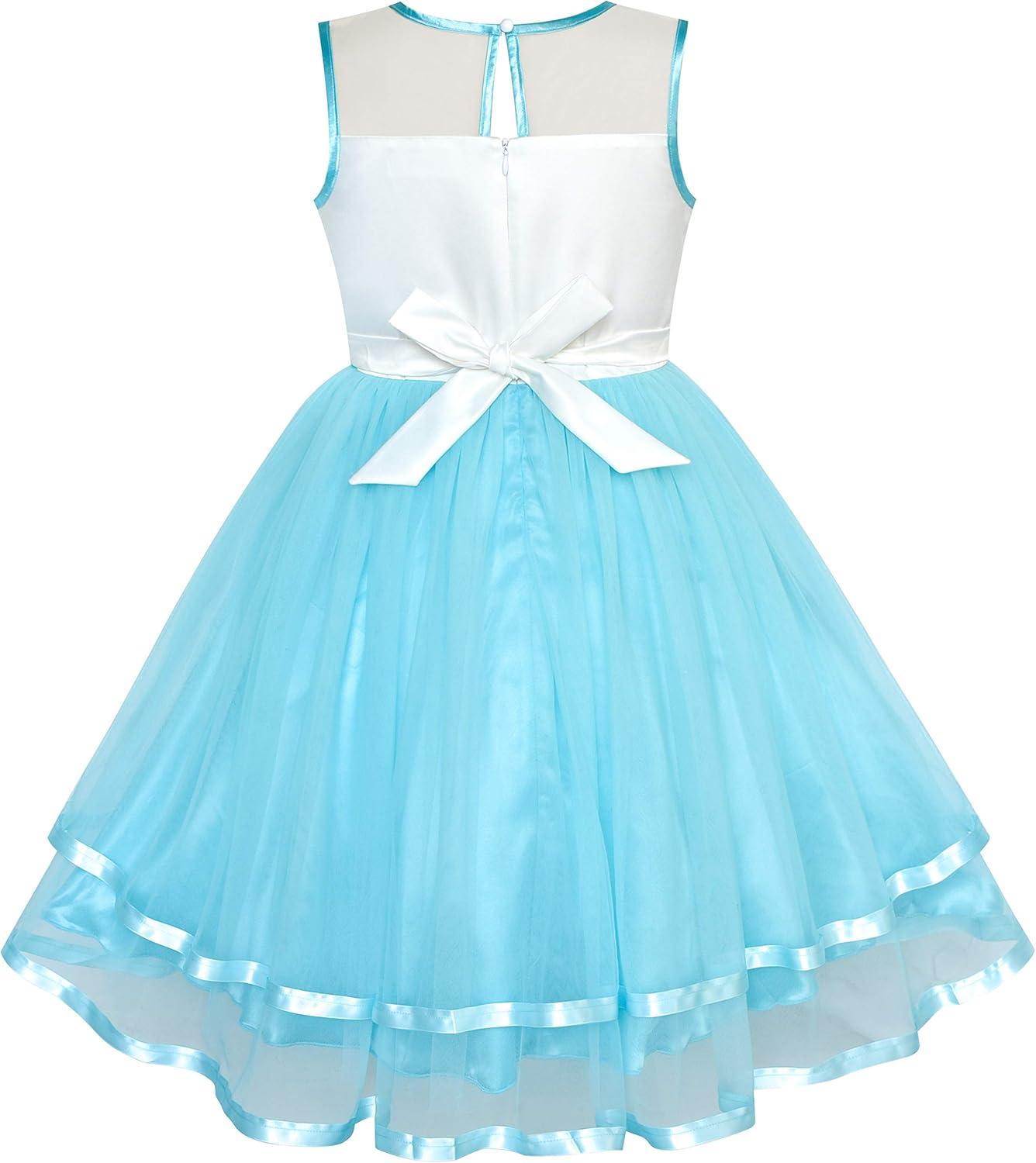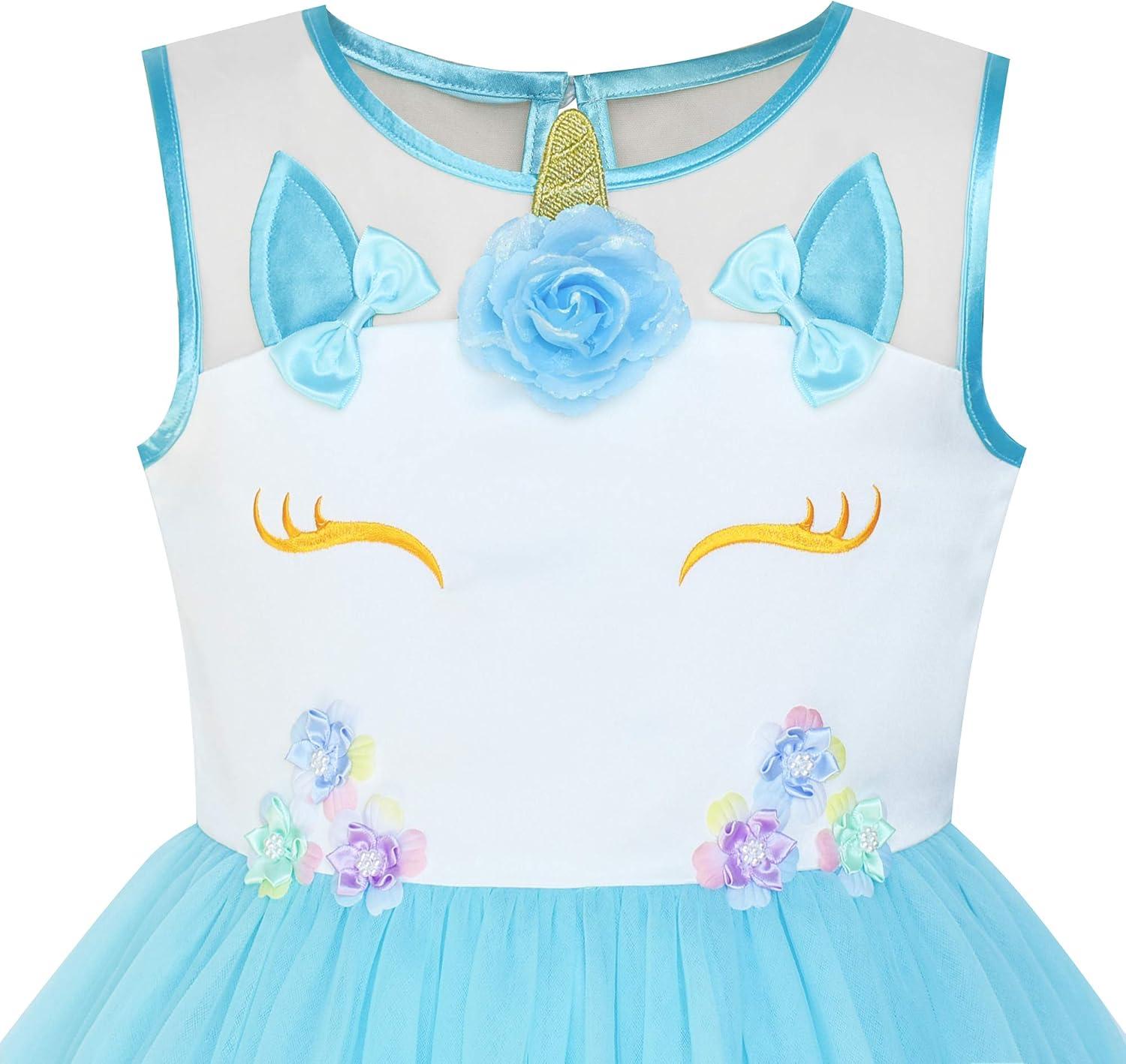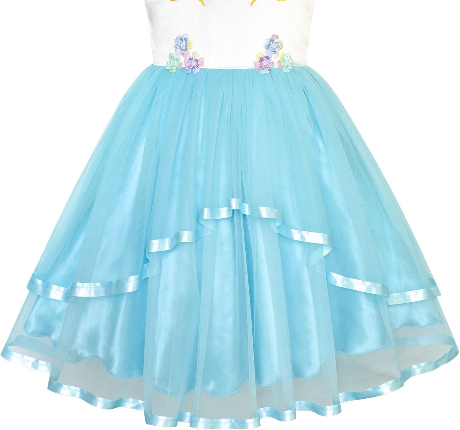 - Sunny Fashion Flower Girls Dress Blue Belted Wedding Party Bridesmaid Size 4-12(Blue Unicorn)