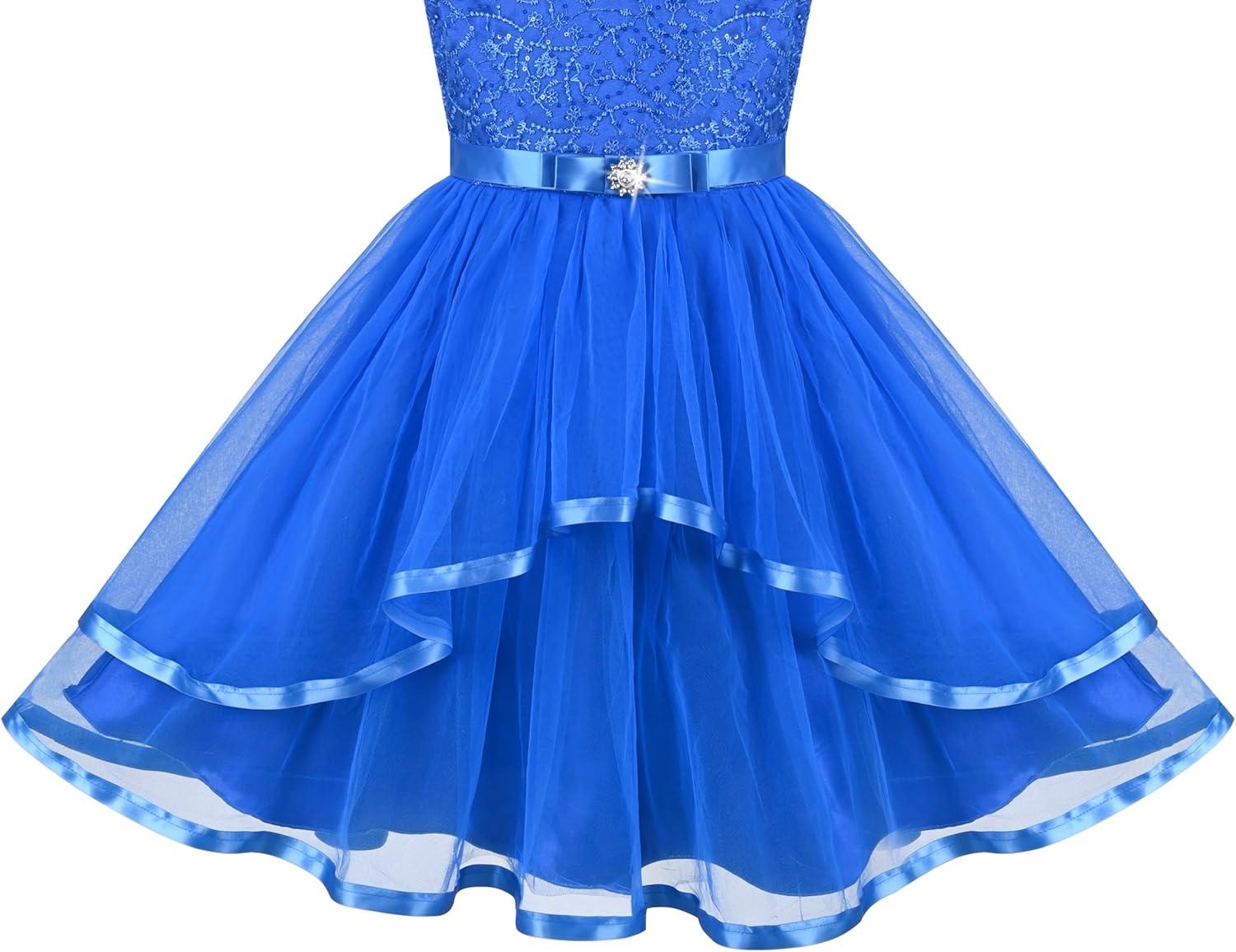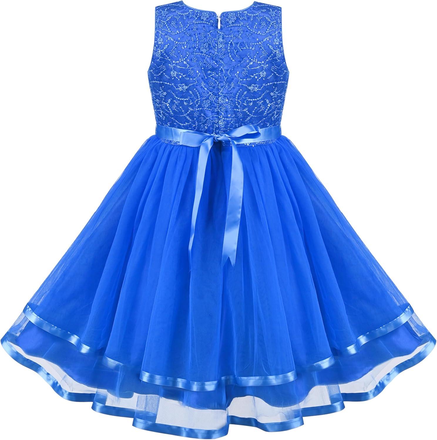 - Sunny Fashion Flower Girls Dress Blue Belted Wedding Party Bridesmaid Size 4-12(Cobalt Blue)
