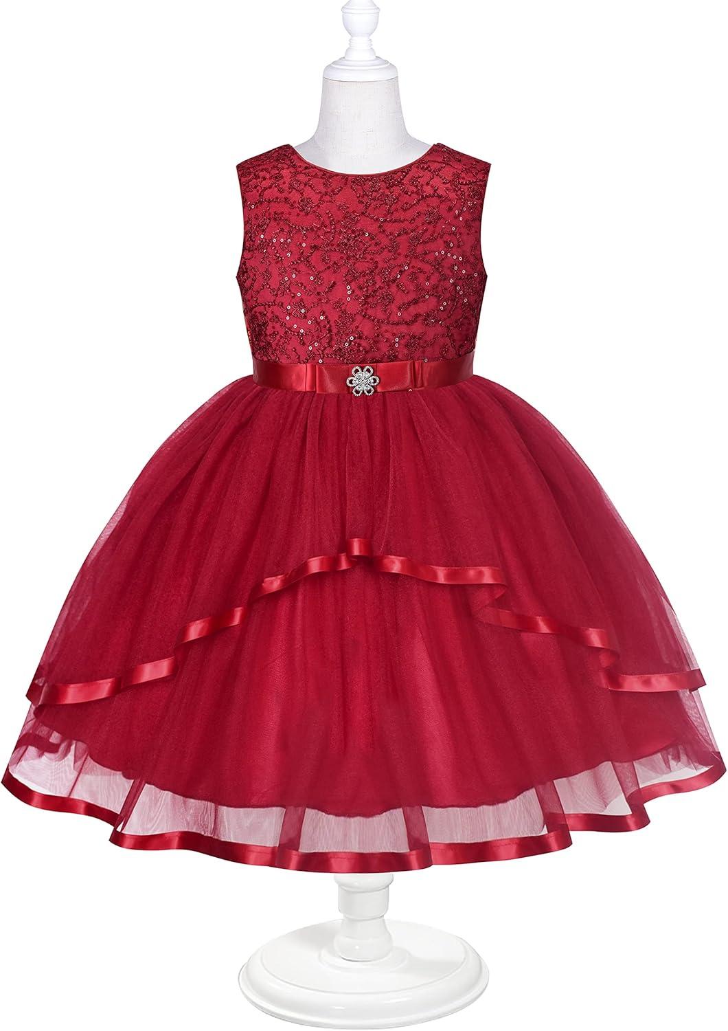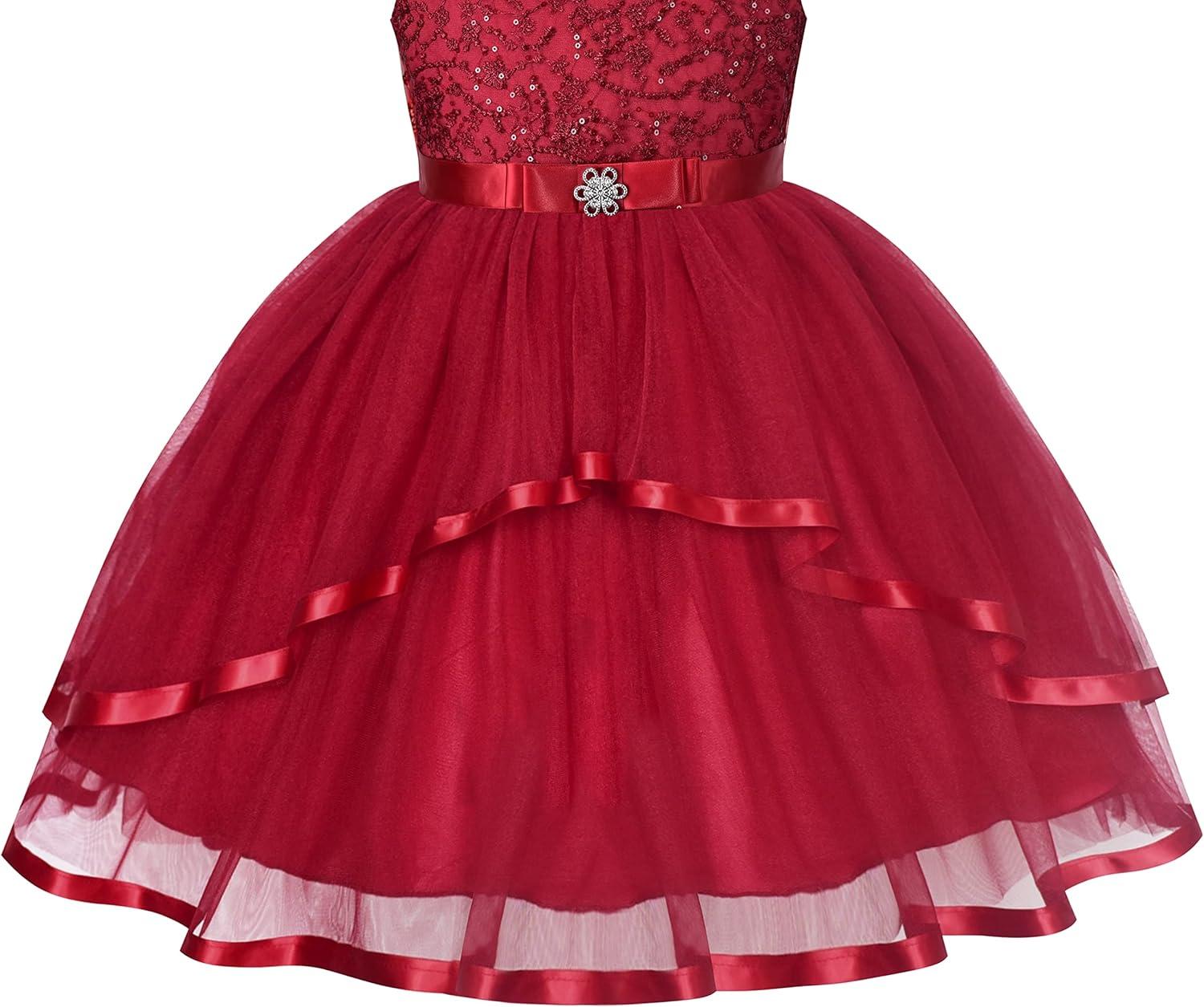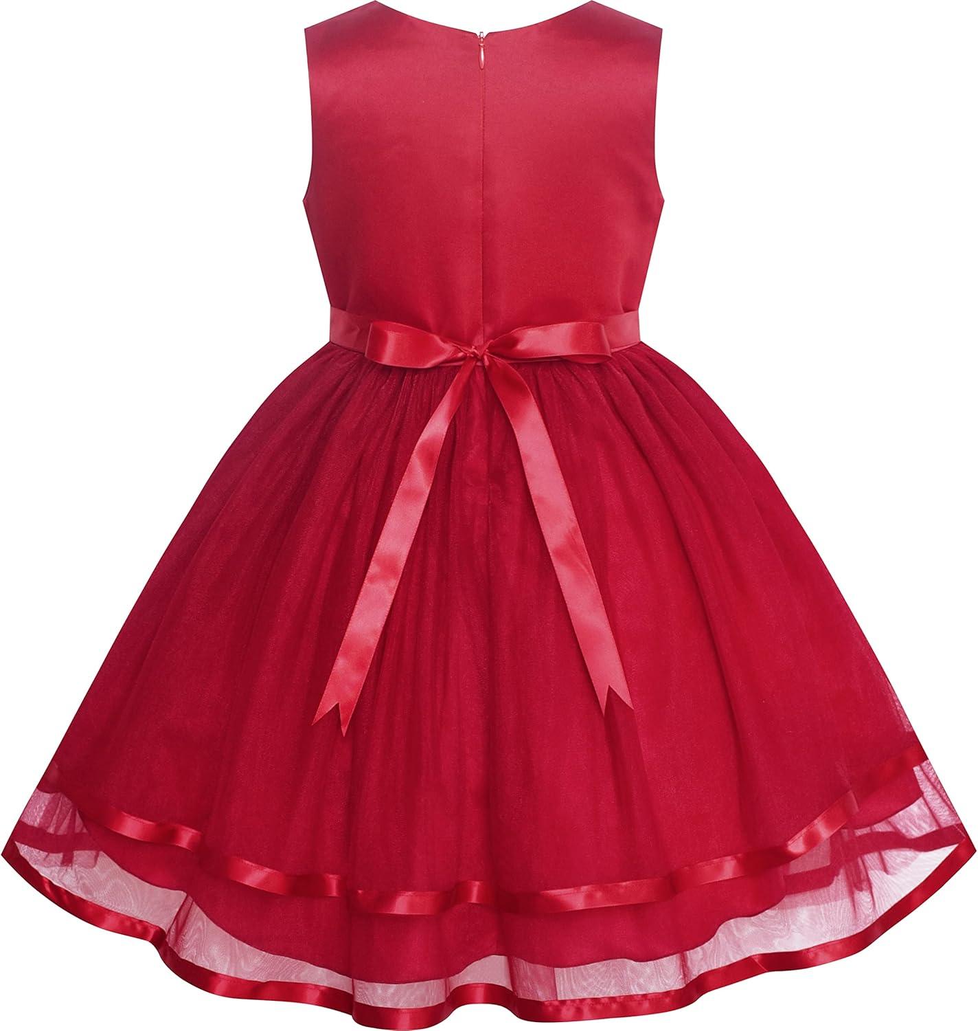 - Sunny Fashion Flower Girls Dress Blue Belted Wedding Party Bridesmaid Size 4-12(Dark Red)