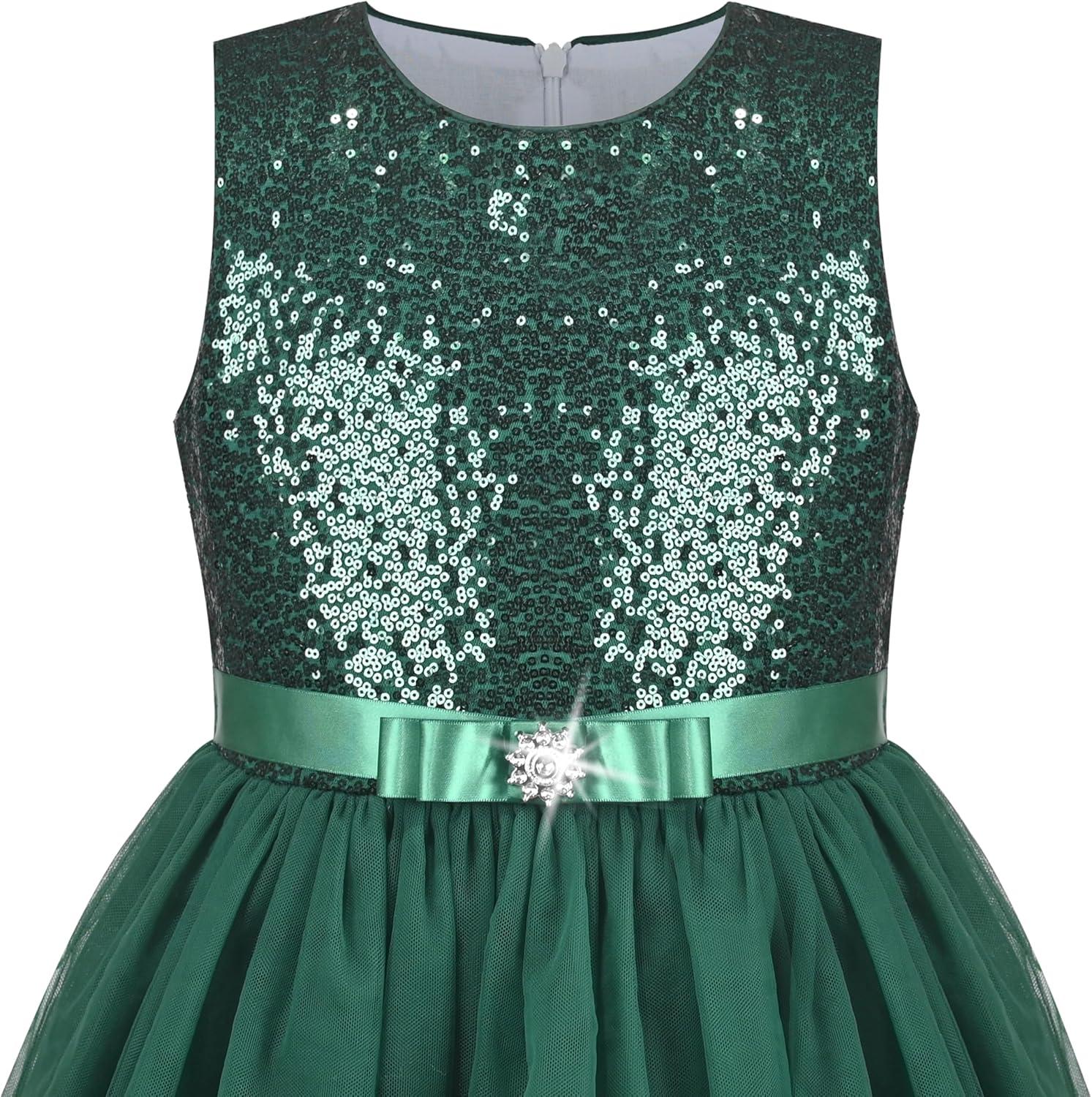 - Sunny Fashion Flower Girls Dress Blue Belted Wedding Party Bridesmaid Size 4-12(Emerald Green)