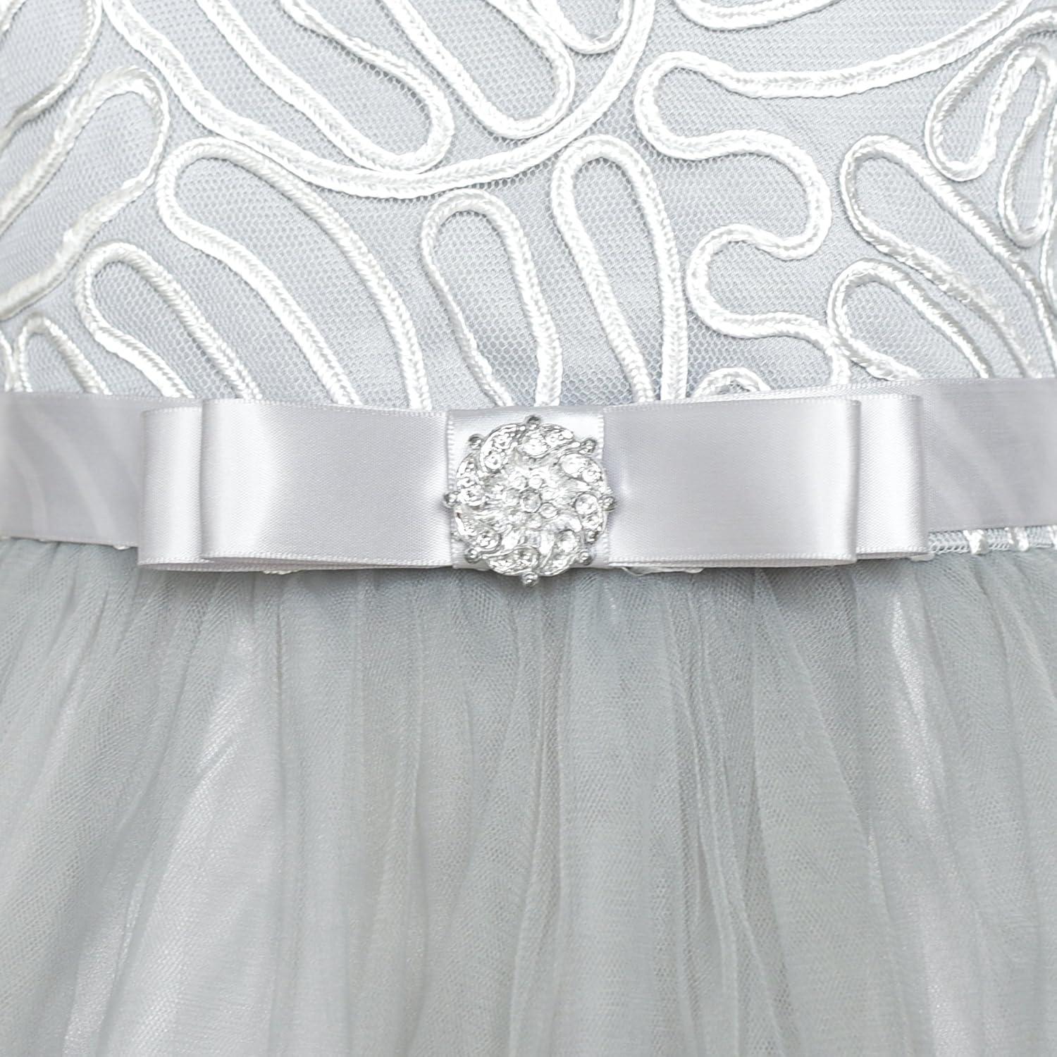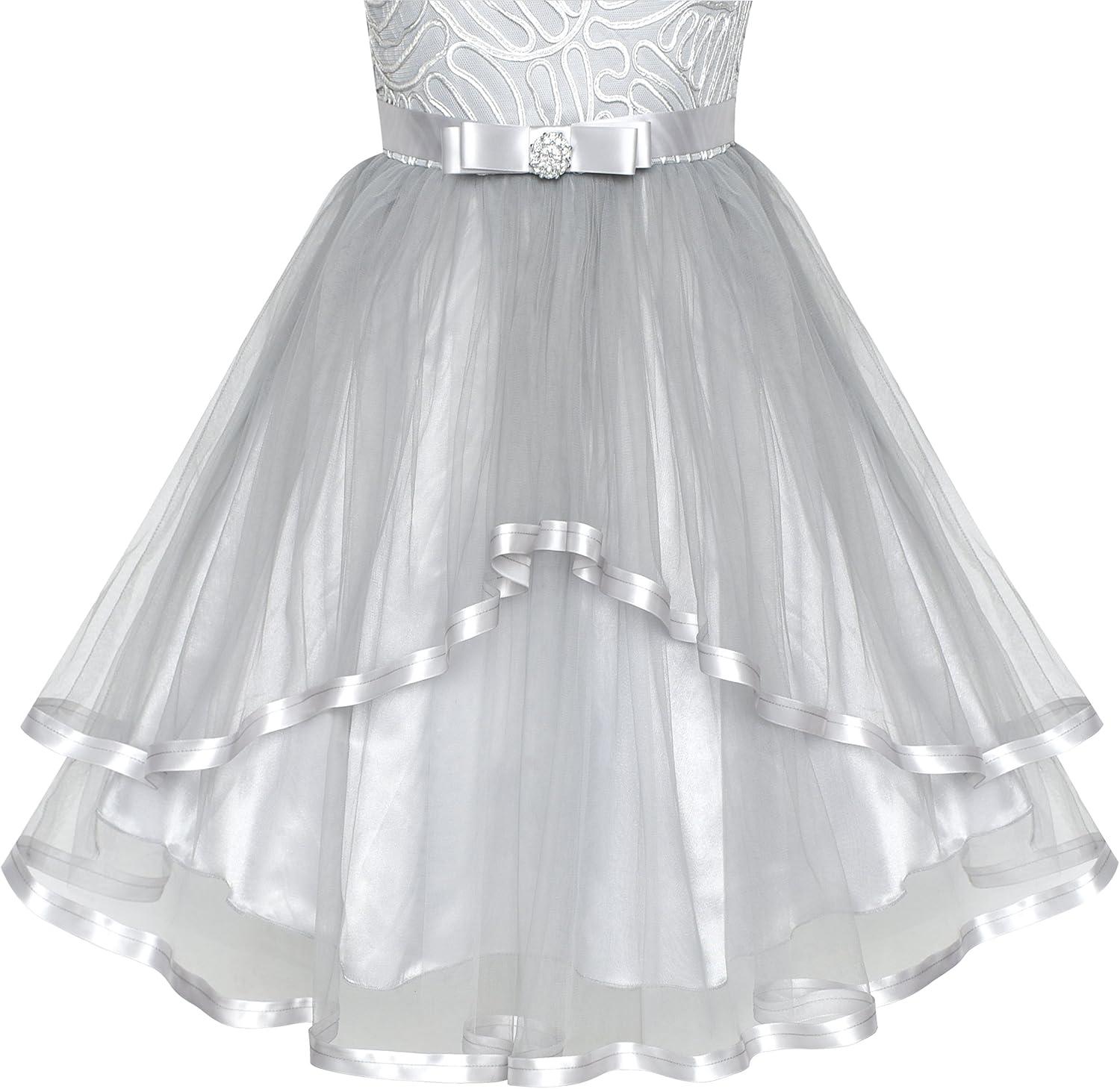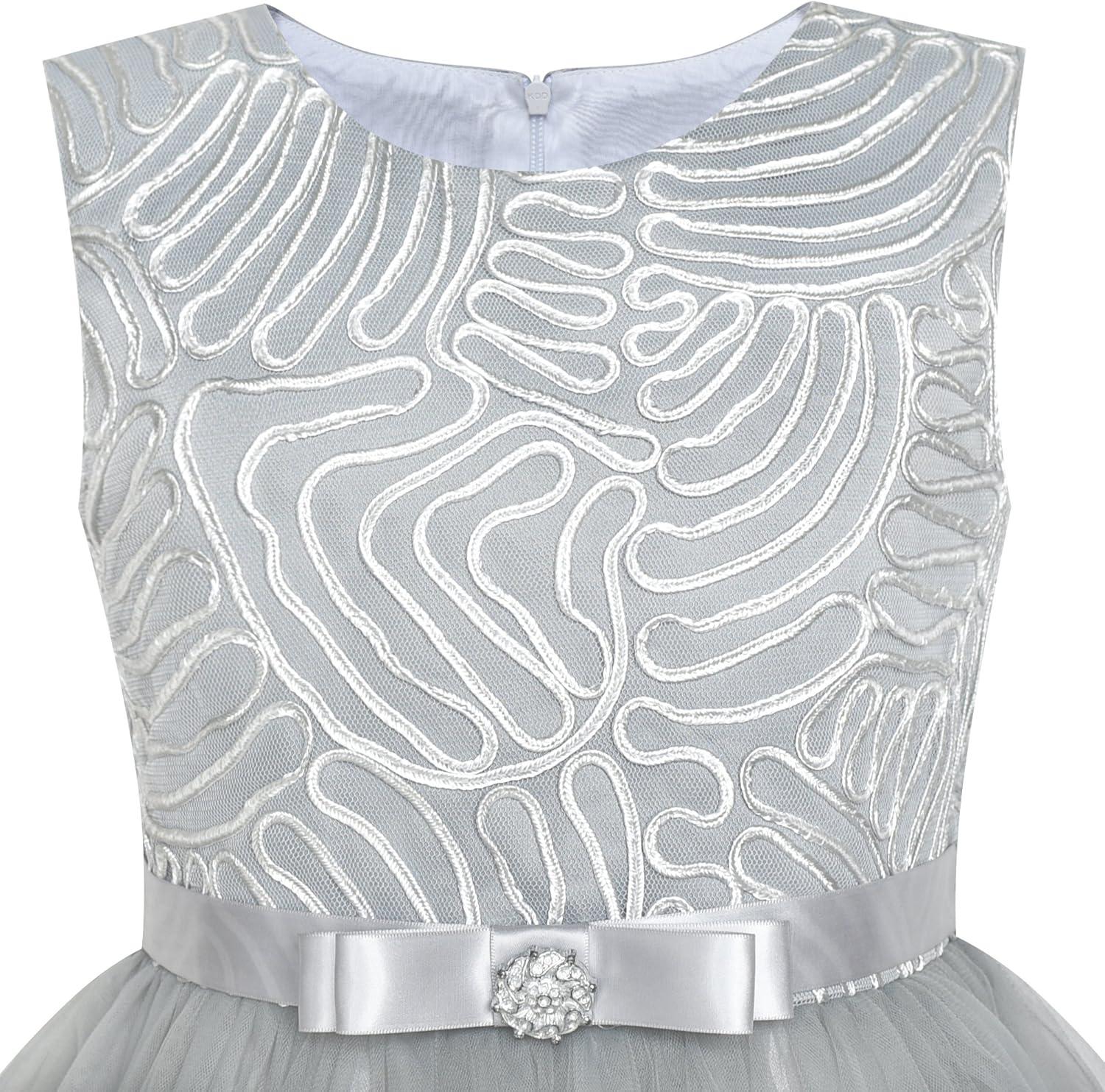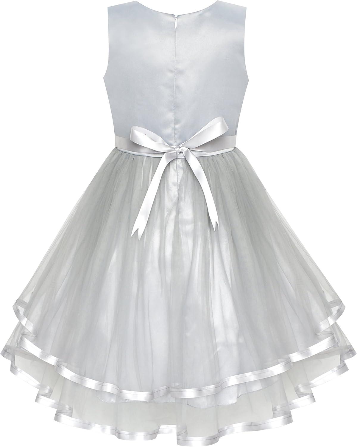 - Sunny Fashion Flower Girls Dress Blue Belted Wedding Party Bridesmaid Size 4-12(Gray)