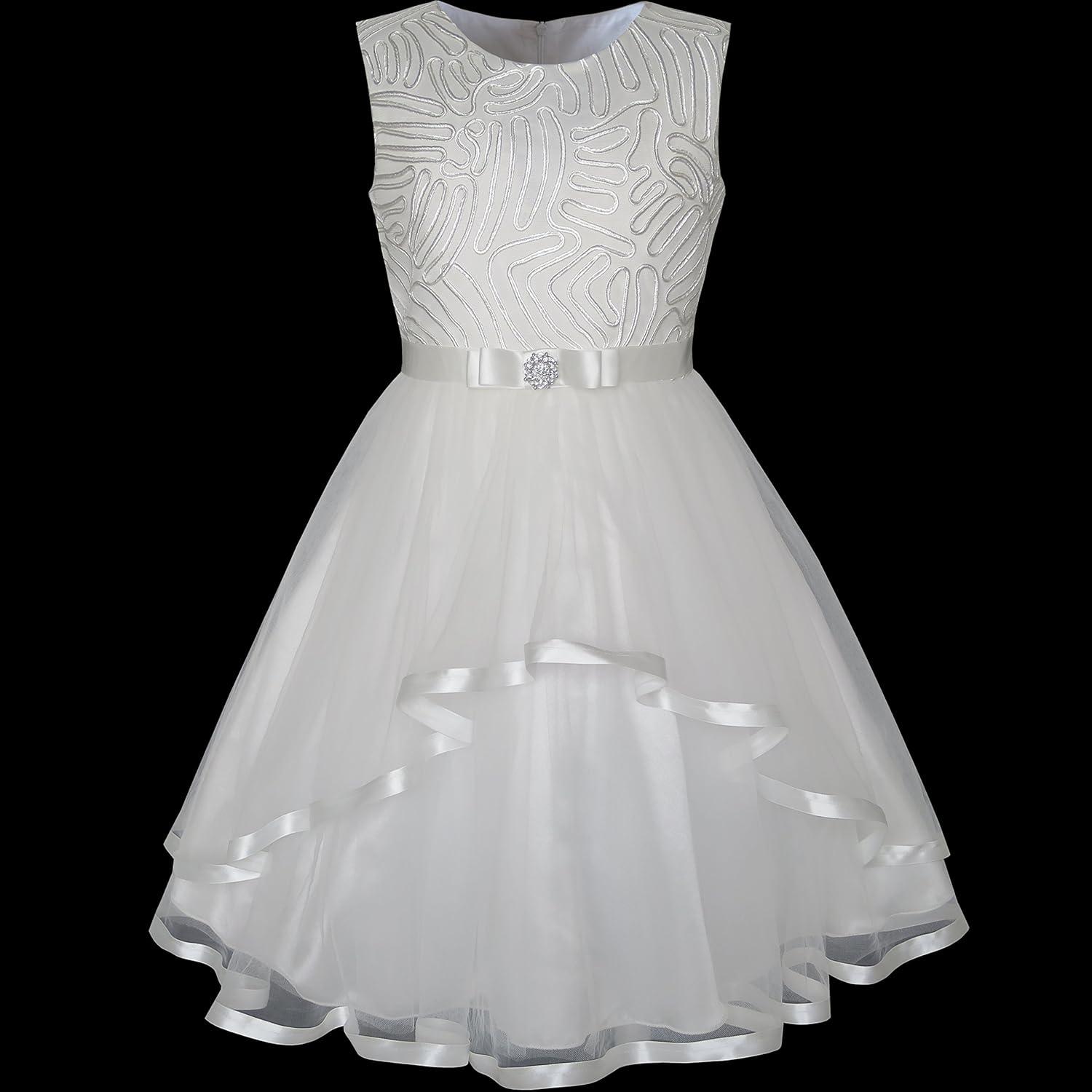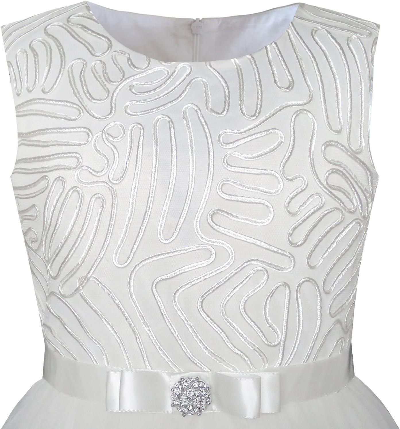 - Sunny Fashion Flower Girls Dress Blue Belted Wedding Party Bridesmaid Size 4-12(Off-white)
