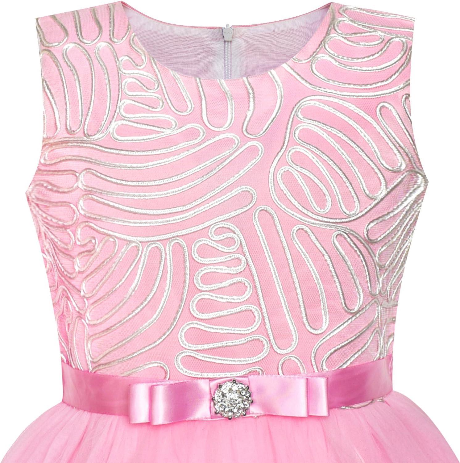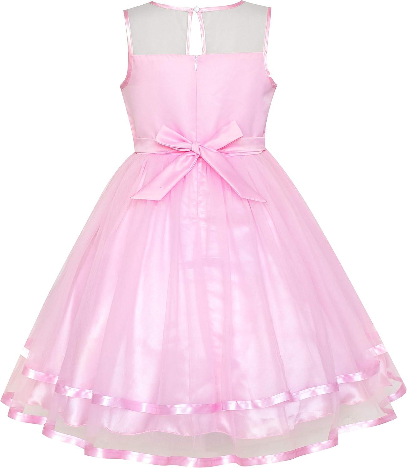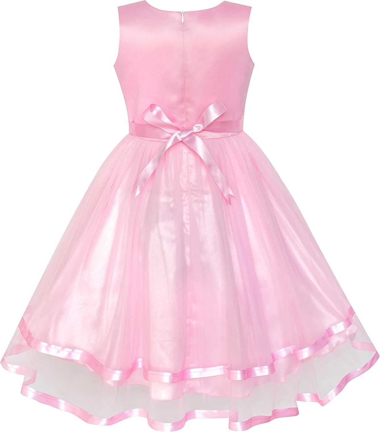 - Sunny Fashion Flower Girls Dress Blue Belted Wedding Party Bridesmaid Size 4-12(Pink 2)