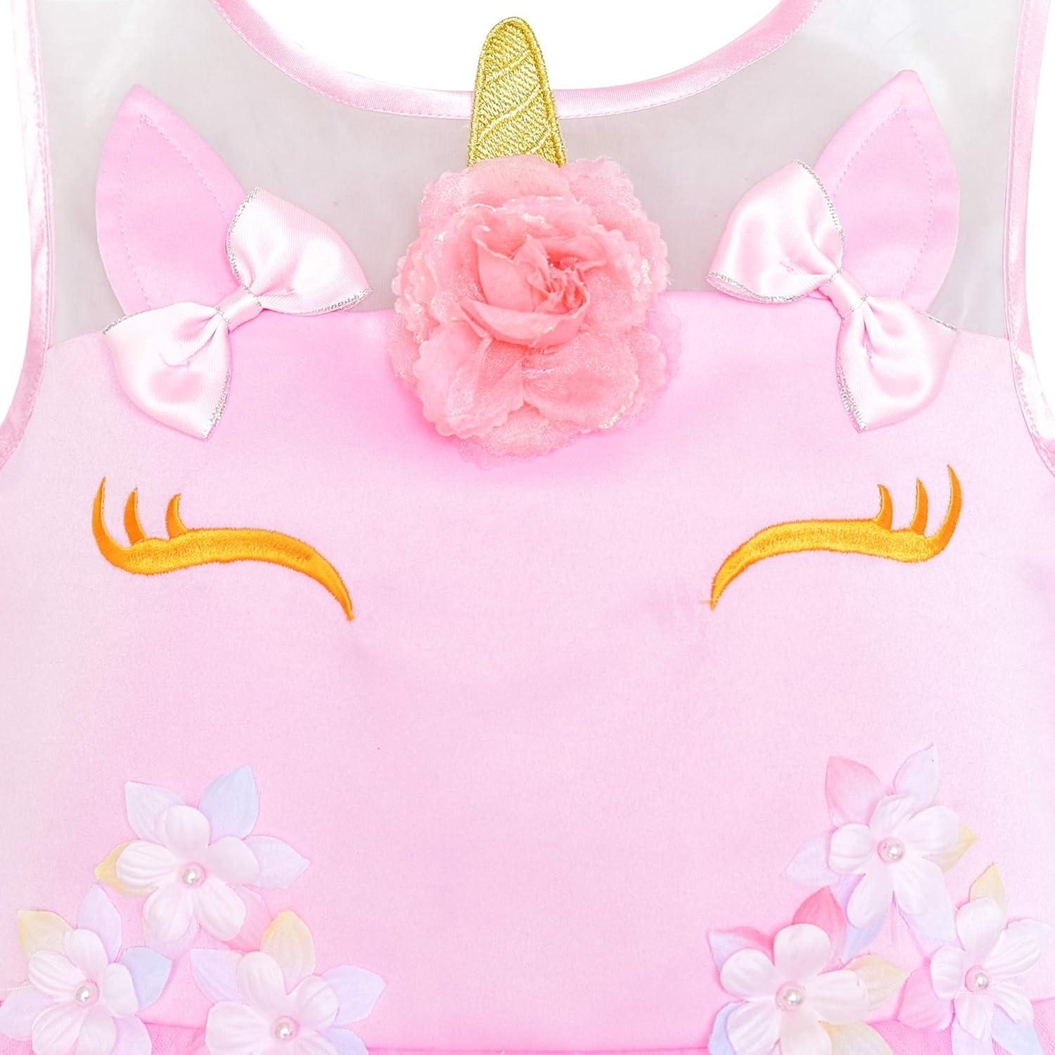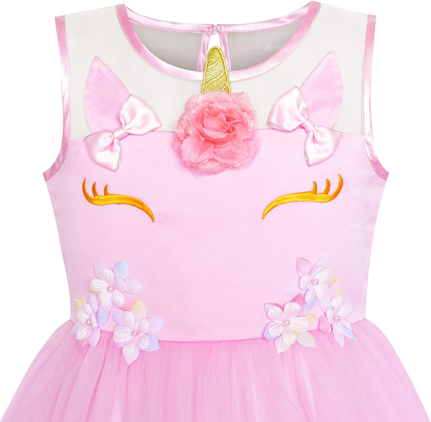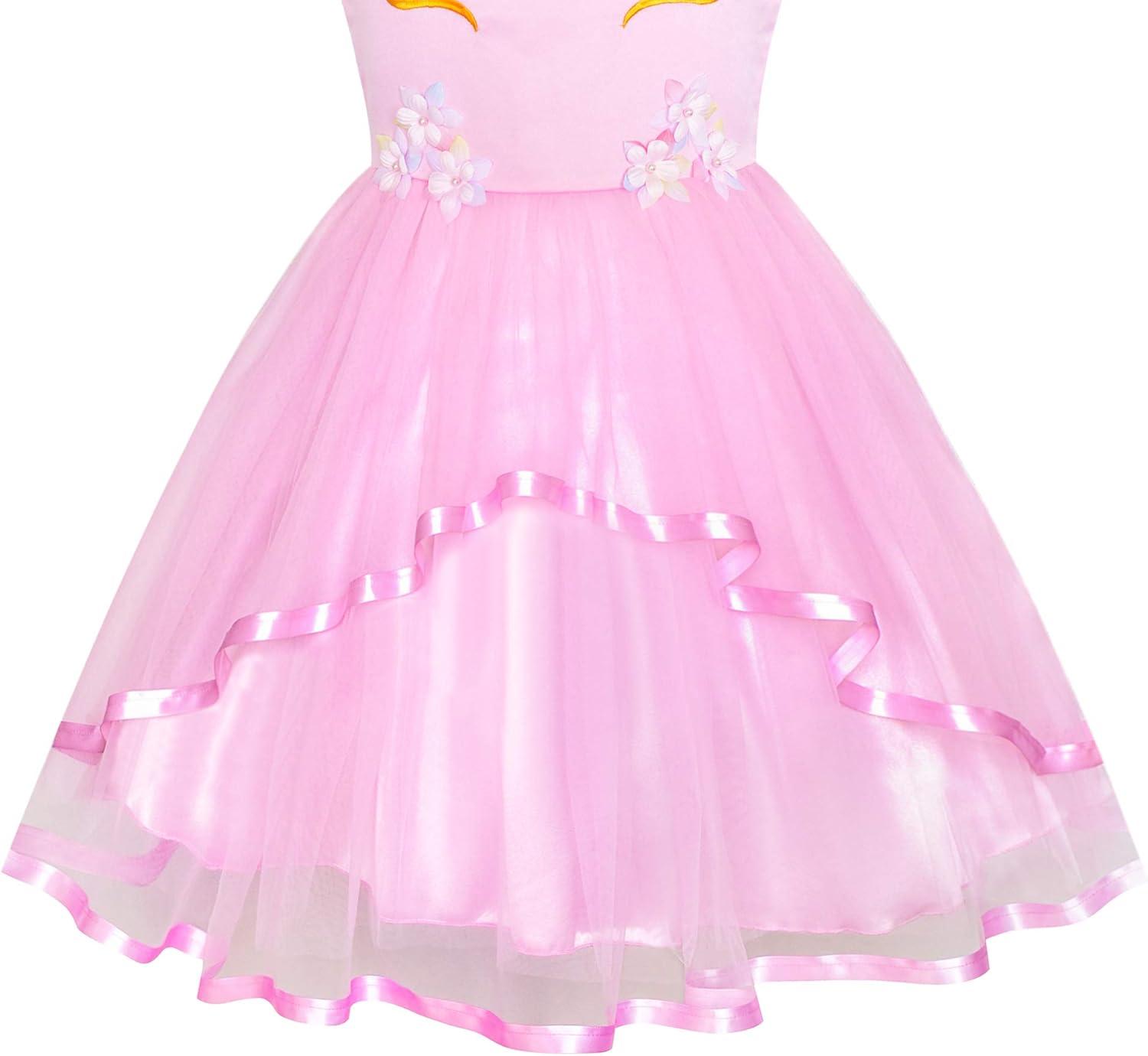- Sunny Fashion Flower Girls Dress Blue Belted Wedding Party Bridesmaid Size 4-12(Pink Unicorn)