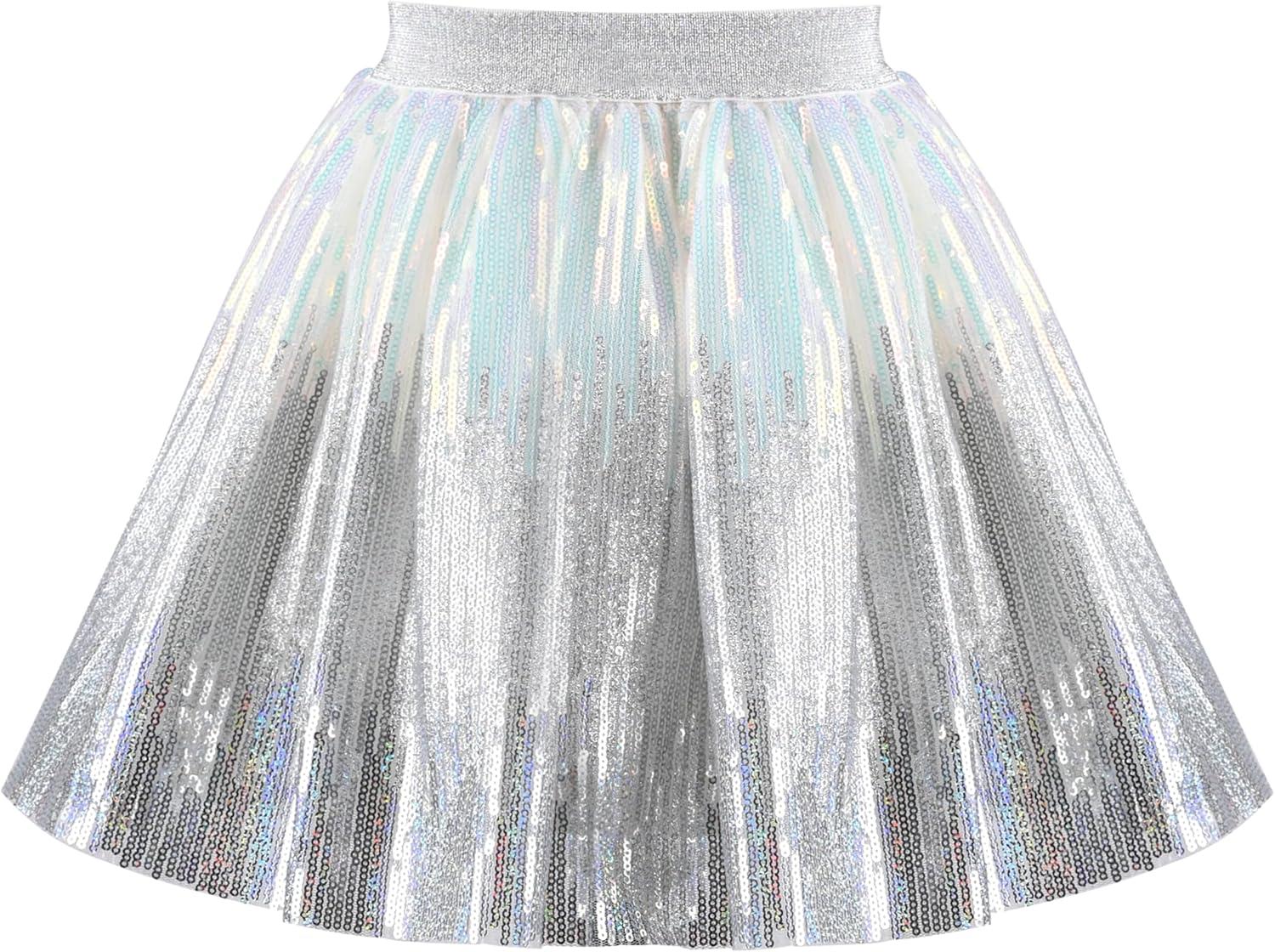 - Sunny Fashion Girls Skirt Purple Mermaid Sparkly Sequin Tutu Party Ballet Dance(Gradient Silver)