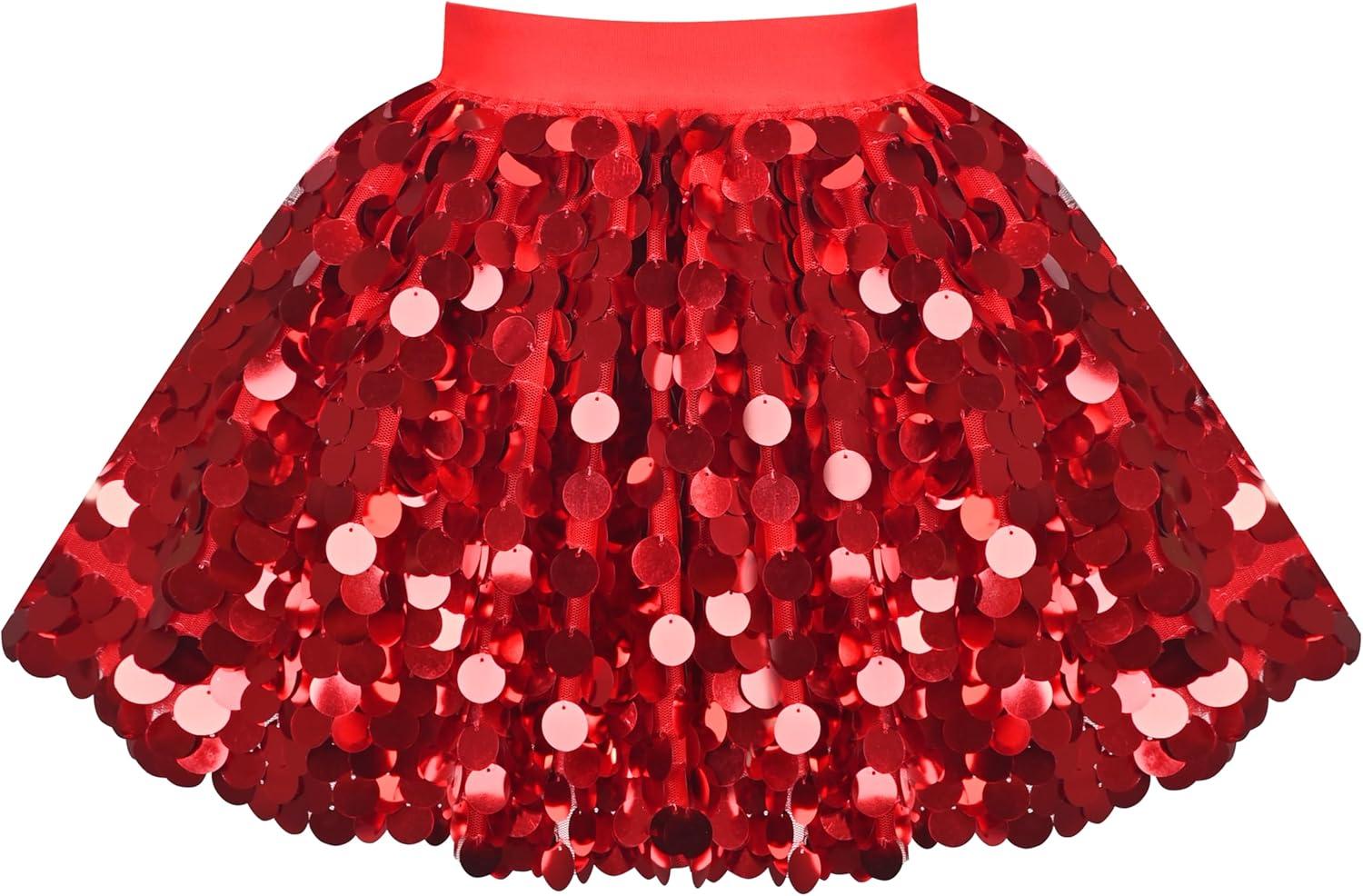- Sunny Fashion Girls Skirt Purple Mermaid Sparkly Sequin Tutu Party Ballet Dance(Red)