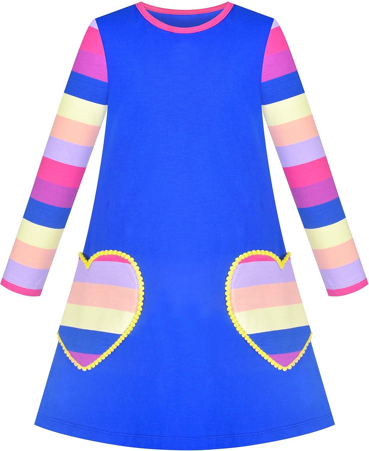 Sunny Fashion Girls Outfit Set 2 Piece Cotton Heart Casual Dresss Top Pants(Rainbow Heart)