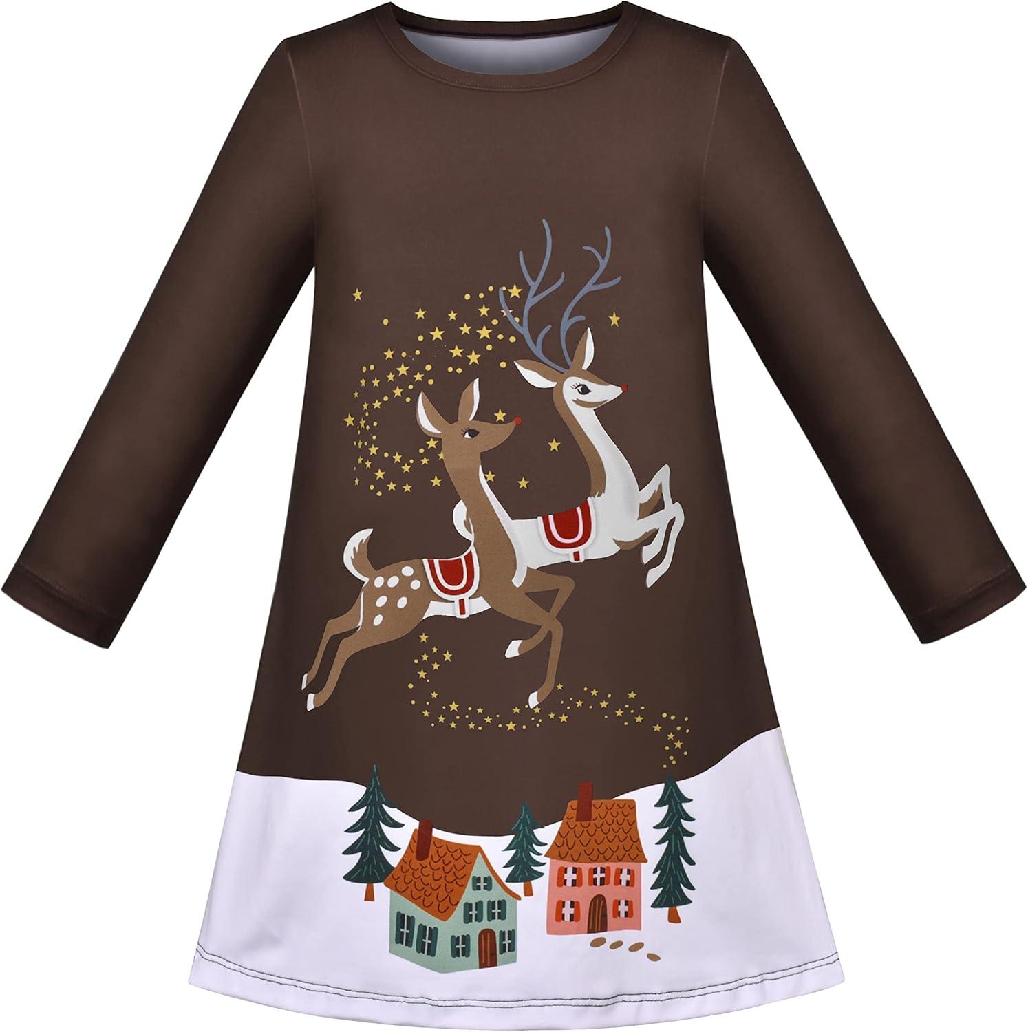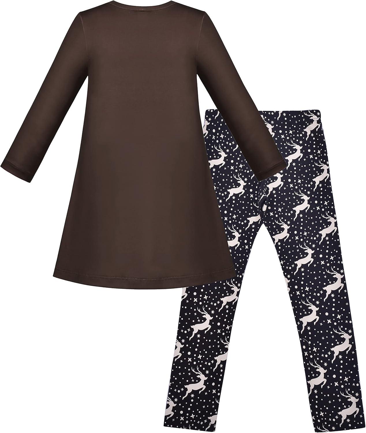 Sunny Fashion Girls Outfit Set 2 Piece Cotton Heart Casual Dresss Top Pants(Brown Reindeer)