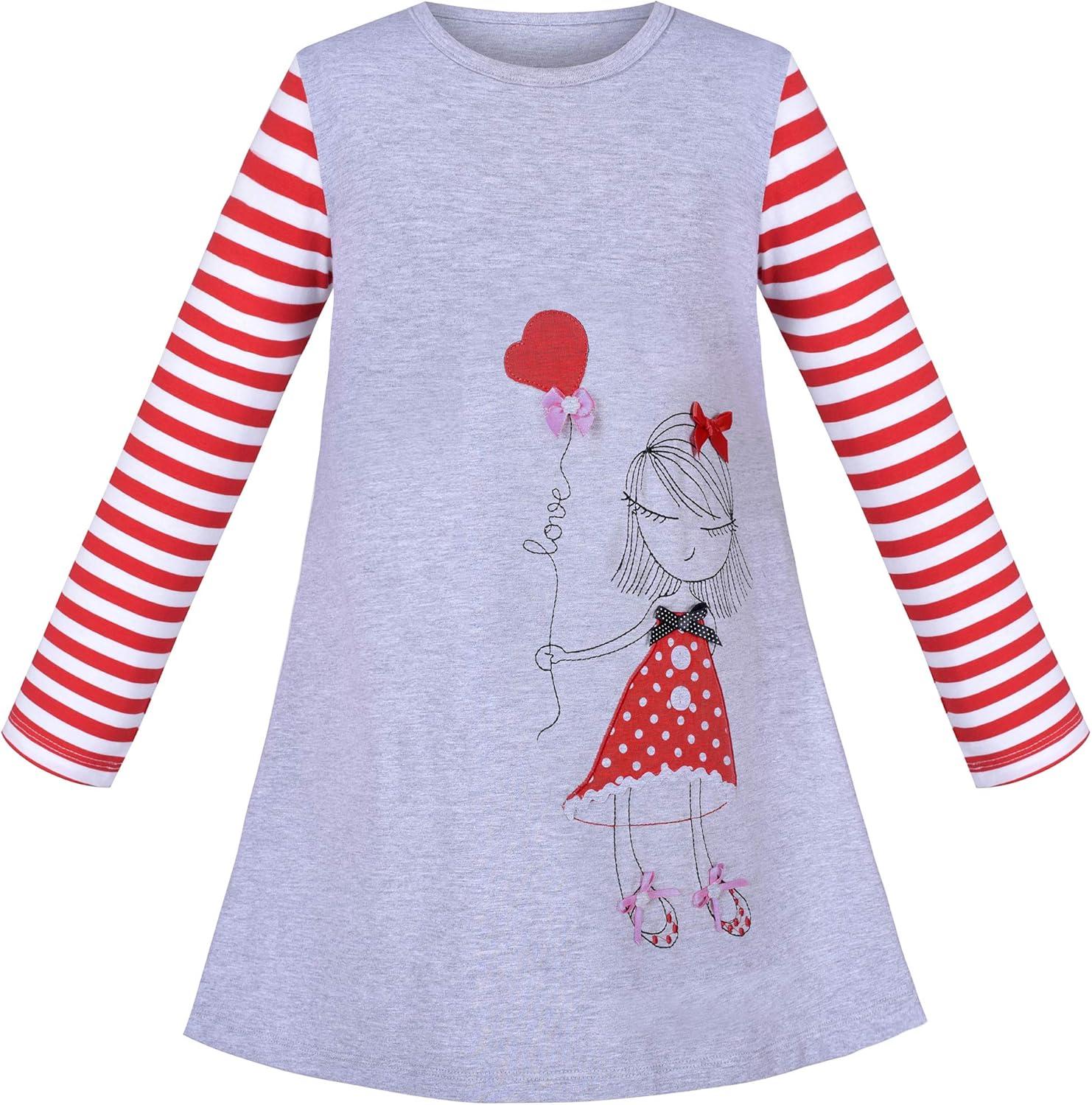 Sunny Fashion Girls Outfit Set 2 Piece Cotton Heart Casual Dresss Top Pants(Red Striped)