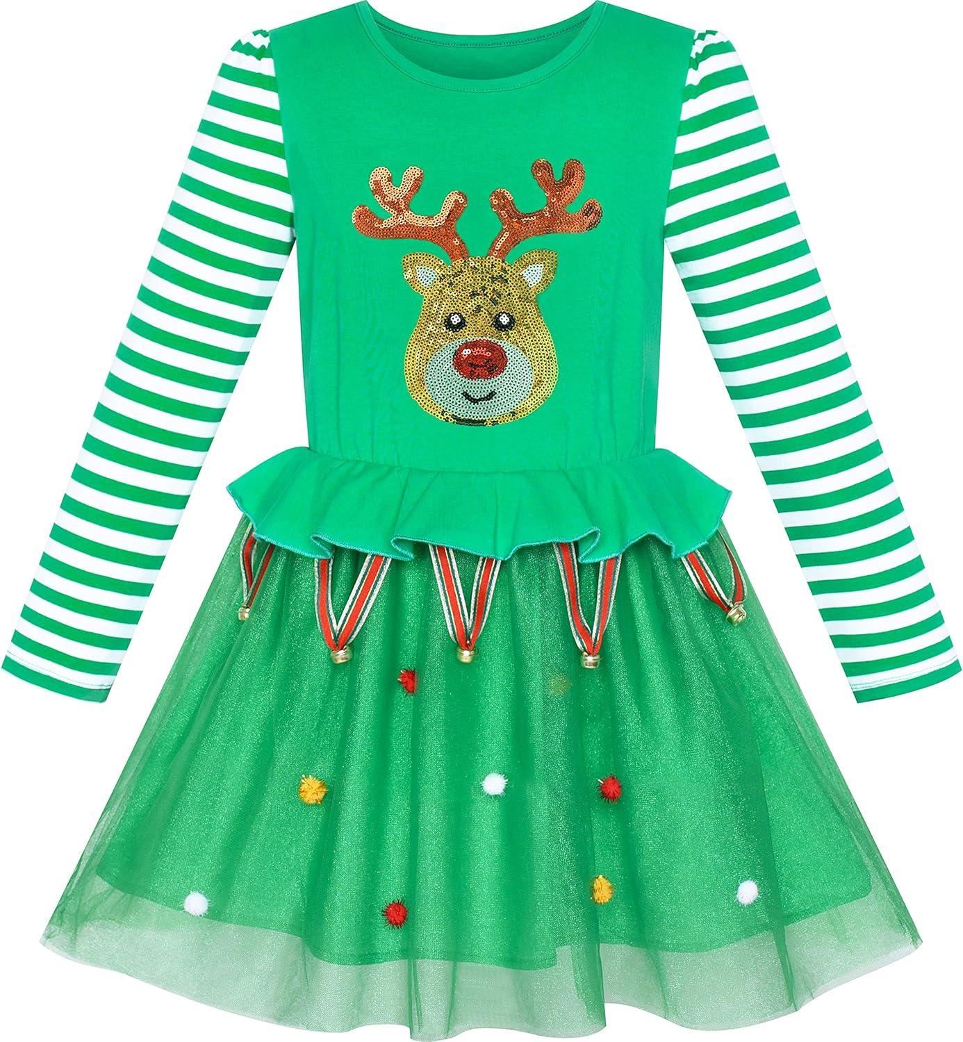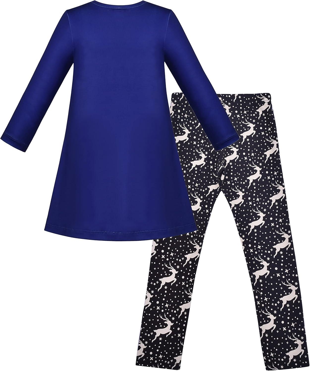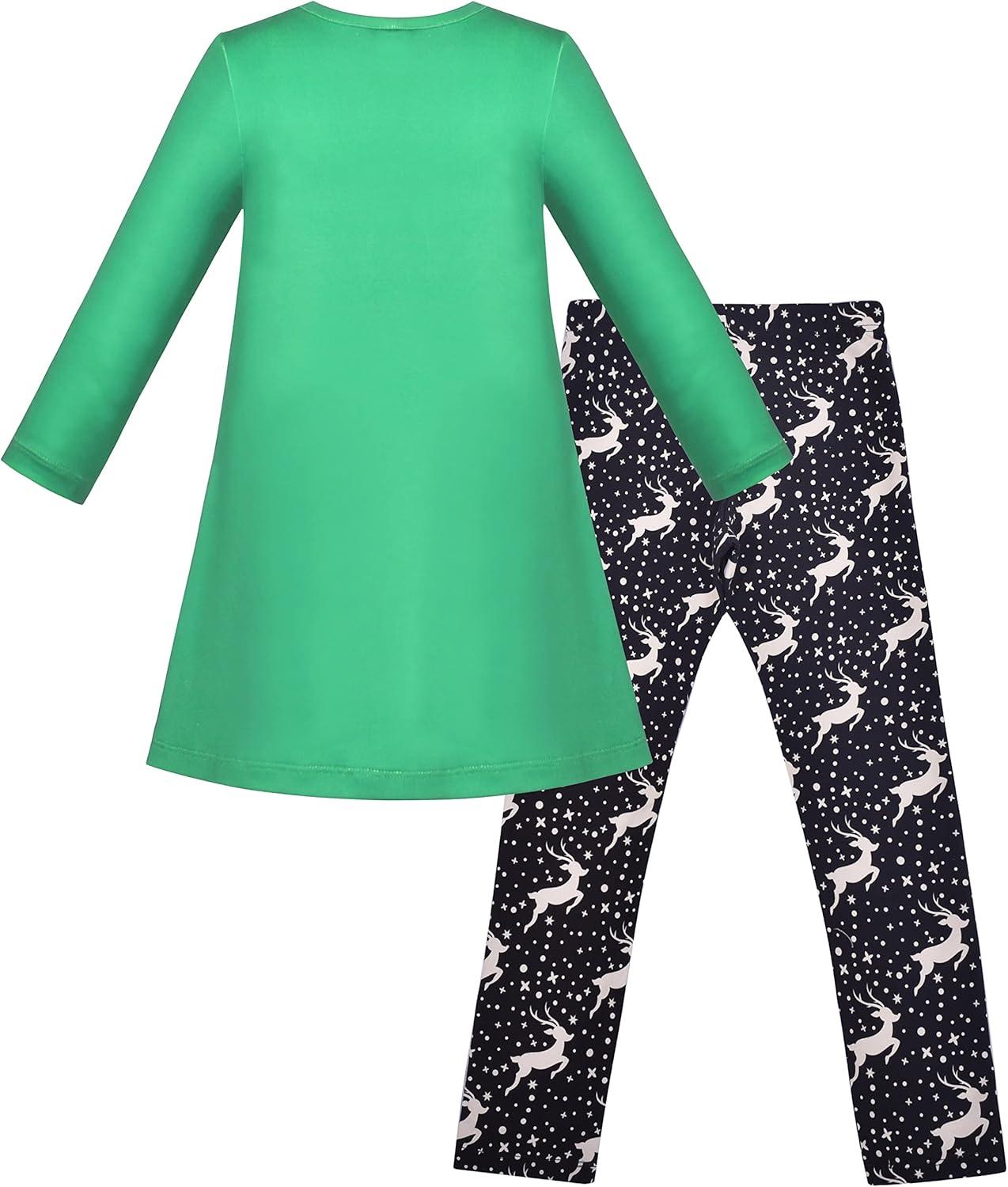 Sunny Fashion Girls Outfit Set 2 Piece Cotton Heart Casual Dresss Top Pants(Green Reindeer)