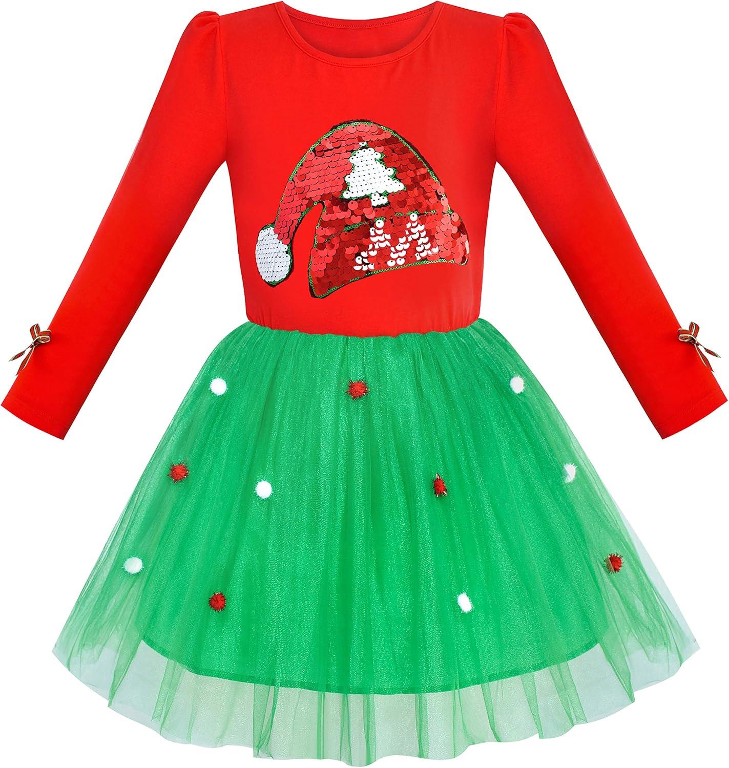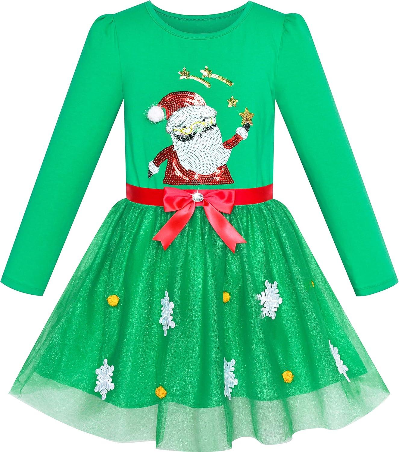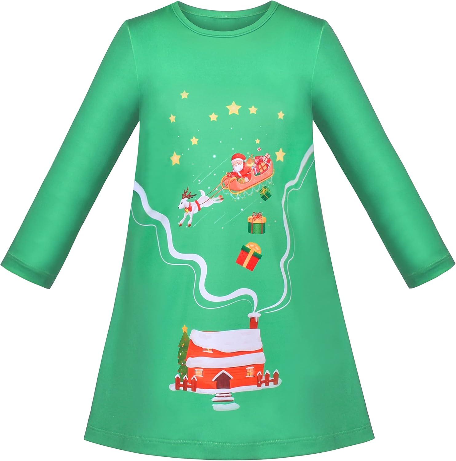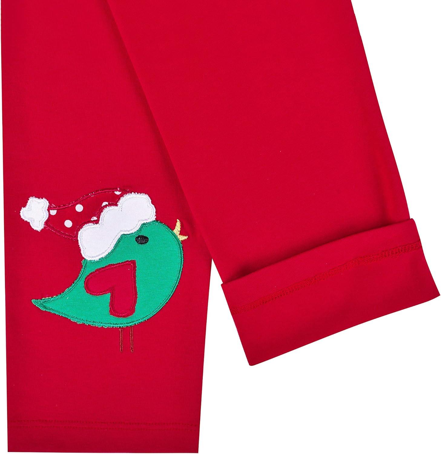 Sunny Fashion Girls Outfit Set 2 Piece Cotton Heart Casual Dresss Top Pants(Green Santa)