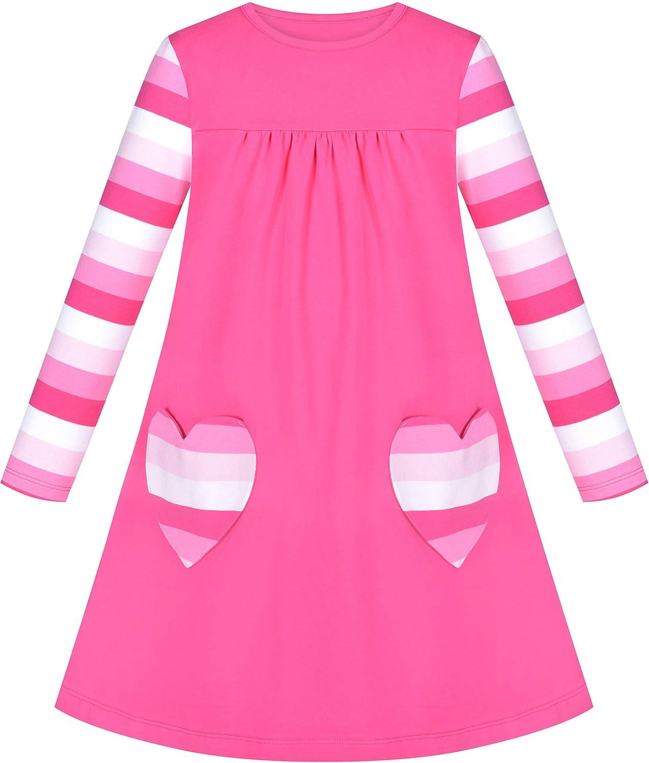 Sunny Fashion Girls Outfit Set 2 Piece Cotton Heart Casual Dresss Top Pants(Pink Heart)