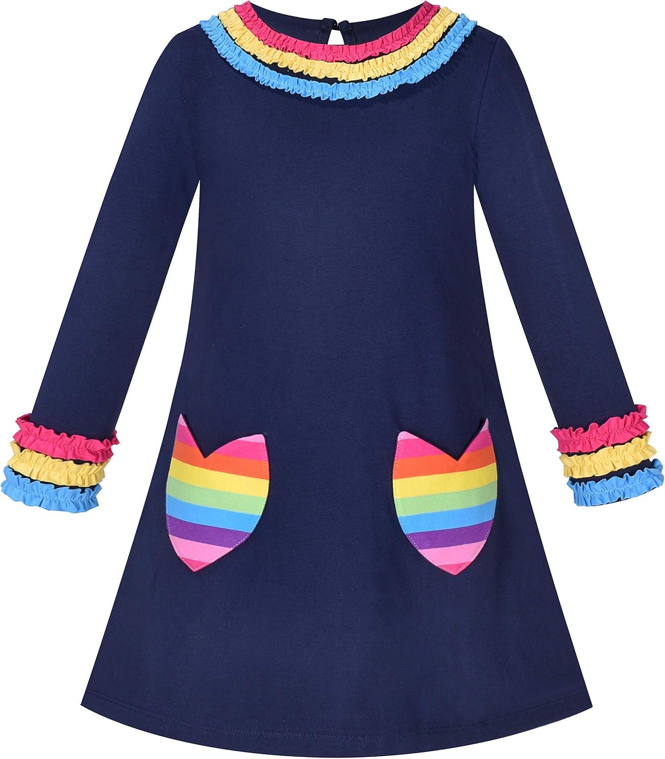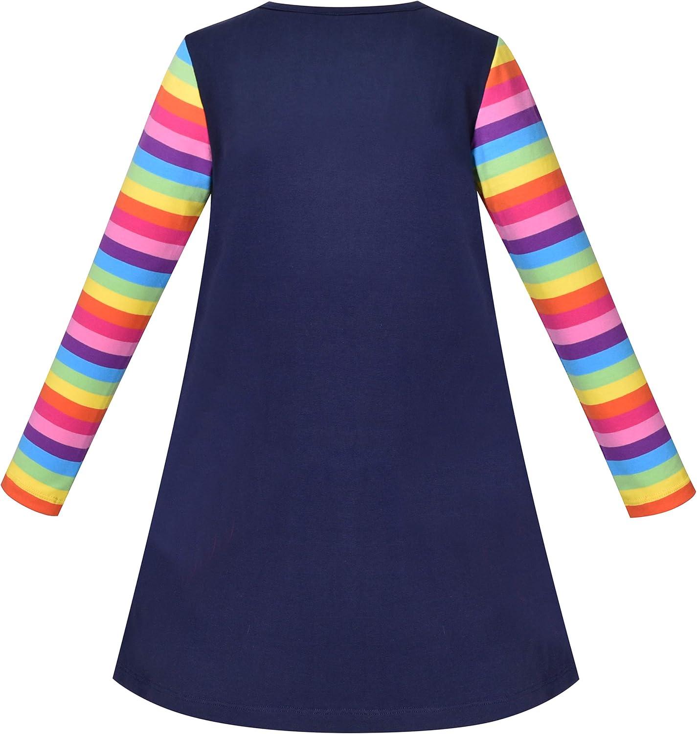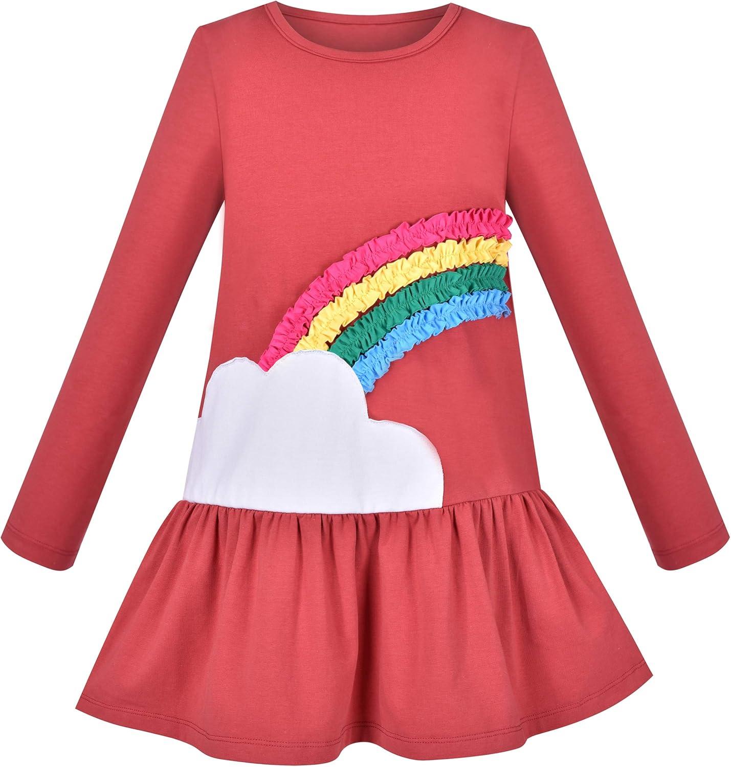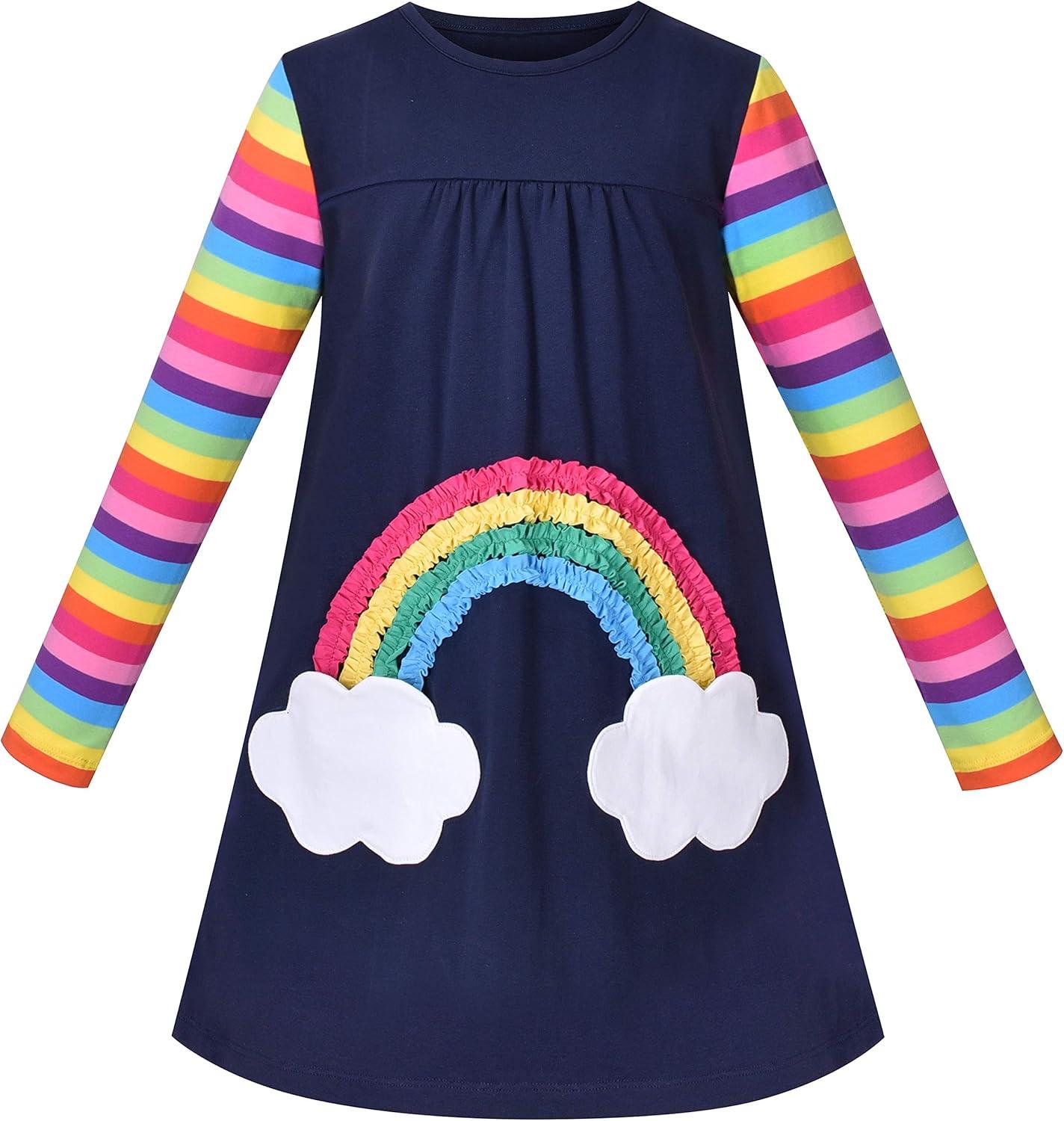 Sunny Fashion Girls Outfit Set 2 Piece Cotton Heart Casual Dresss Top Pants(Rainbow Cloud)