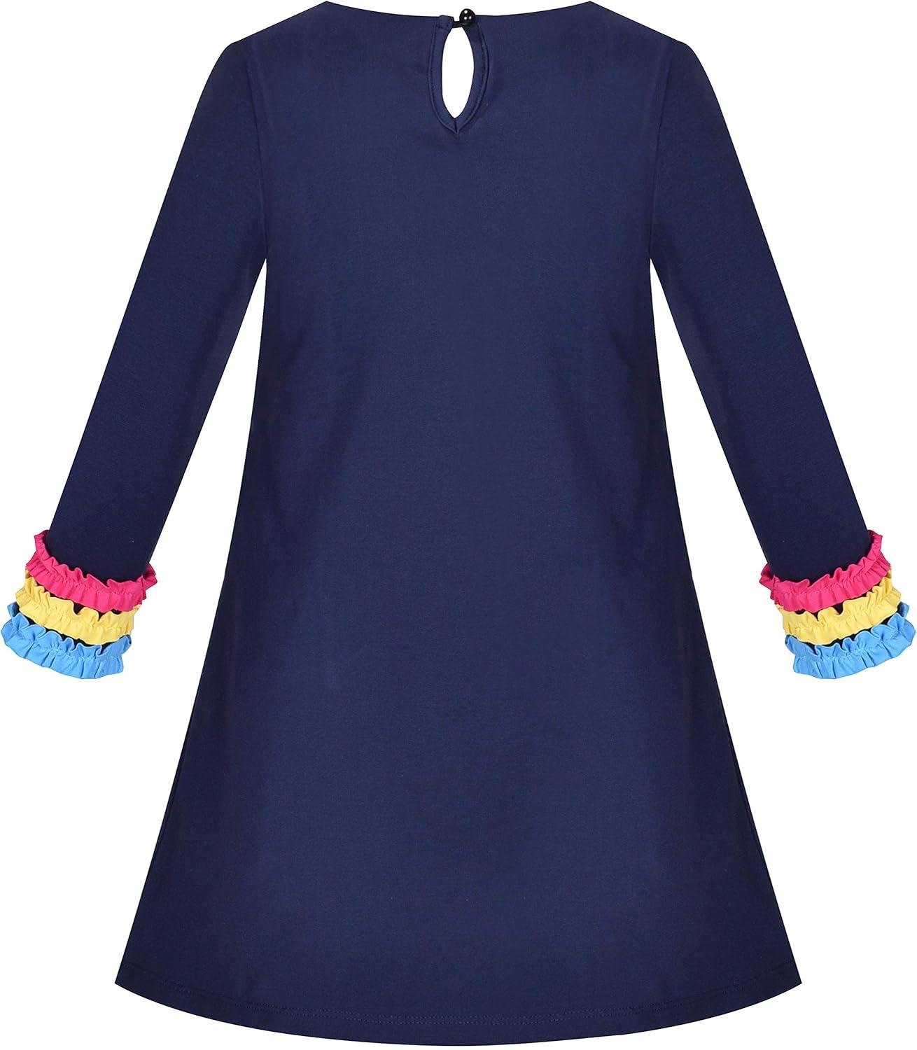 Sunny Fashion Girls Outfit Set 2 Piece Cotton Heart Casual Dresss Top Pants(Night Blue)