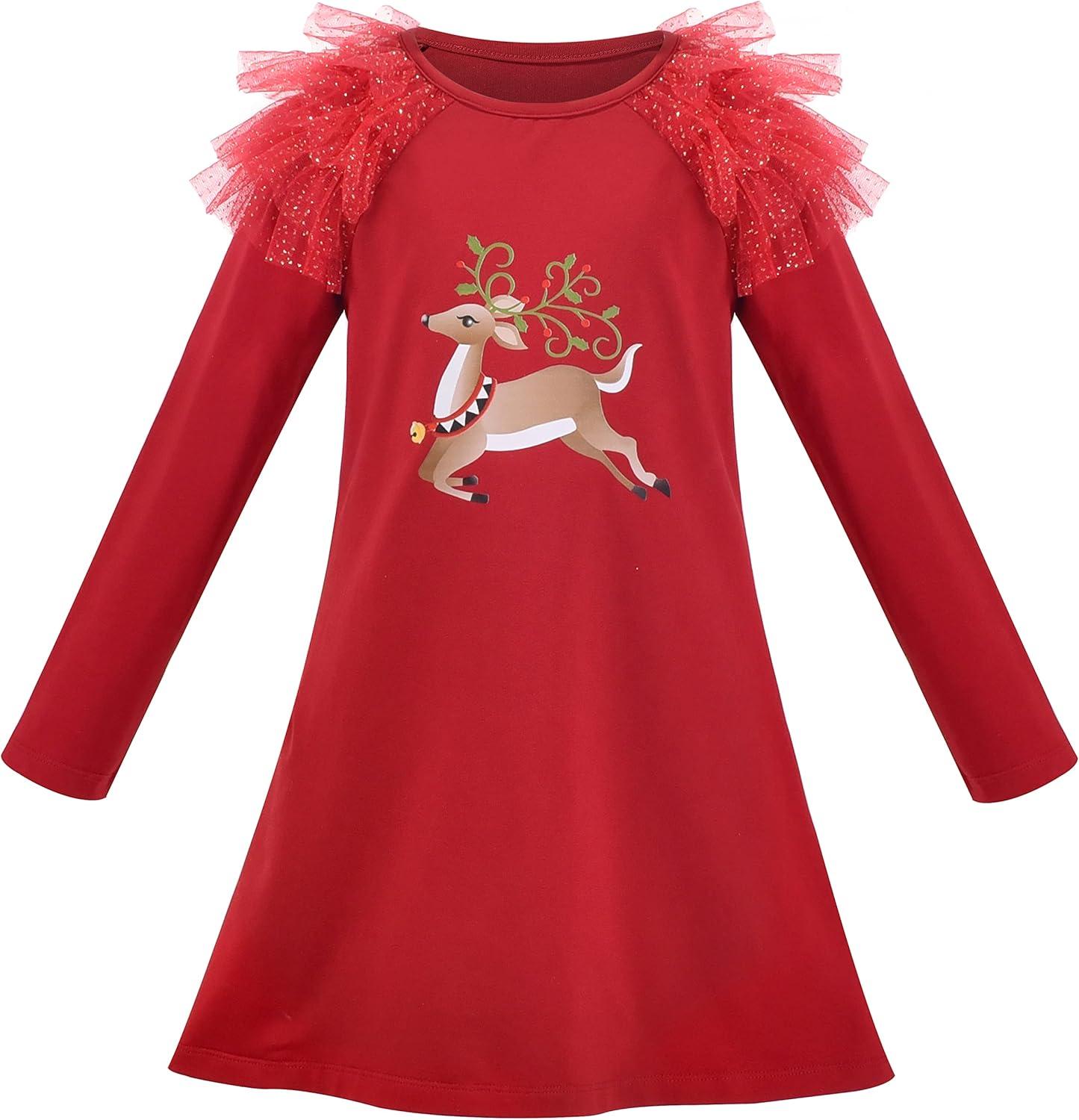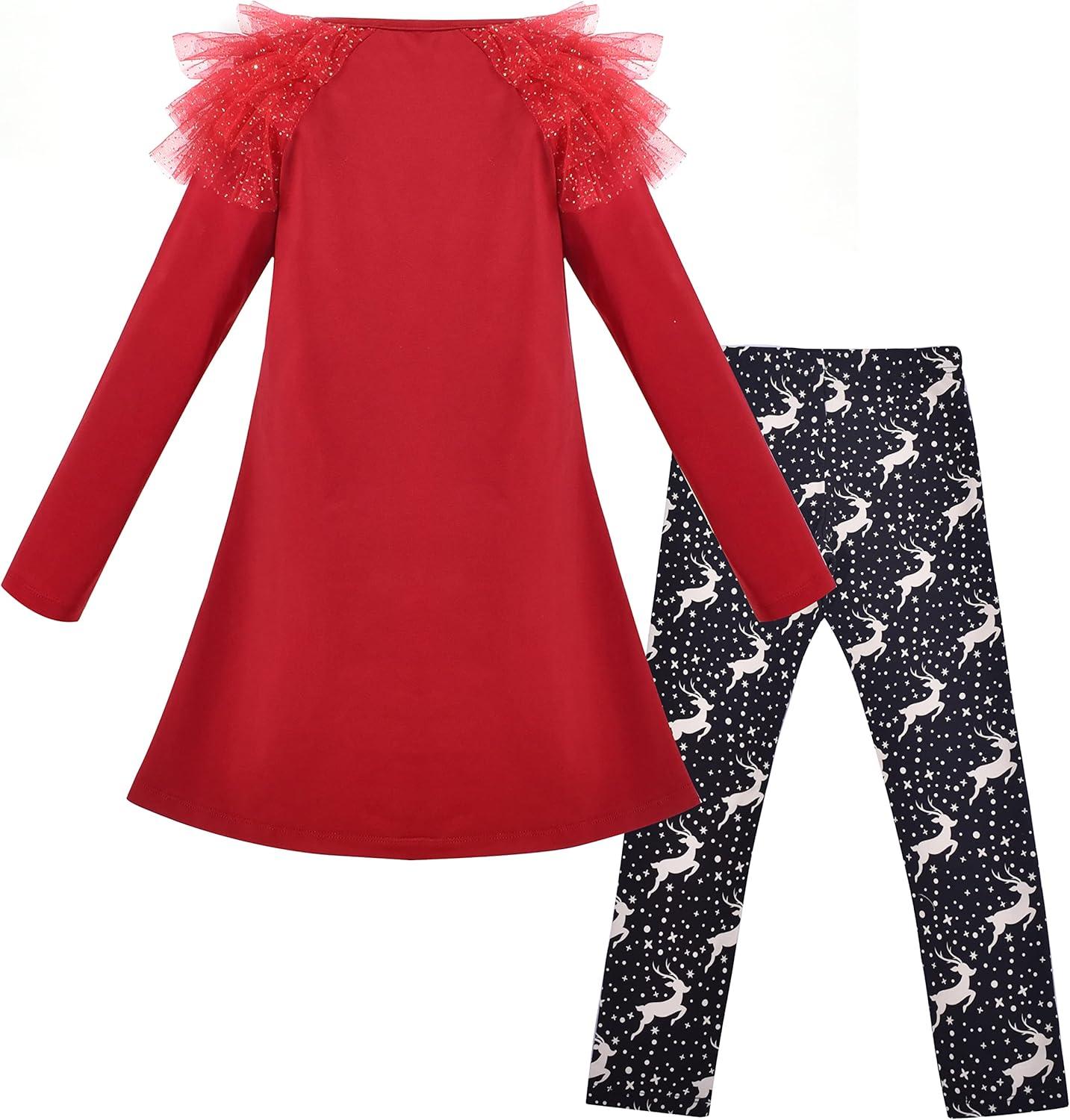 Sunny Fashion Girls Outfit Set 2 Piece Cotton Heart Casual Dresss Top Pants(Red Reindeer)