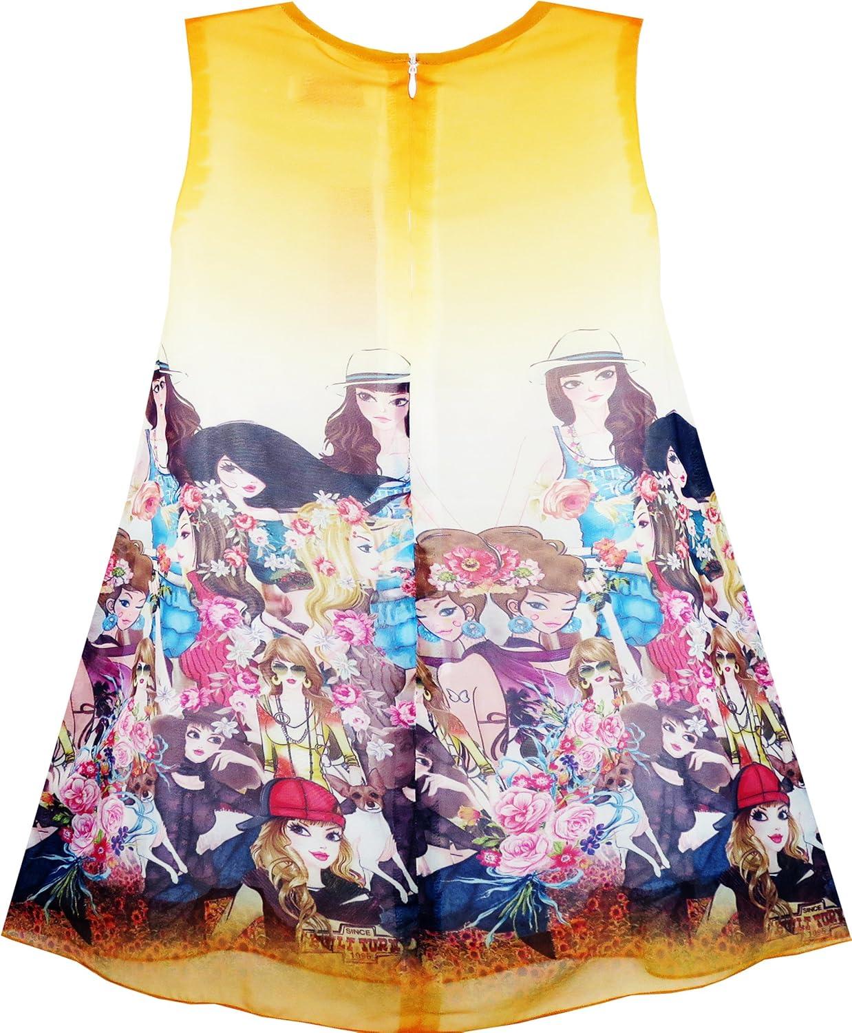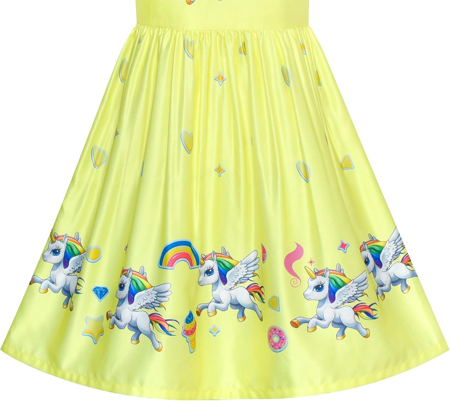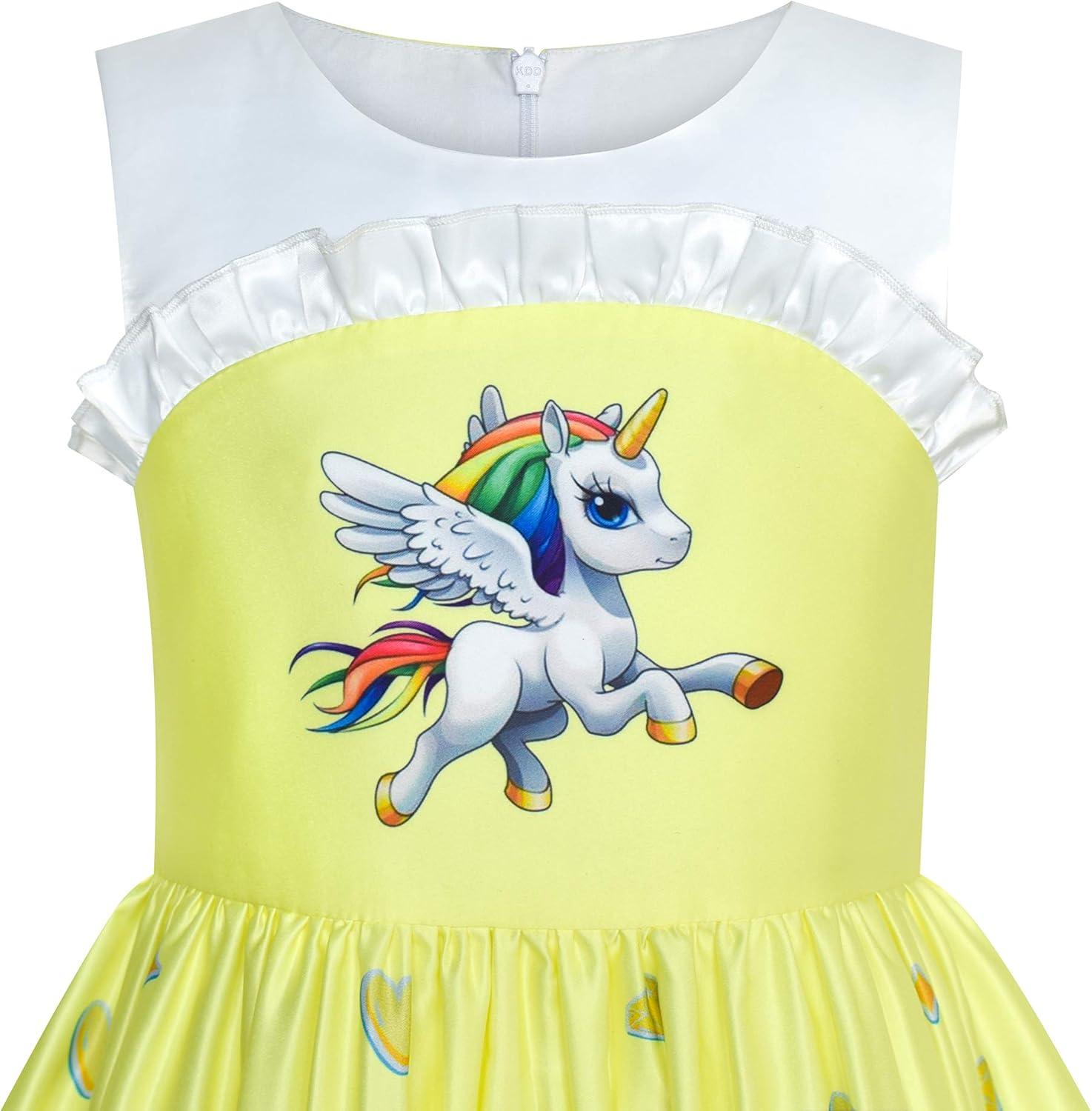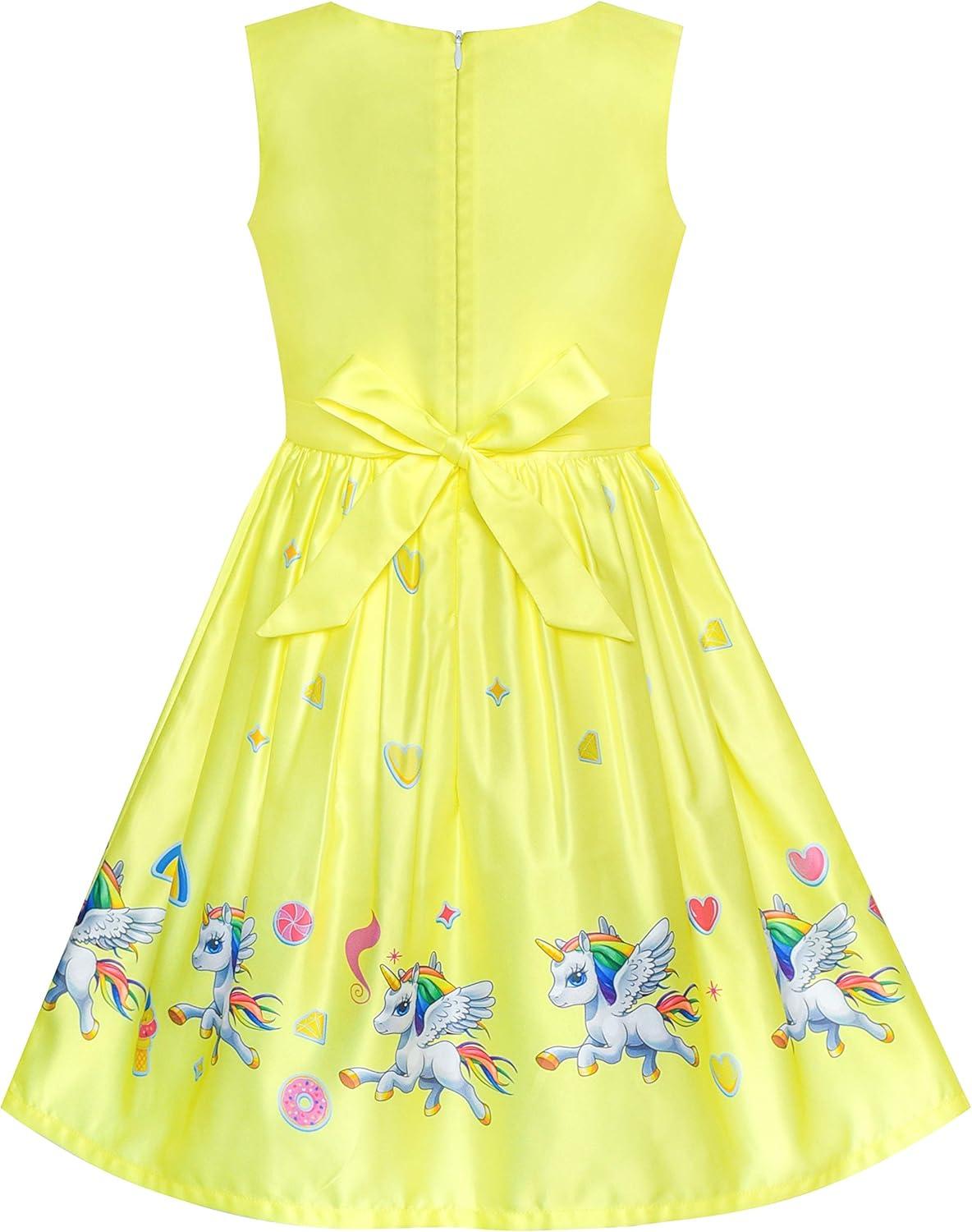 - Sunny Fashion Girls Dress Yellow Unicorn Print Birthday Party Size 3-10
