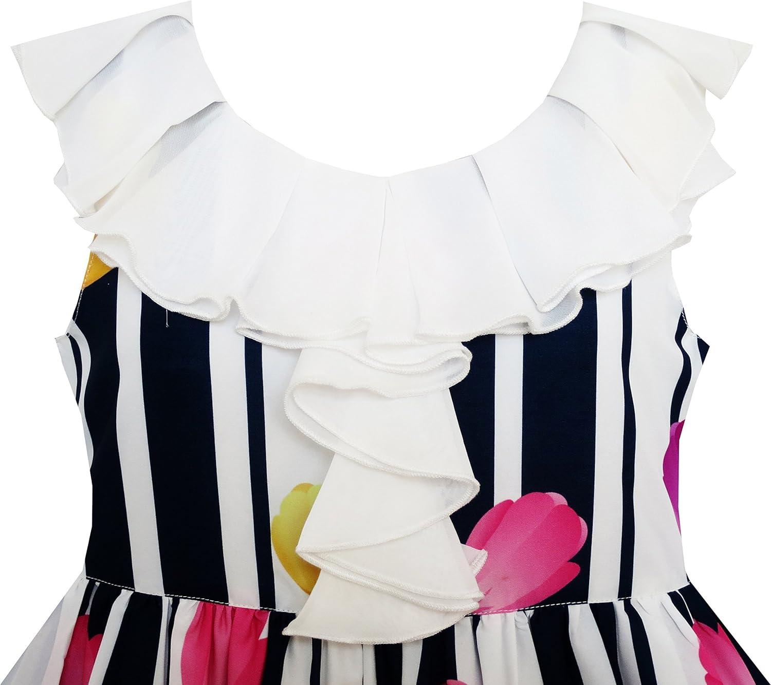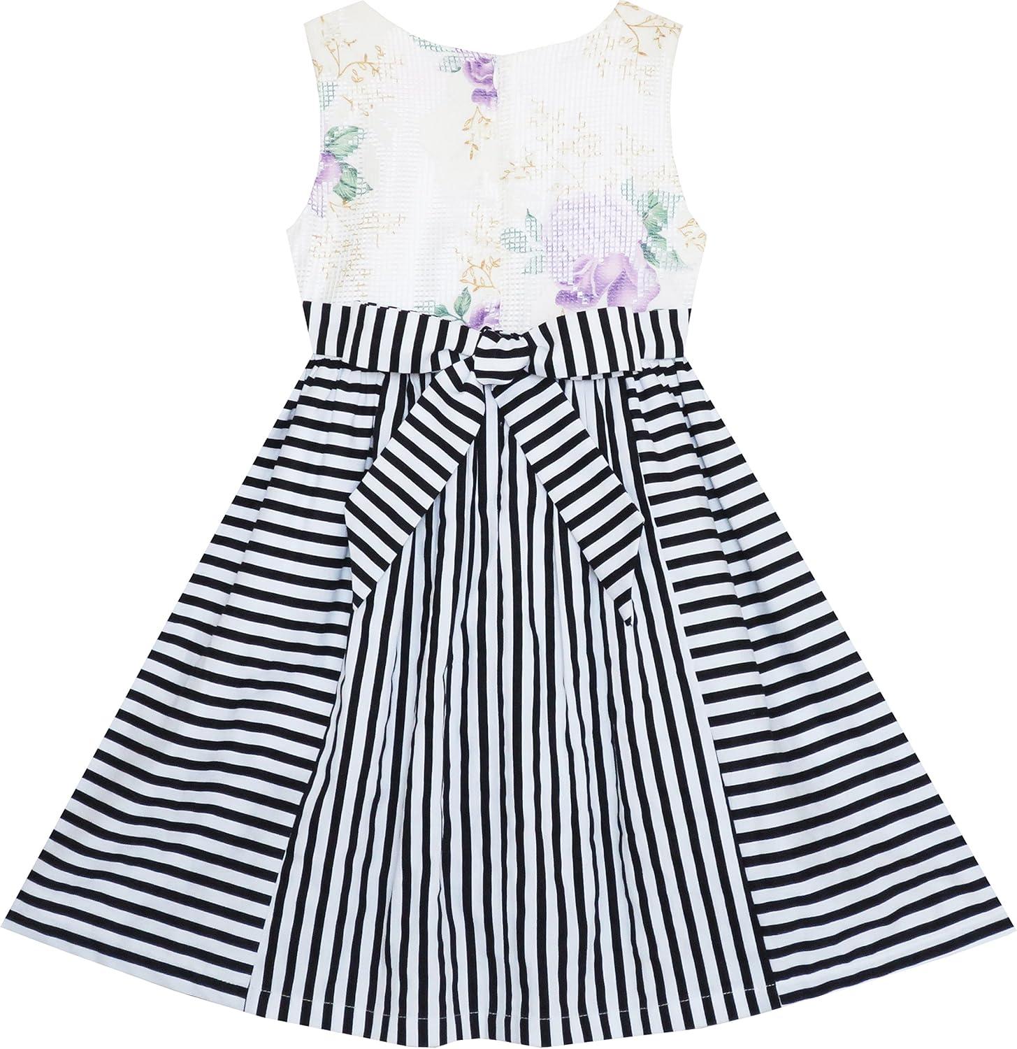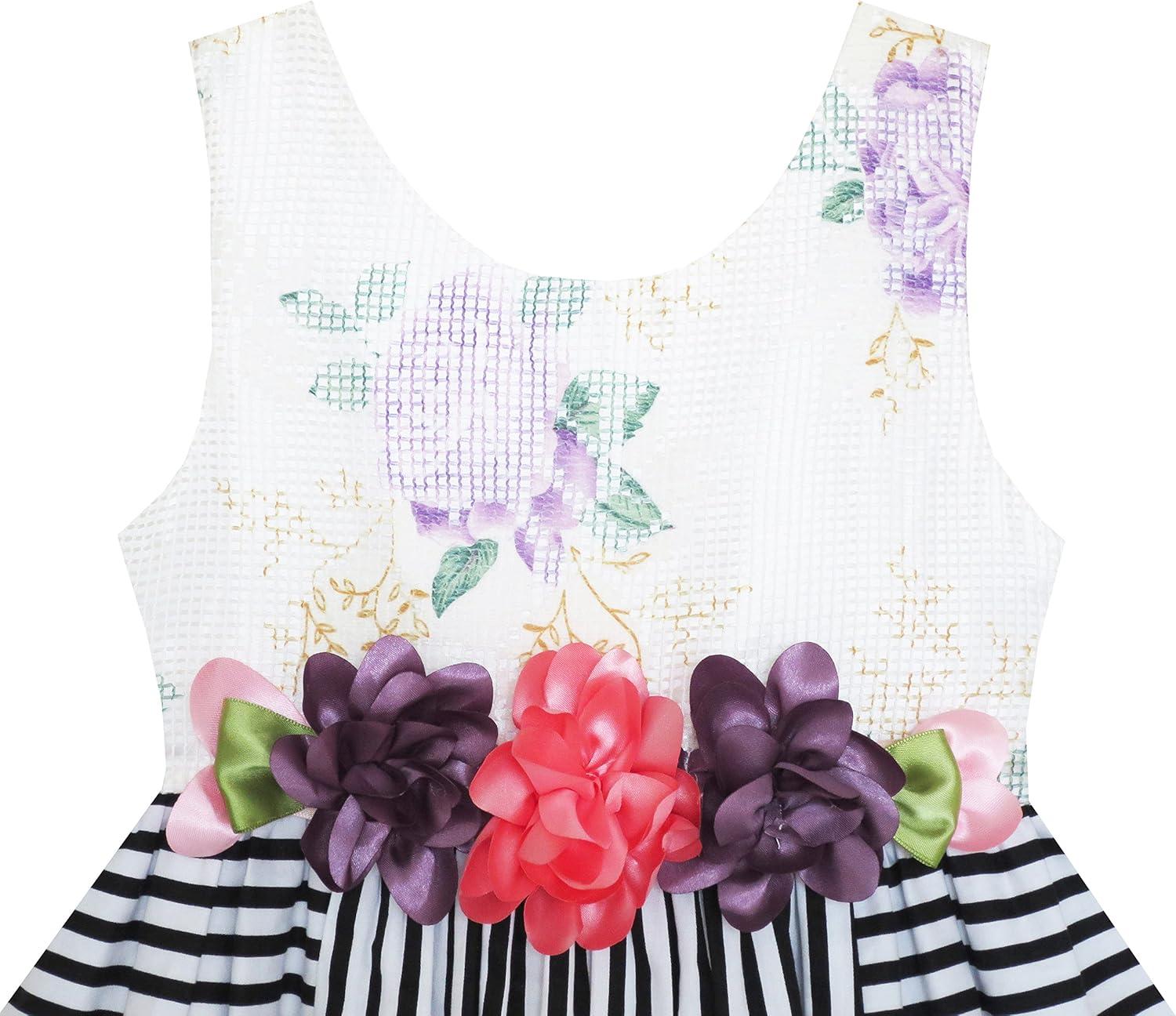 - Sunny Fashion Girls Dress Sleeveless Stripes Floral Printed Flower Waist