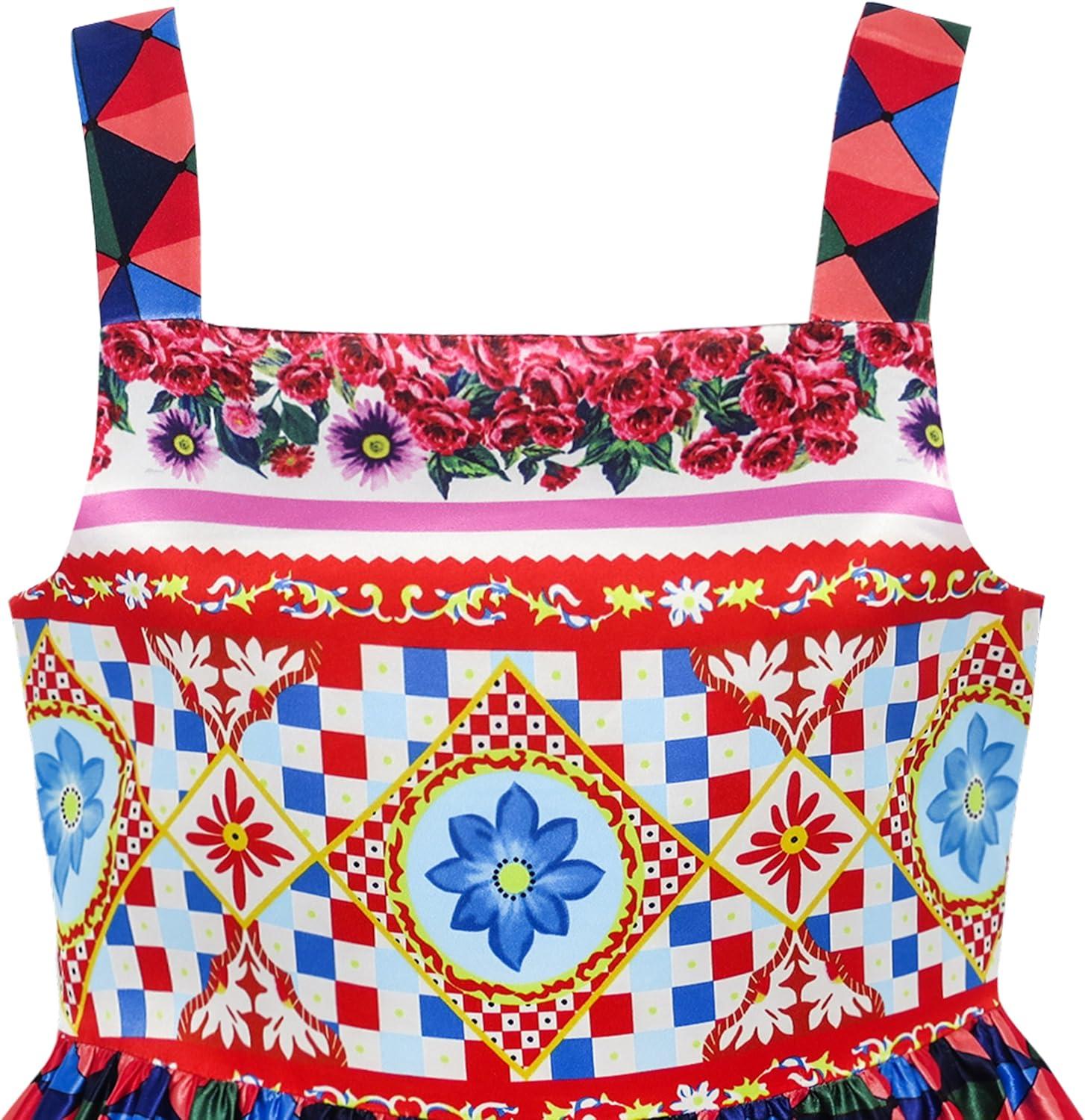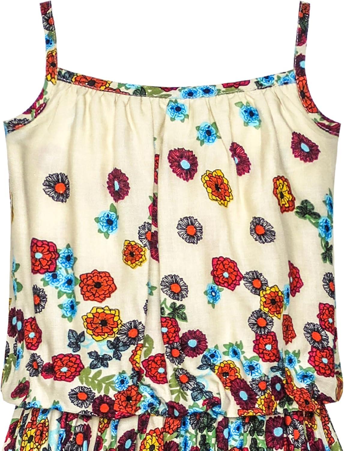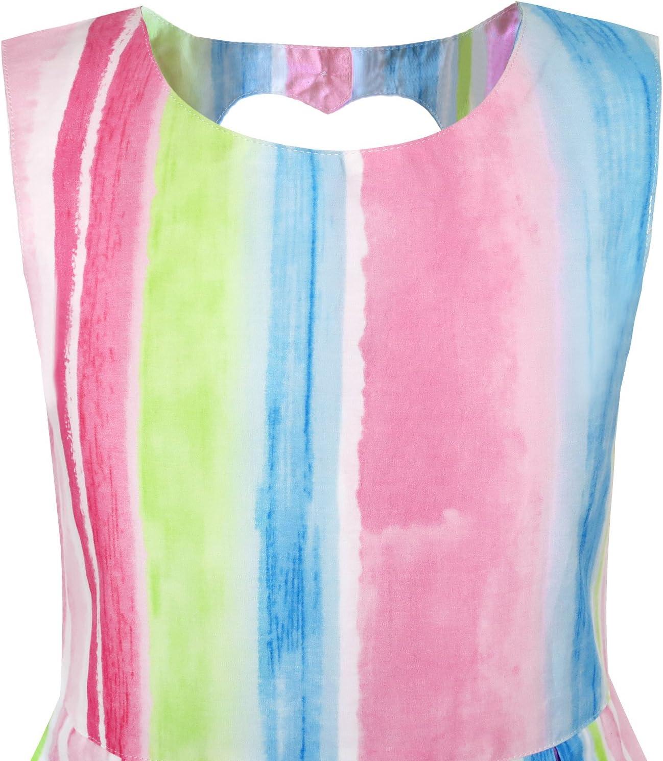 - Sunny Fashion Girls Dress Sleeveless Stripes Floral Printed Flower Waist