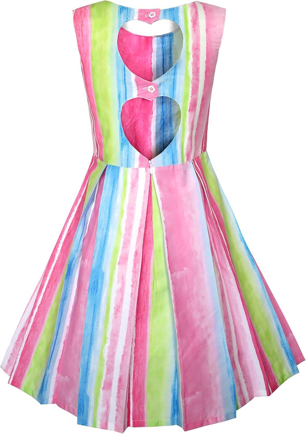 - Sunny Fashion Girls Dress Striped Heart Shape Back Blue Party Size 4-8