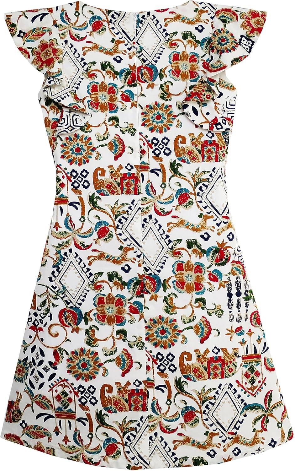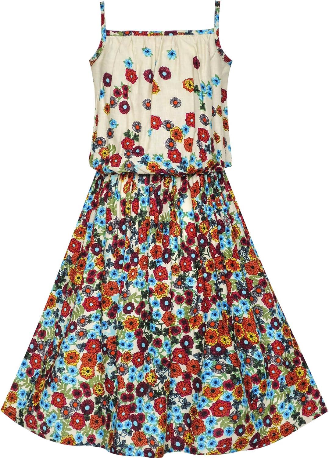 - Sunny Fashion Girls Dress Vintage Floral Cold Shoulder Summer Sundress Size 6-12
