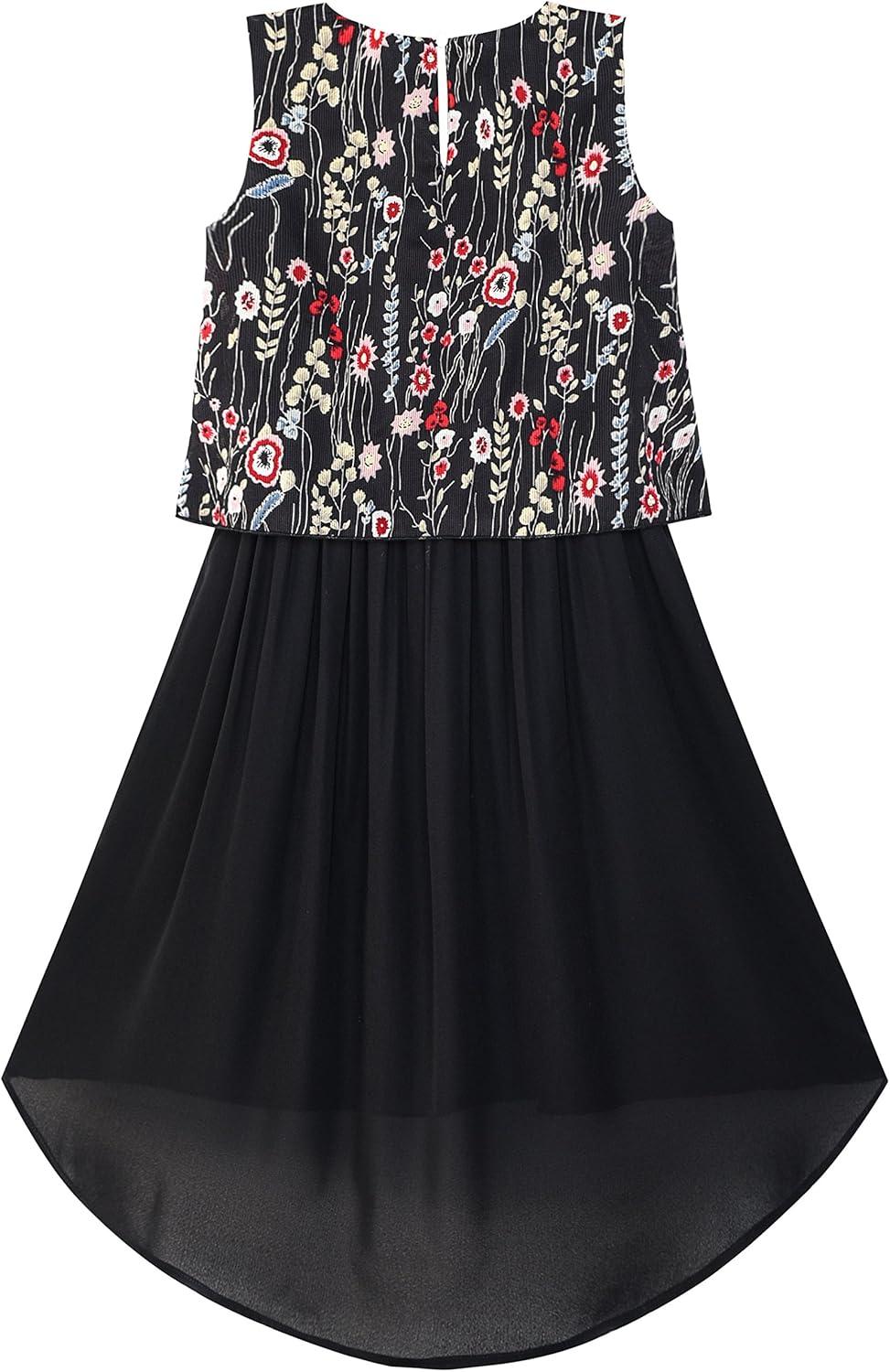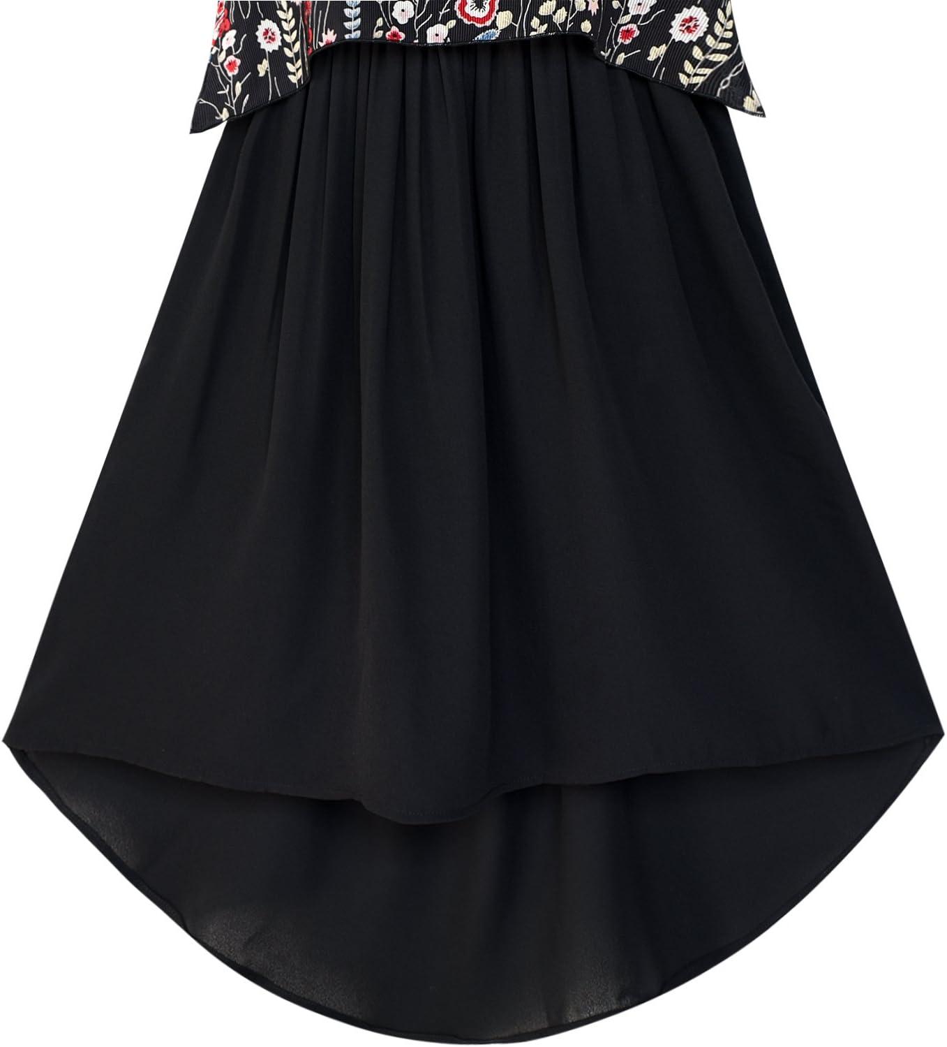 - Sunny Fashion Girls Dress Turn-Down Collar Flower Chiffon Party Black Size 7-14