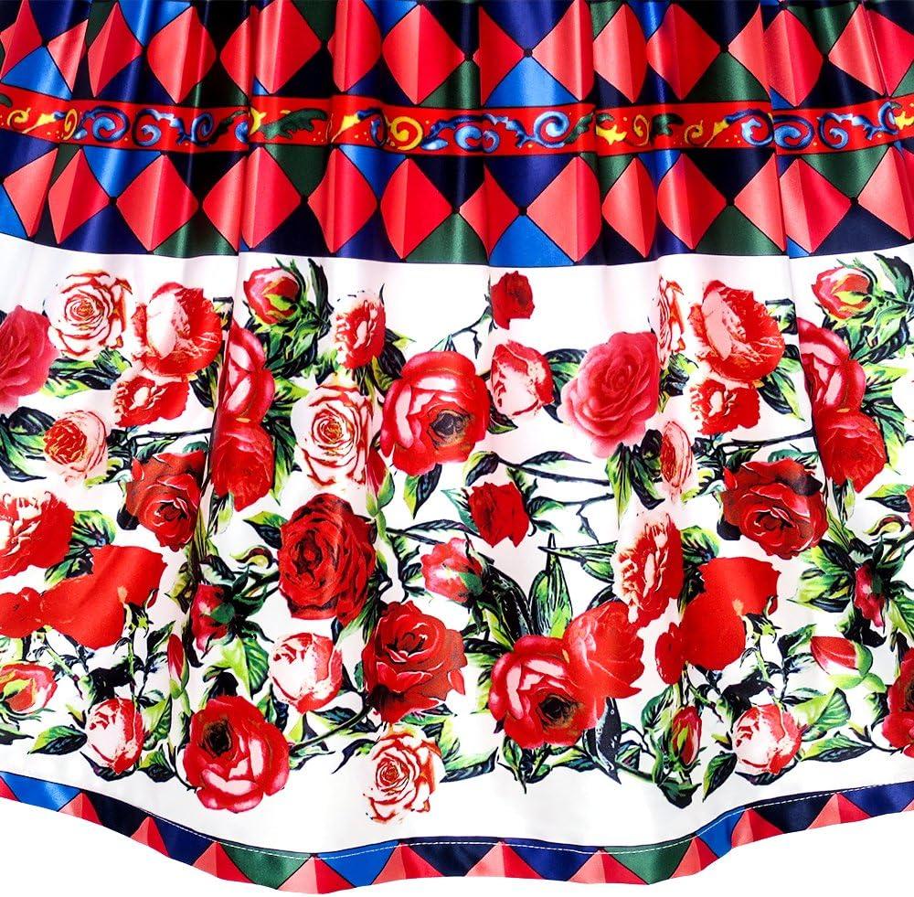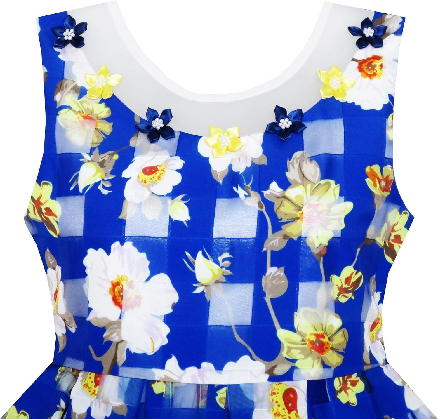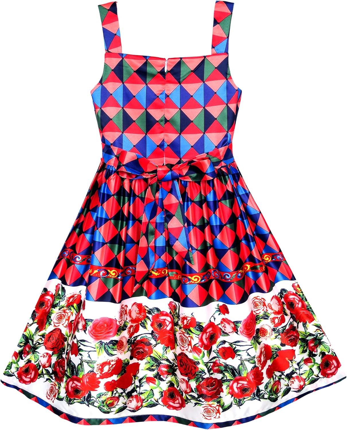 - Sunny Fashion Girls Dress Vintage Flower Print Fit and Flare Birthday Dress