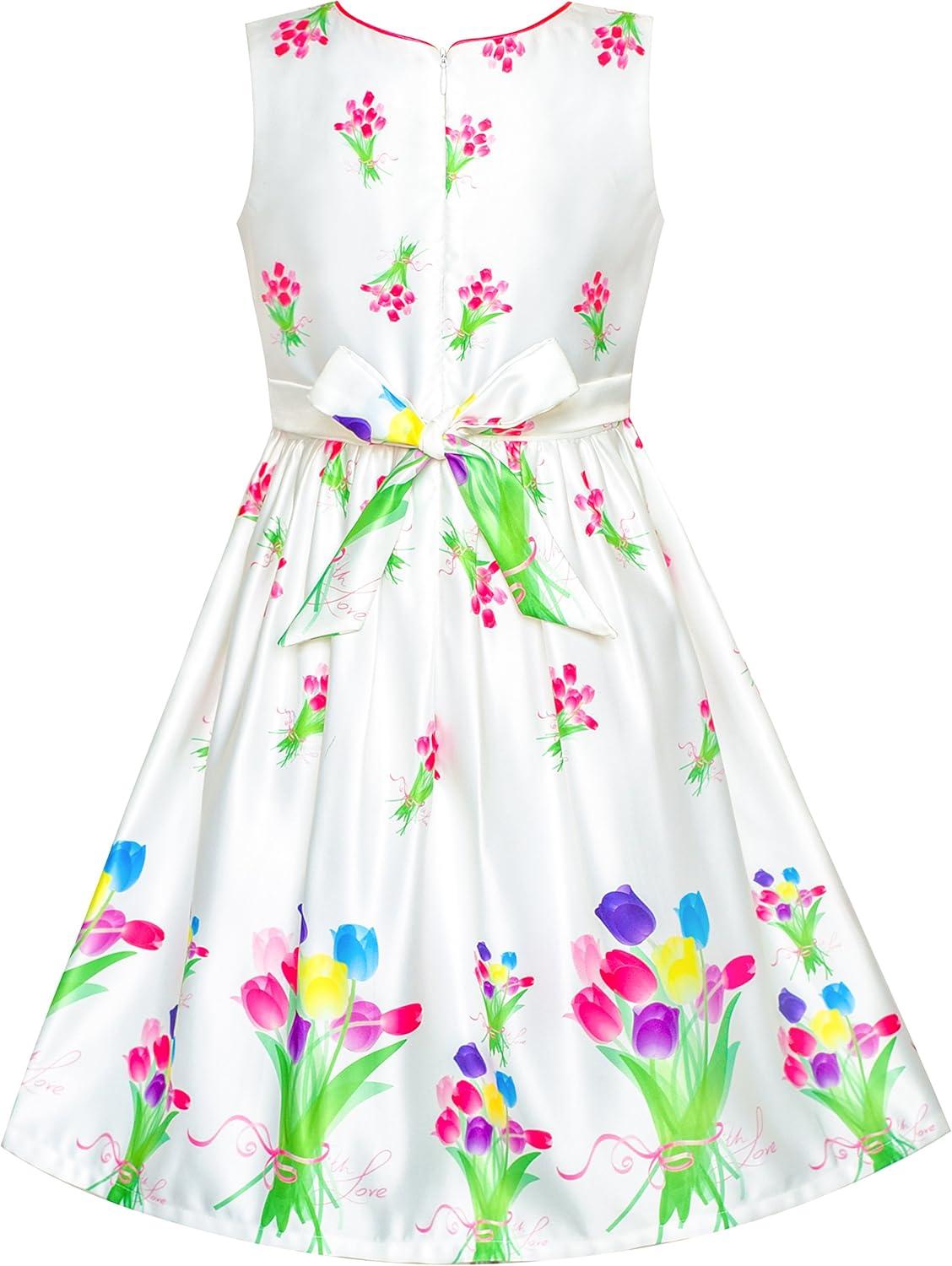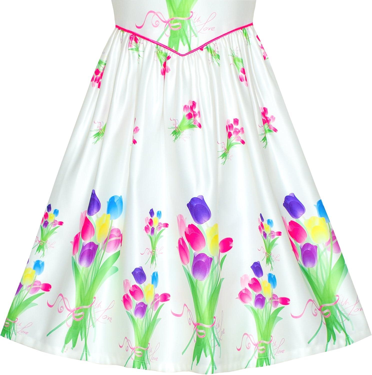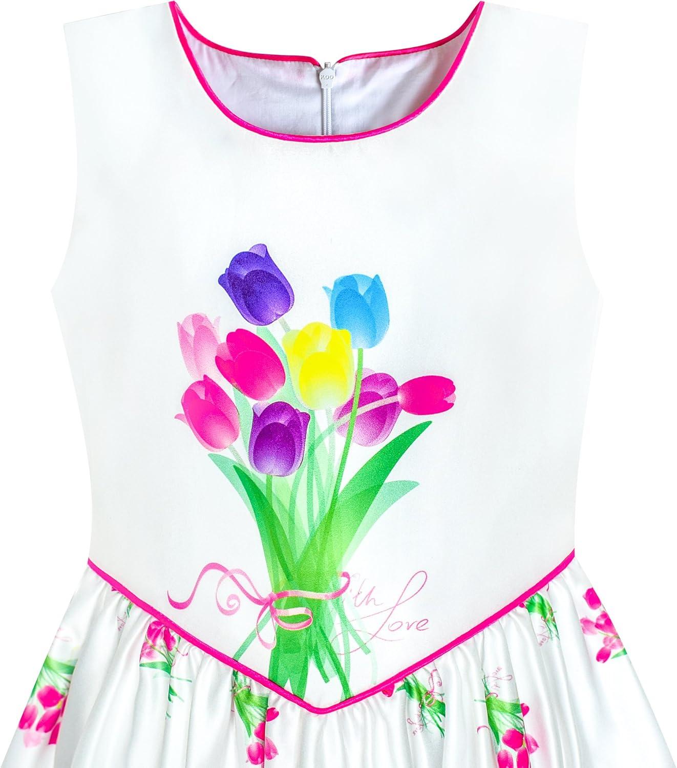 - Sunny Fashion Girls Dress Tulip Flower Bouquet Spring Party Sundress Size 6-12