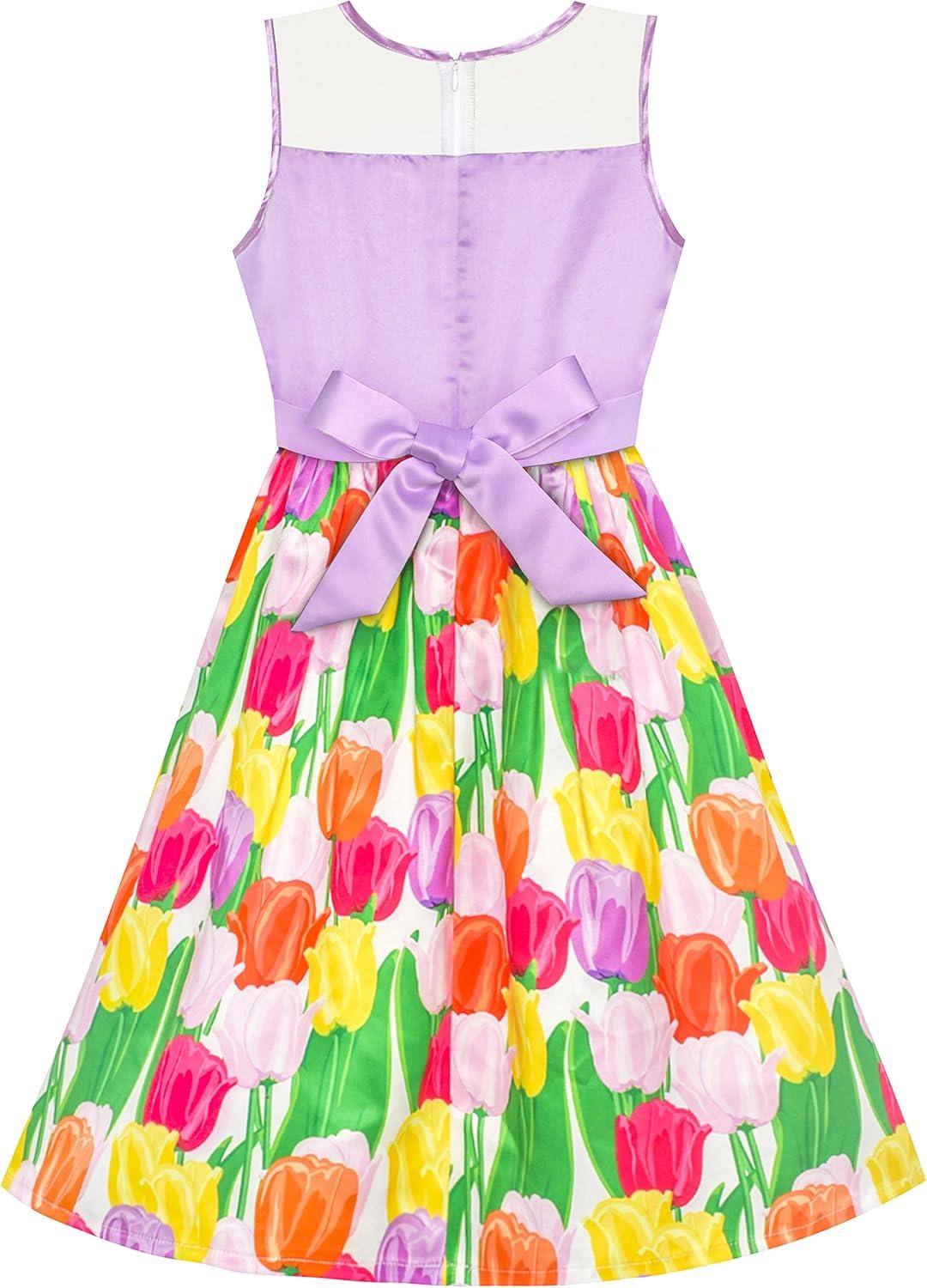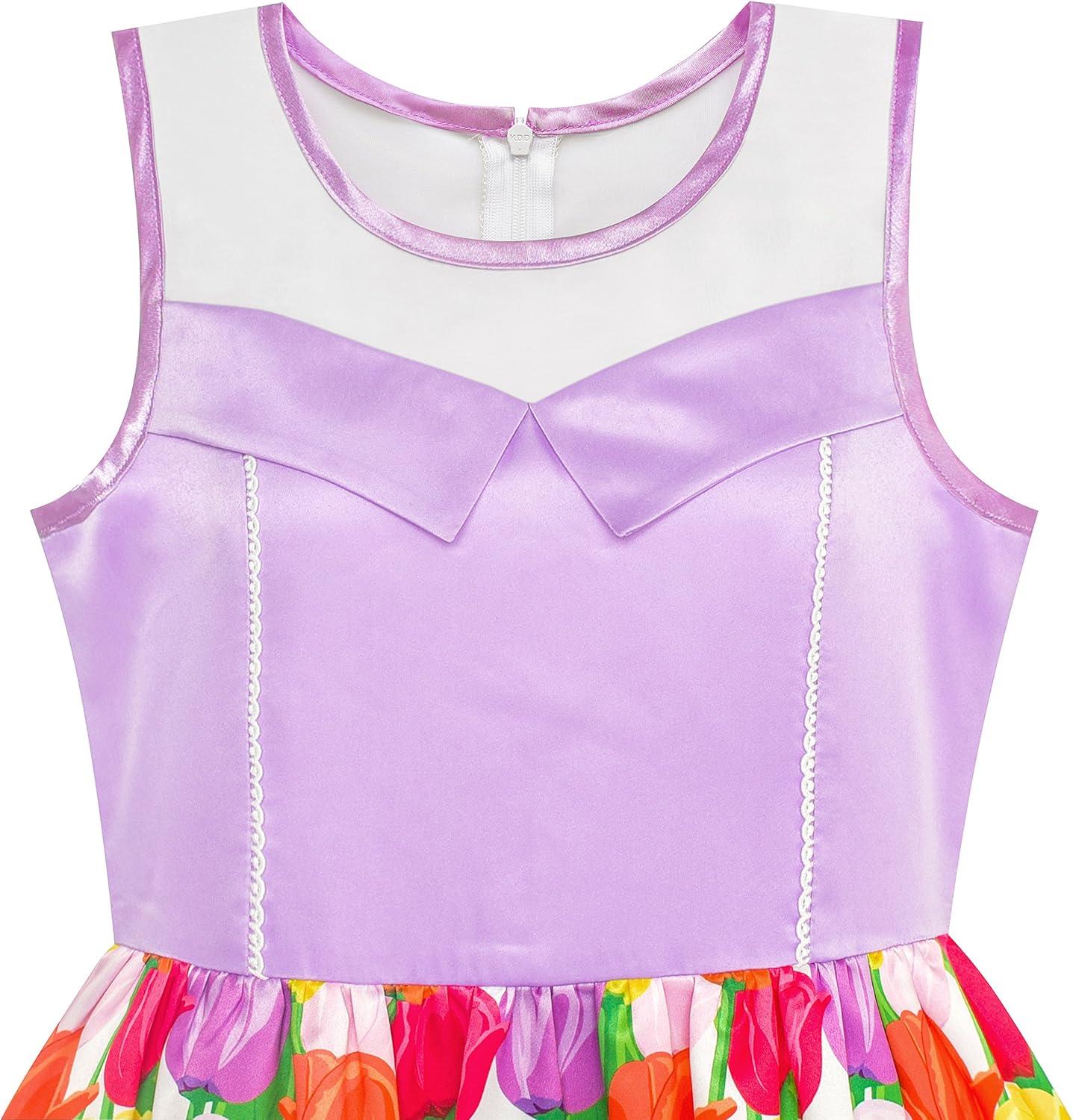 - Sunny Fashion Girls Dress Tulip Flower Purple Party Sundress Size 5-12