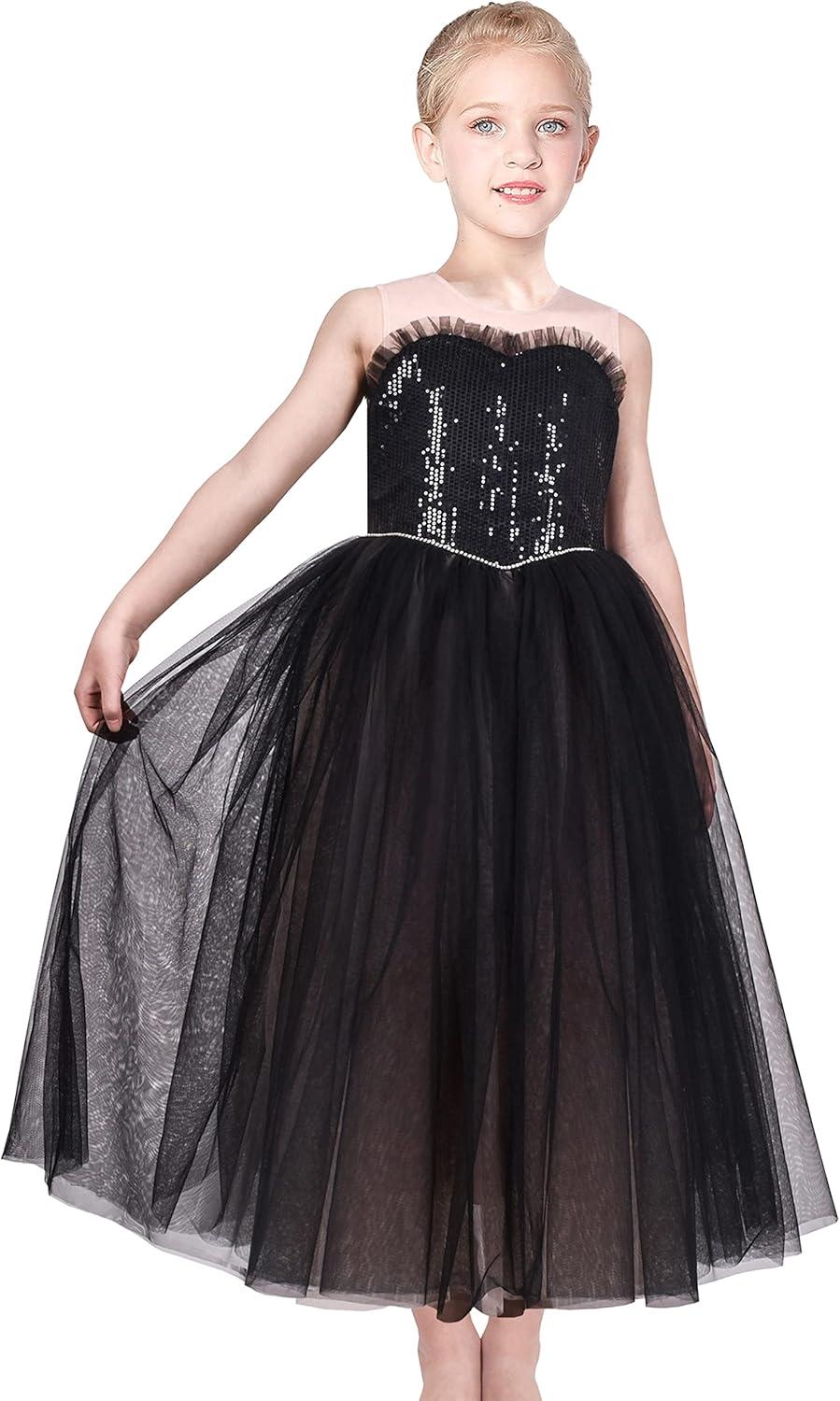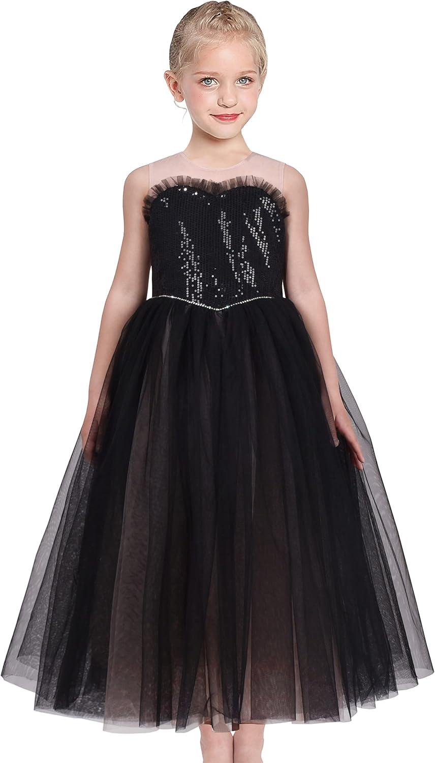 - Sunny Fashion Girls Dress Glitter Sequin Wedding Bridesmaid Pageant Size 4-14(Black)