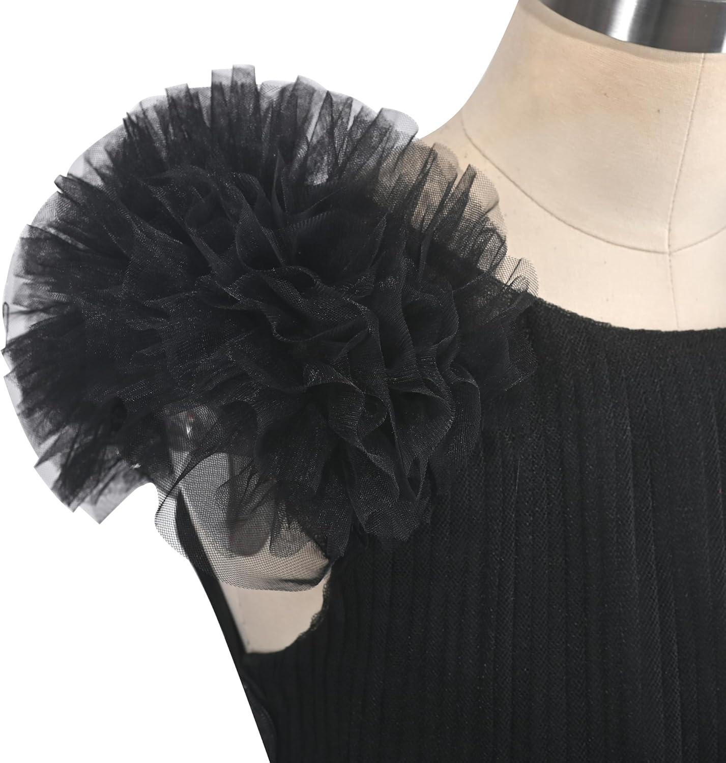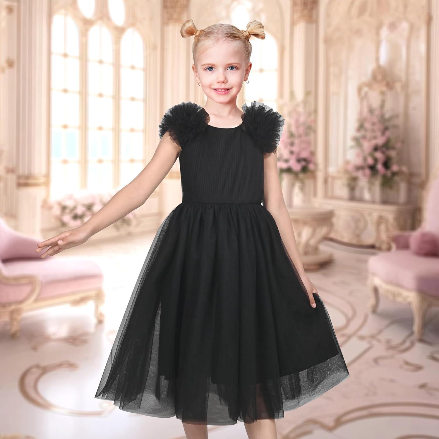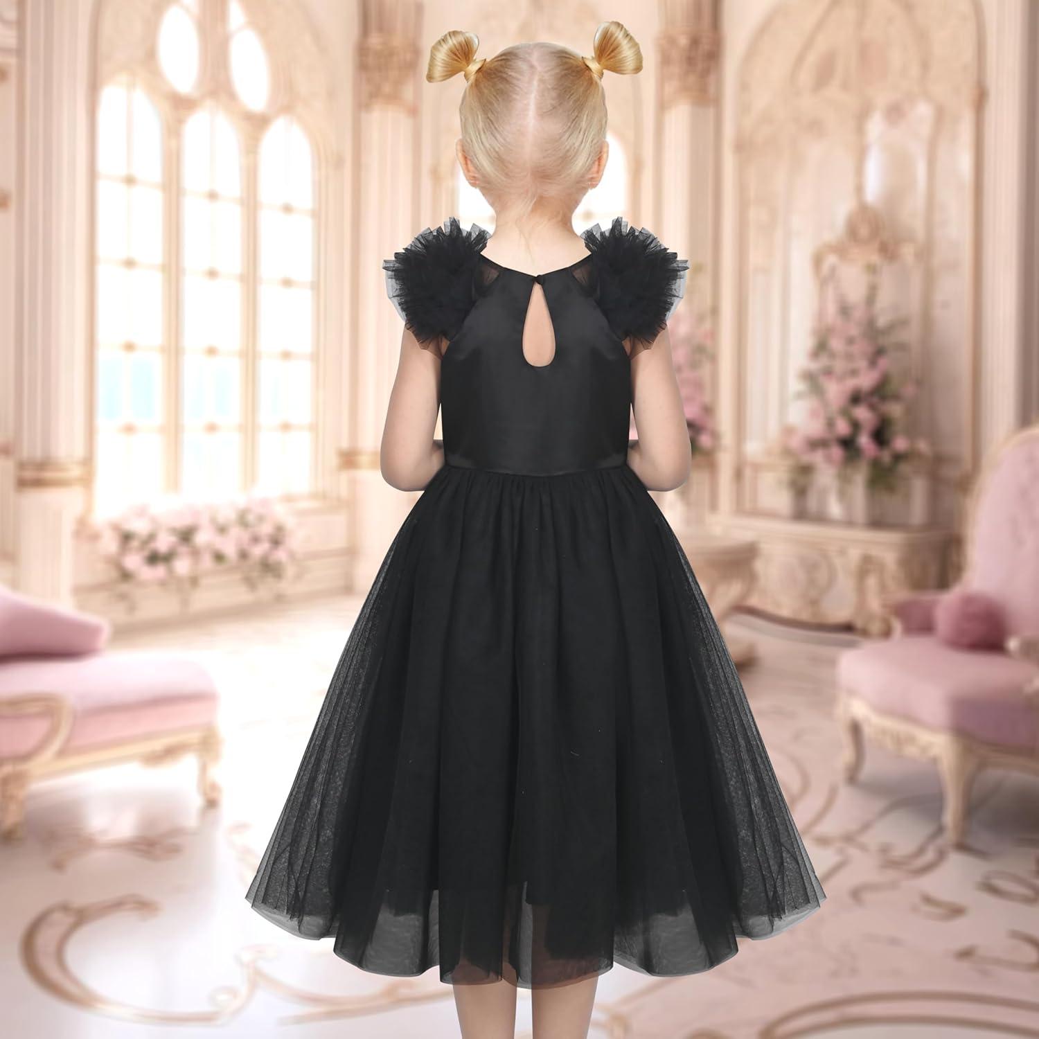 - Sunny Fashion Girls Dress Glitter Sequin Wedding Bridesmaid Pageant Size 4-14(Black Puff Sleeve)
