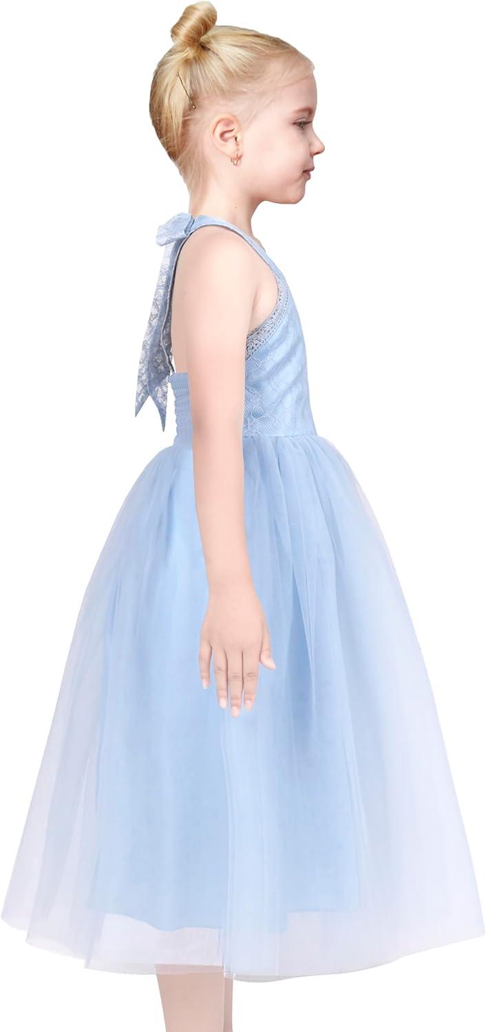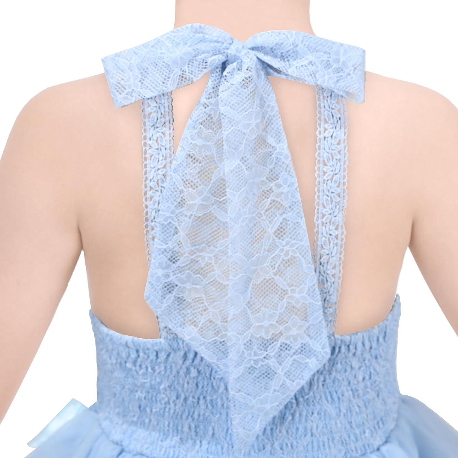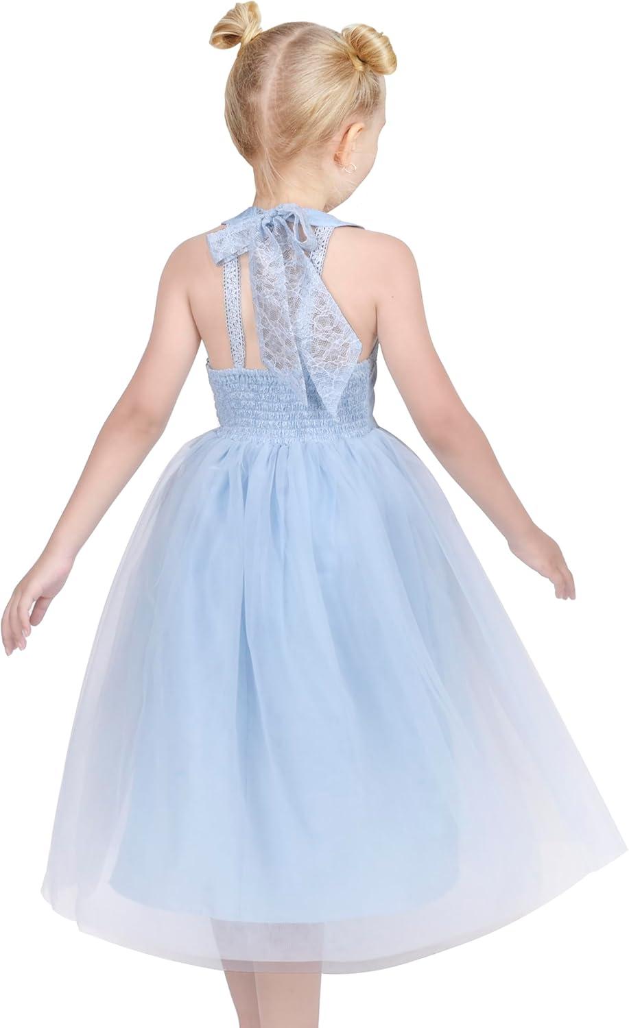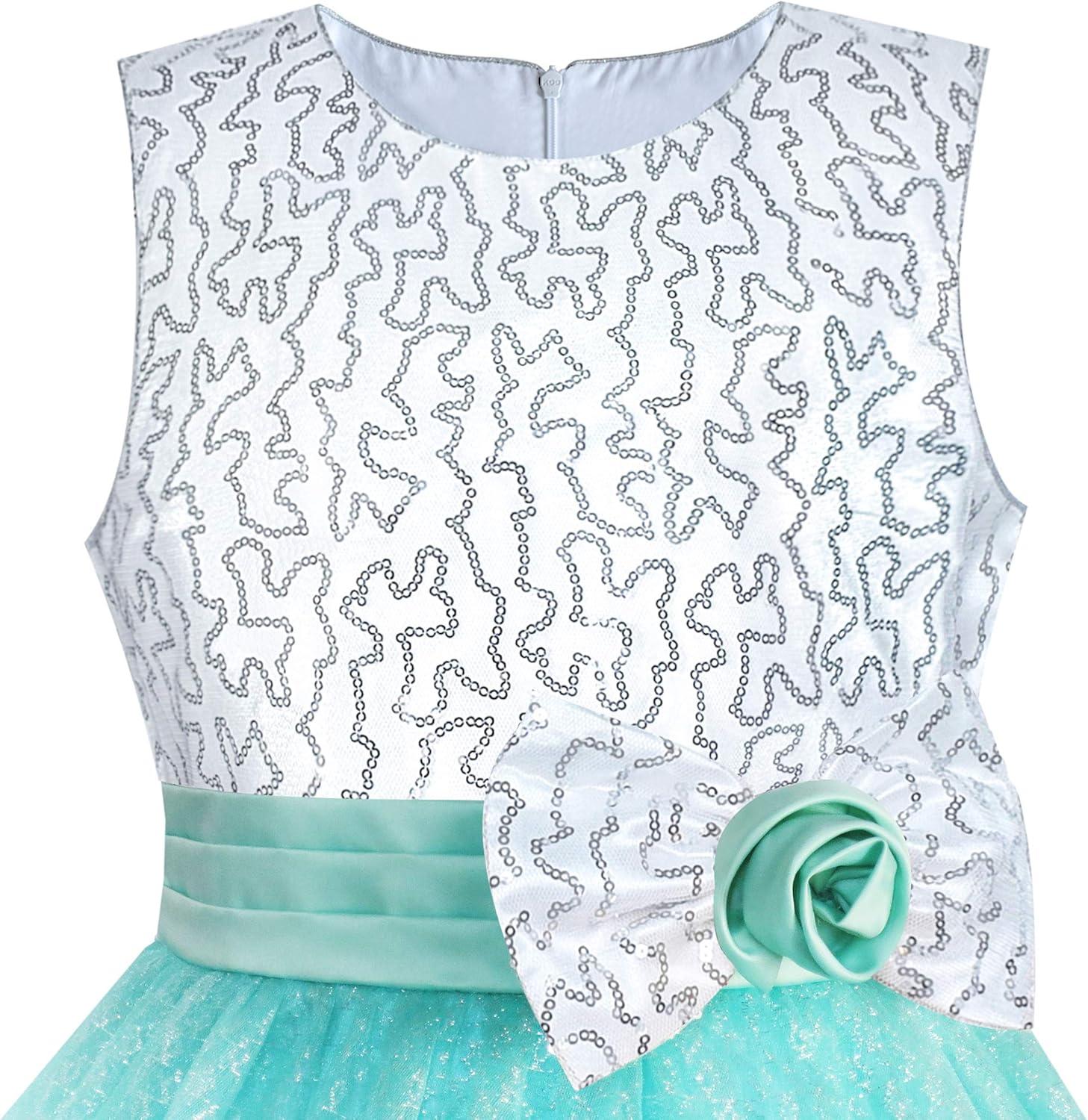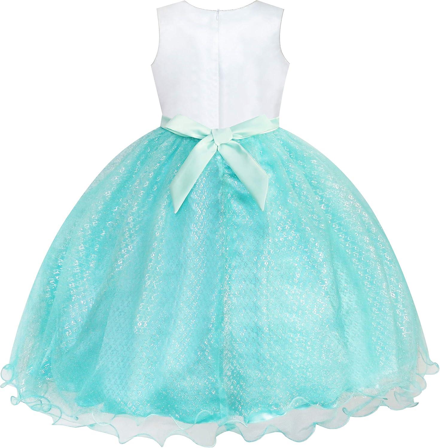 - Sunny Fashion Girls Dress Glitter Sequin Wedding Bridesmaid Pageant Size 4-14(Sky Blue Tulle)