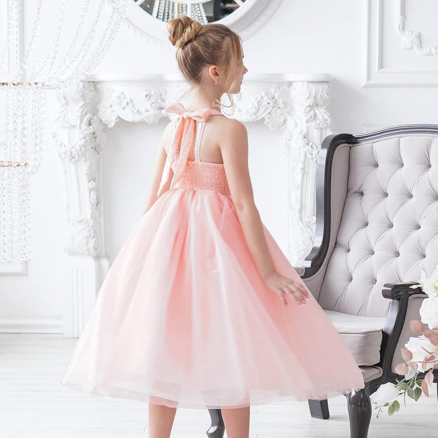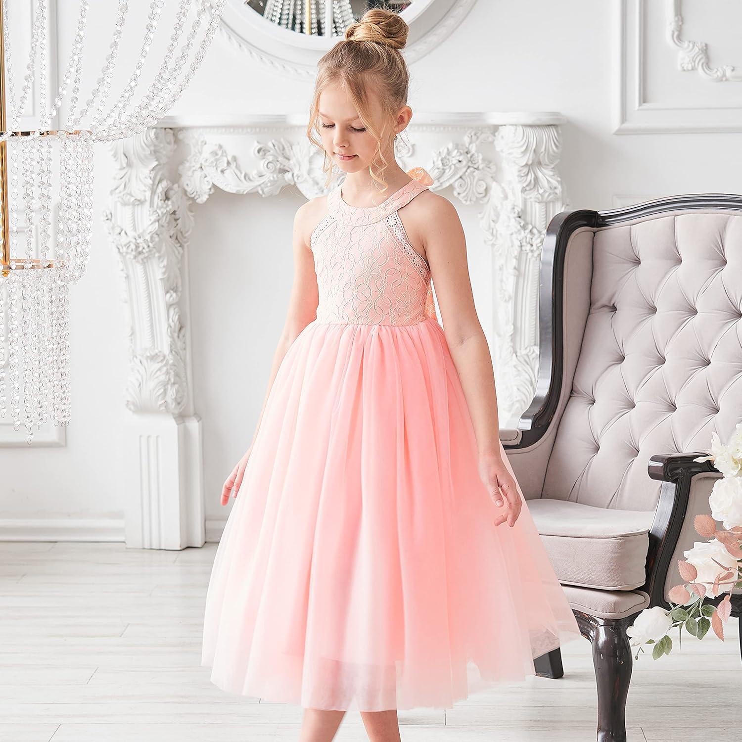 - Sunny Fashion Girls Dress Glitter Sequin Wedding Bridesmaid Pageant Size 4-14(Flesh Pink)