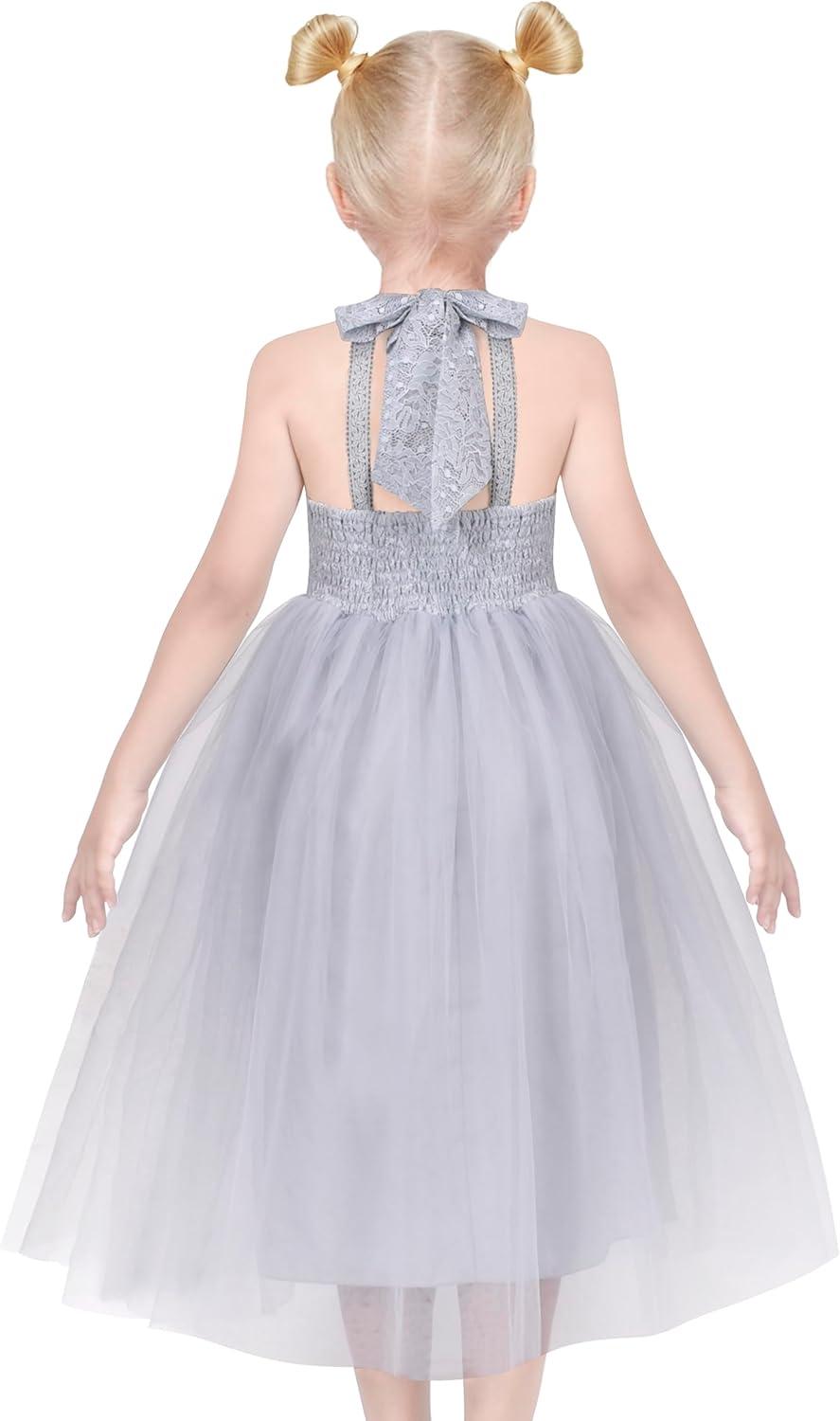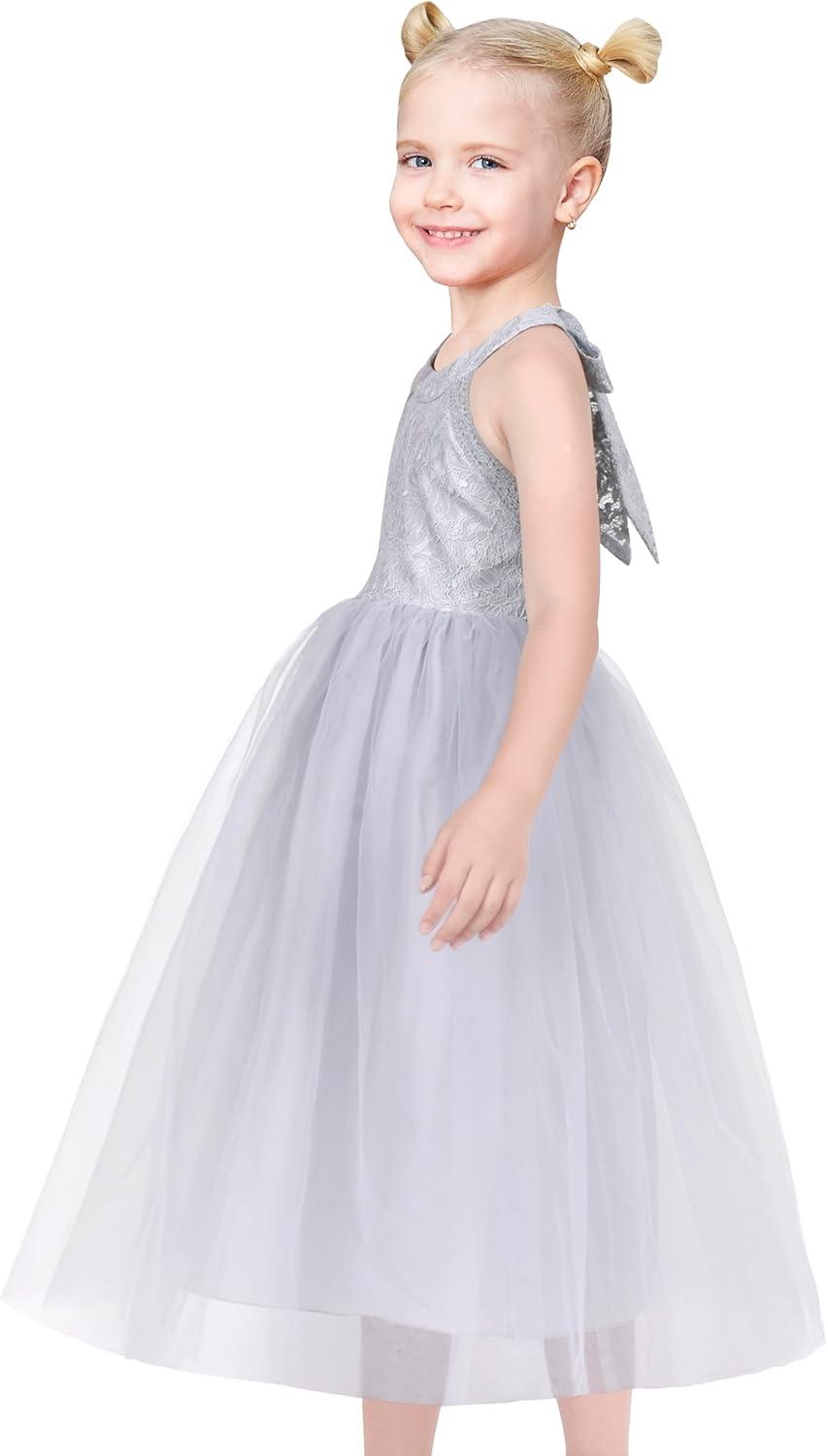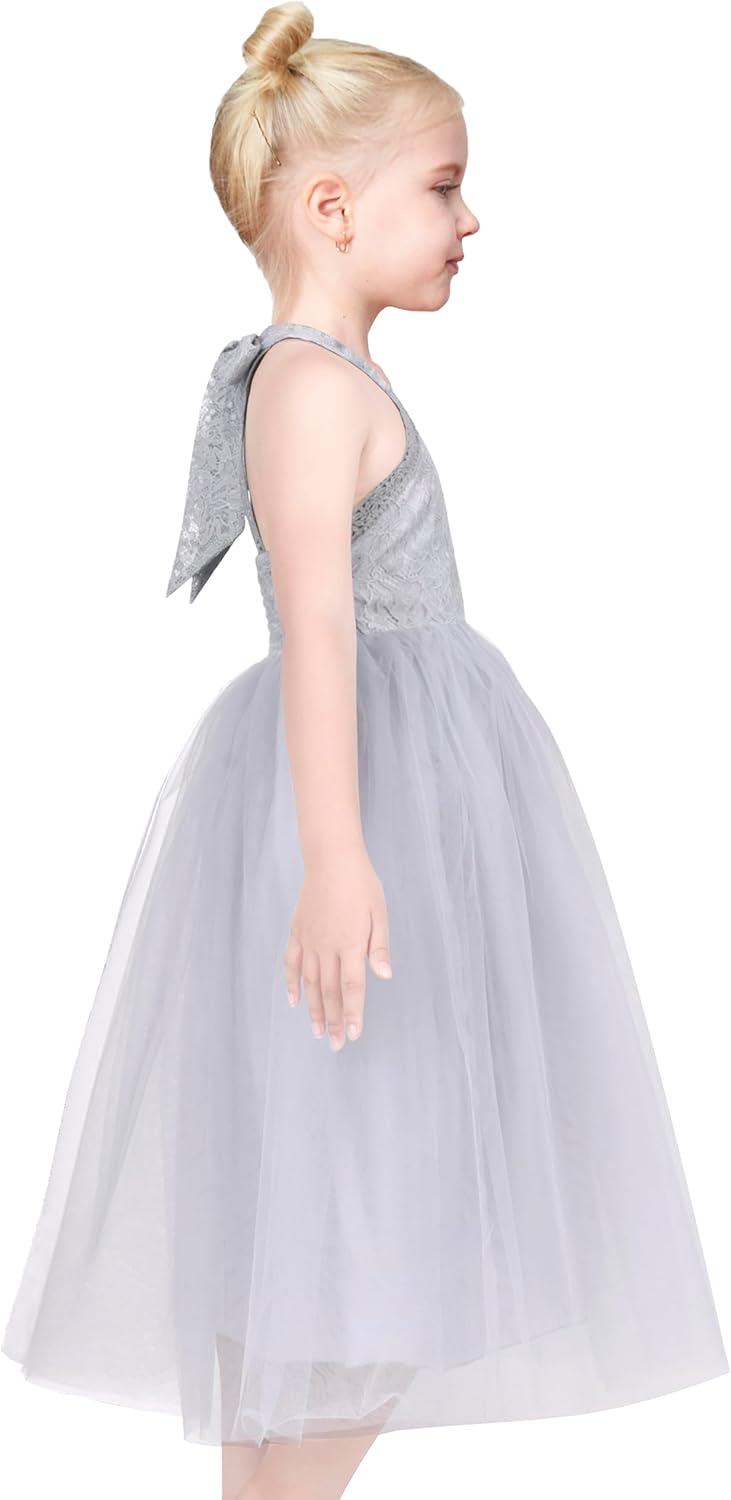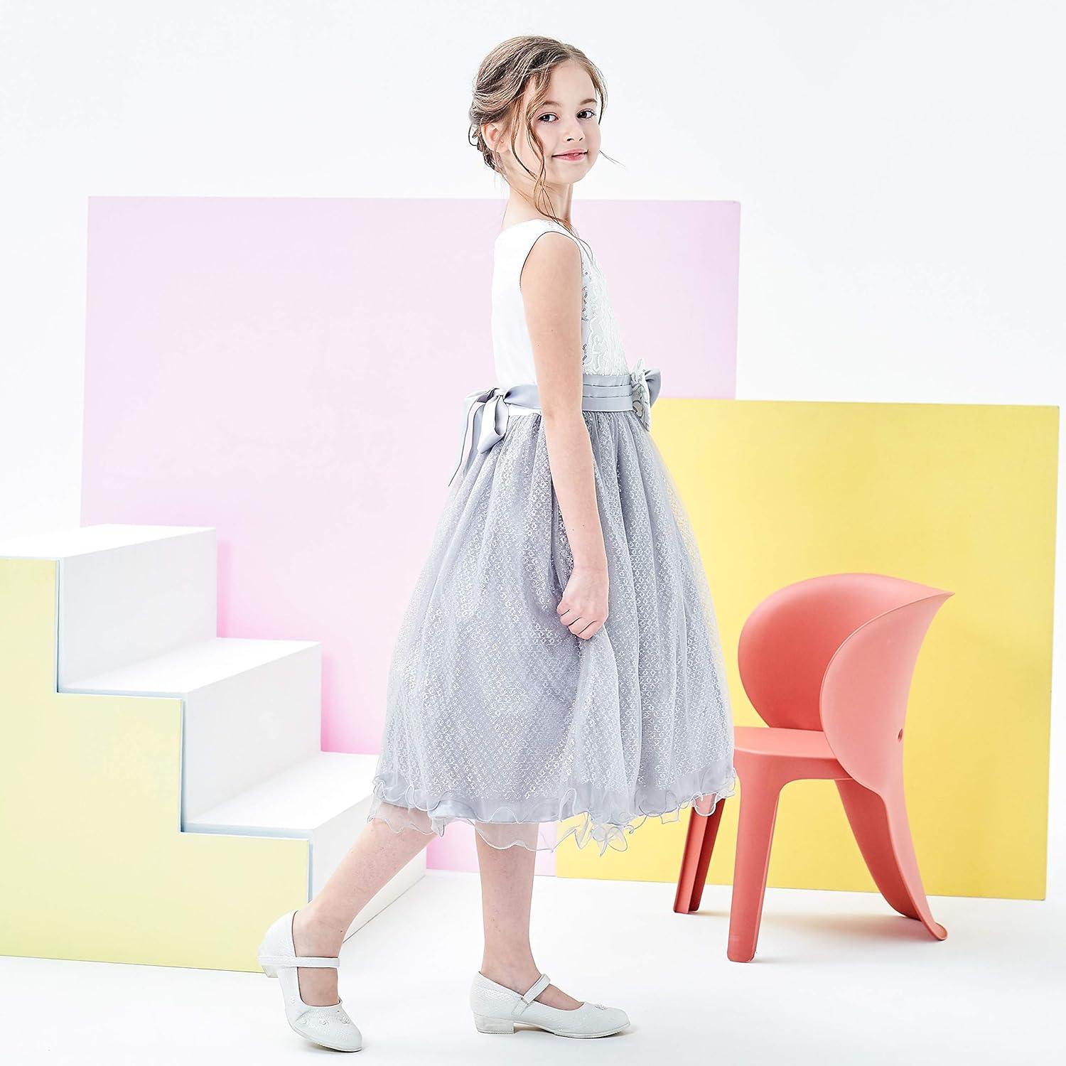 - Sunny Fashion Girls Dress Glitter Sequin Wedding Bridesmaid Pageant Size 4-14(Gray Tulle)