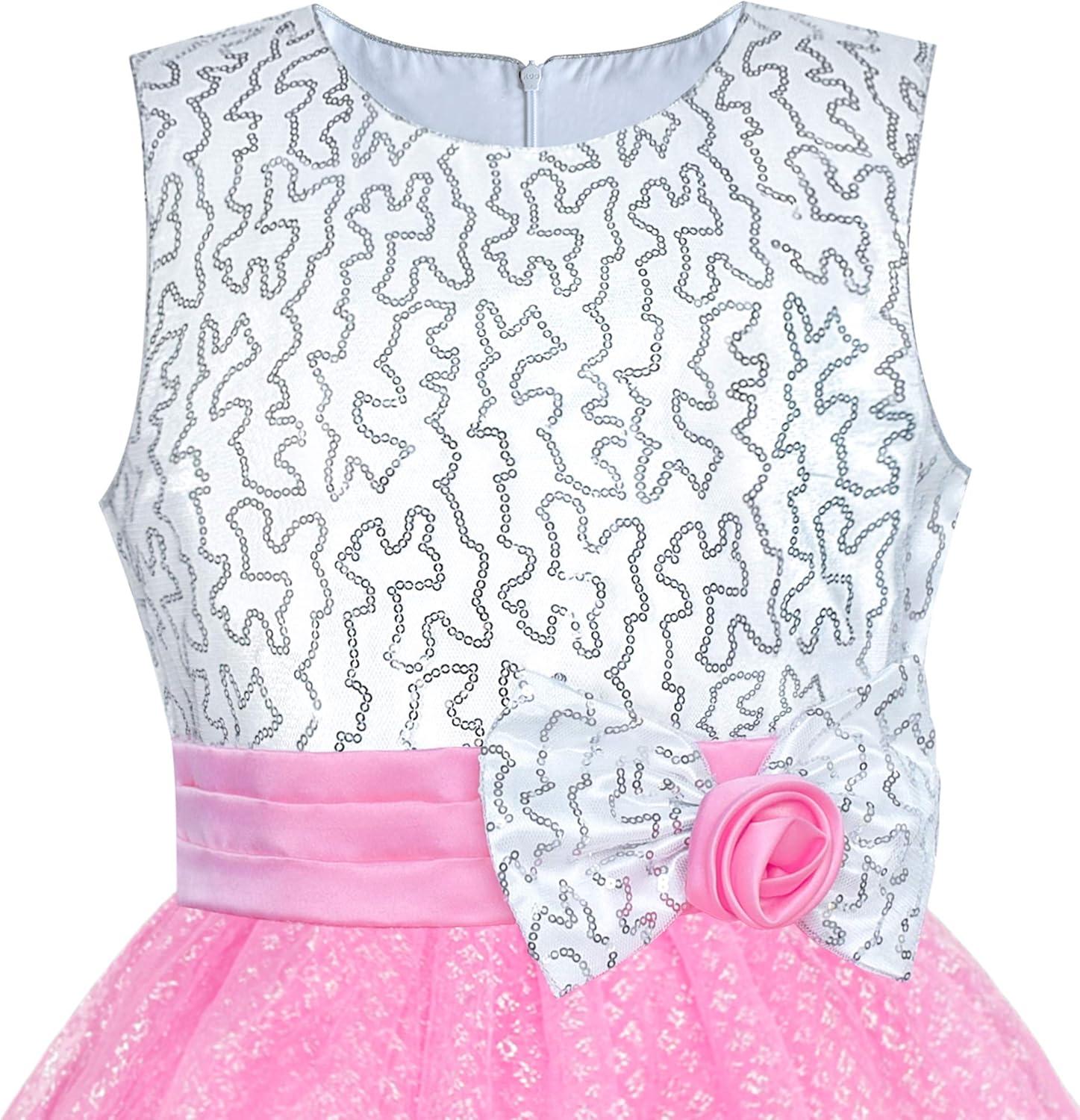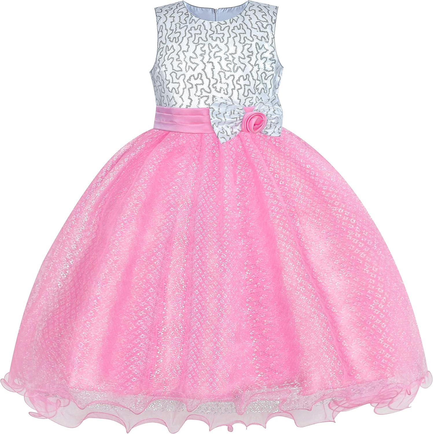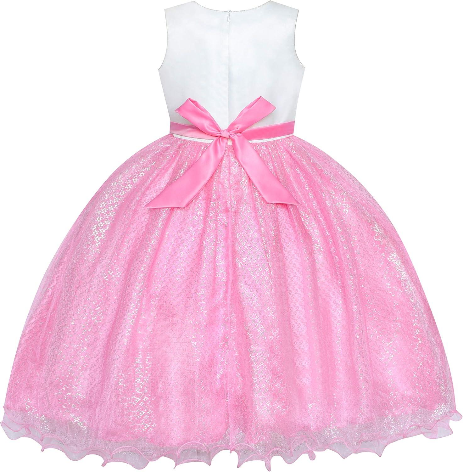 - Sunny Fashion Girls Dress Glitter Sequin Wedding Bridesmaid Pageant Size 4-14(Pink)