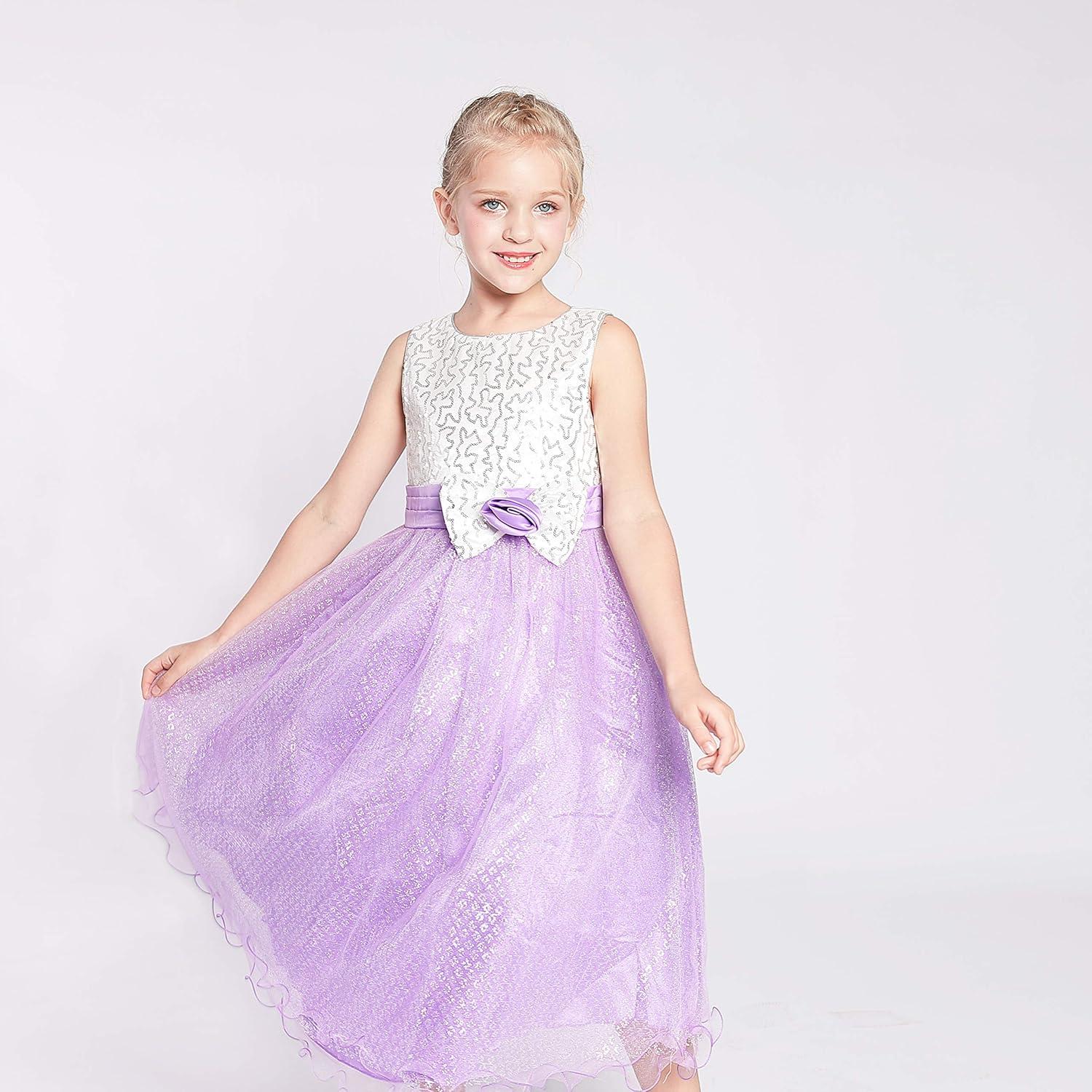 - Sunny Fashion Girls Dress Glitter Sequin Wedding Bridesmaid Pageant Size 4-14(Purple)
