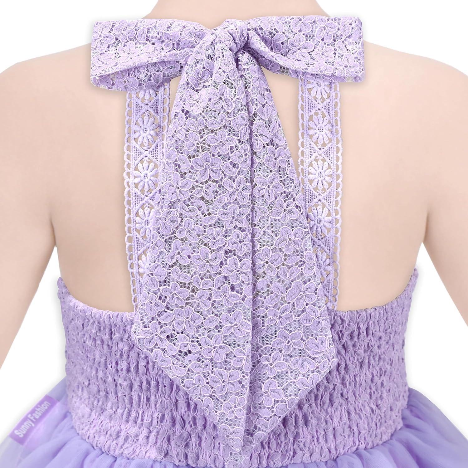 - Sunny Fashion Girls Dress Glitter Sequin Wedding Bridesmaid Pageant Size 4-14(Purple Tulle)