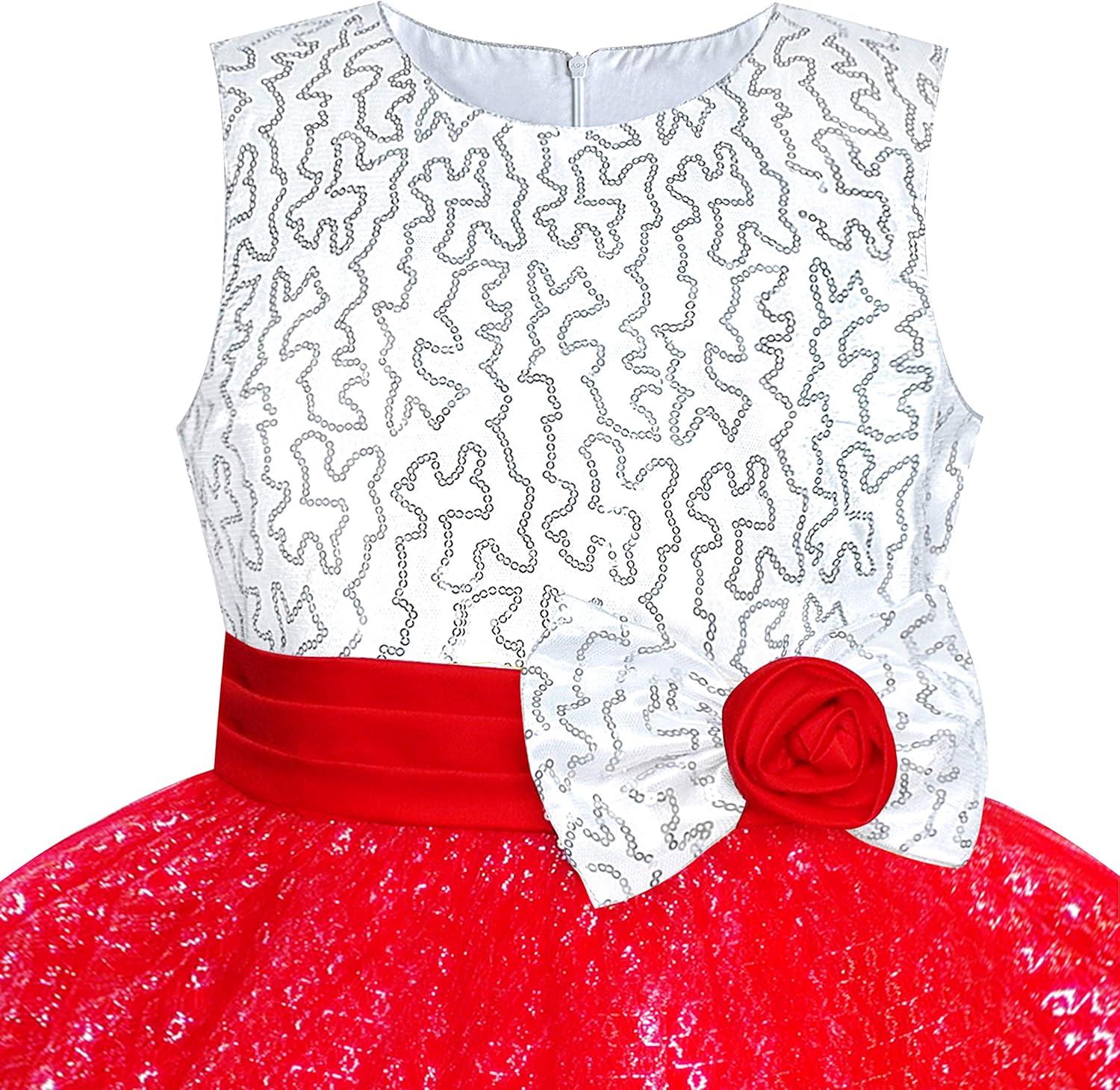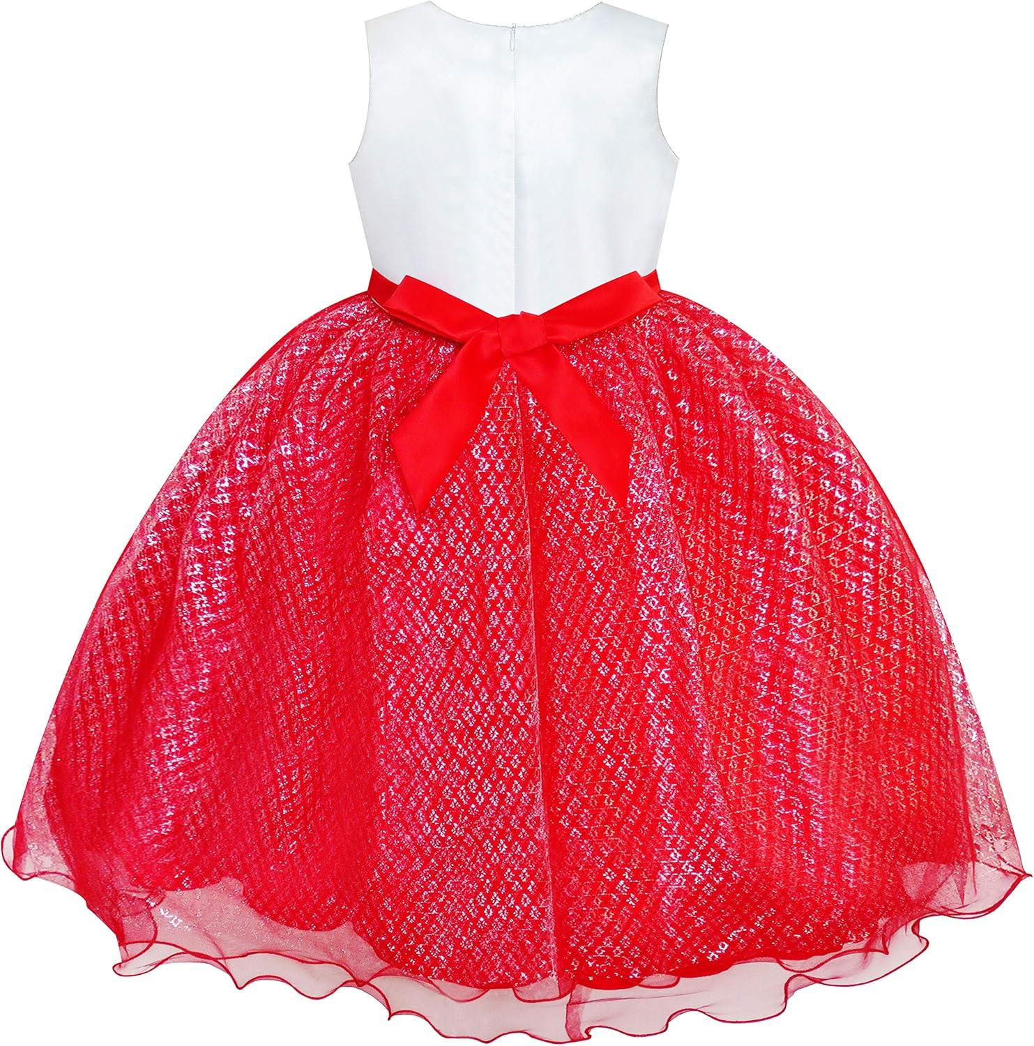 - Sunny Fashion Girls Dress Glitter Sequin Wedding Bridesmaid Pageant Size 4-14(Red)