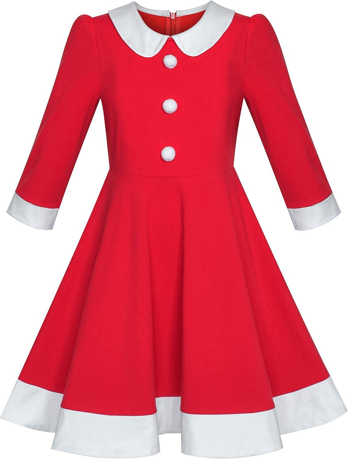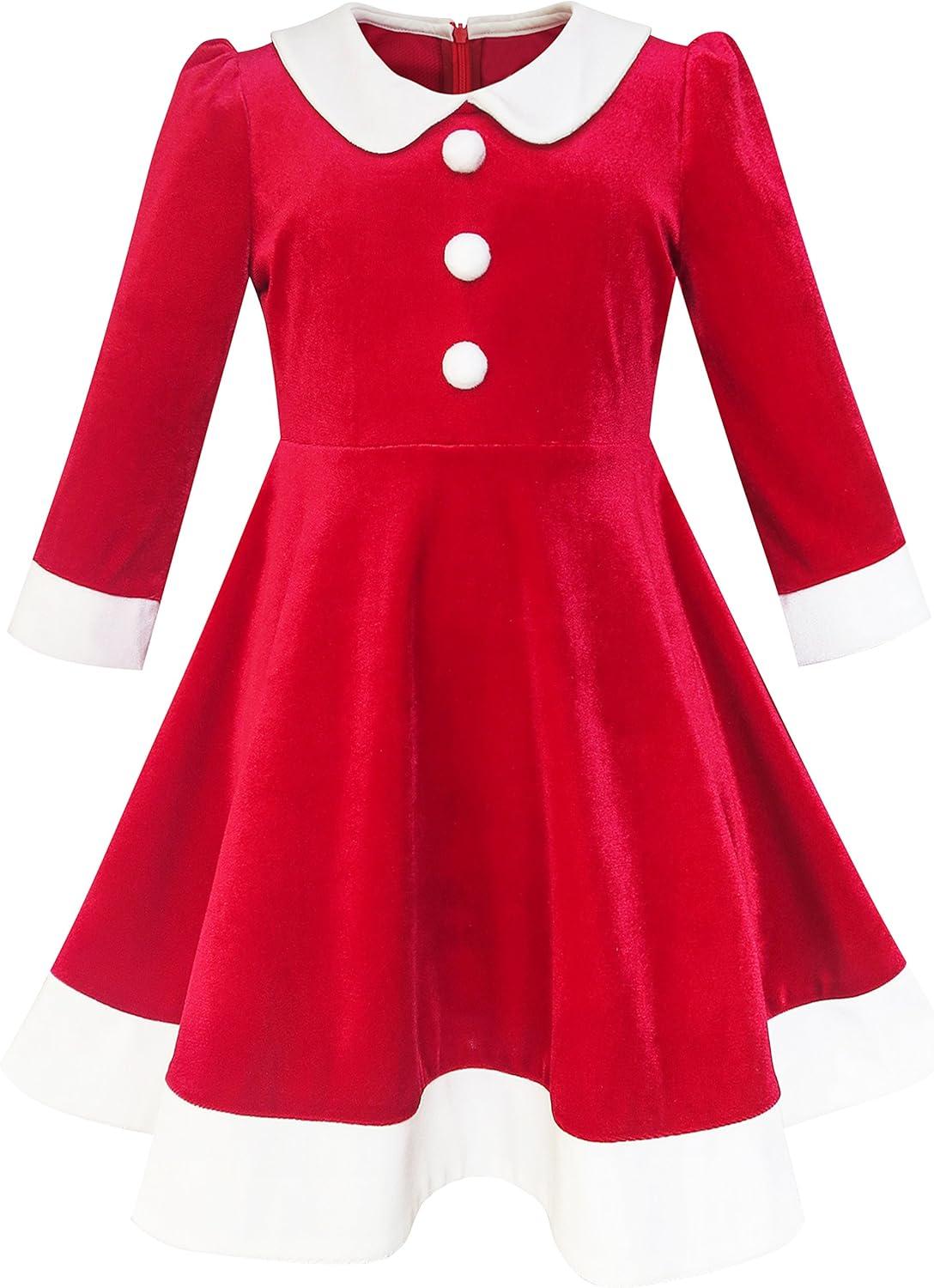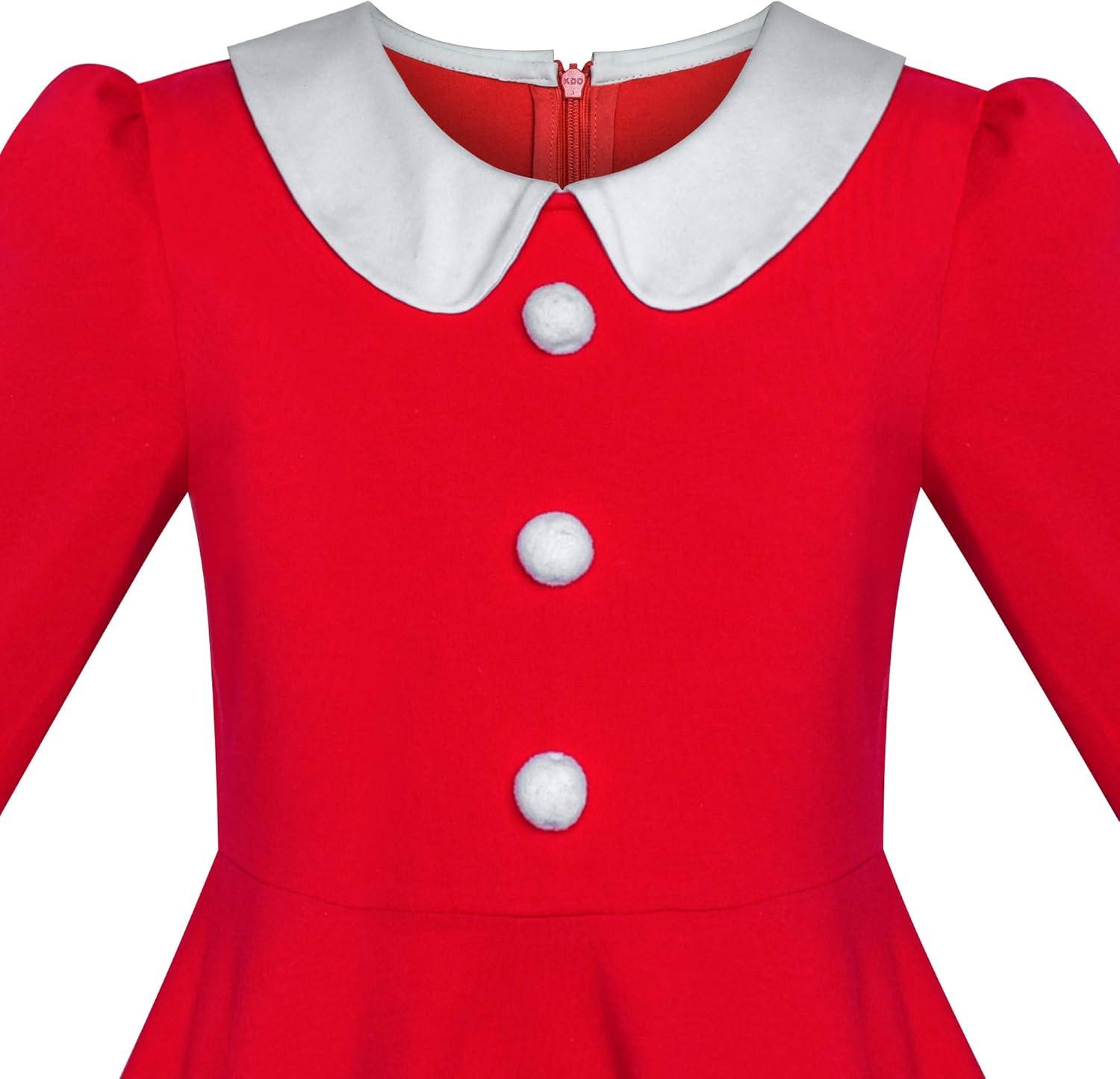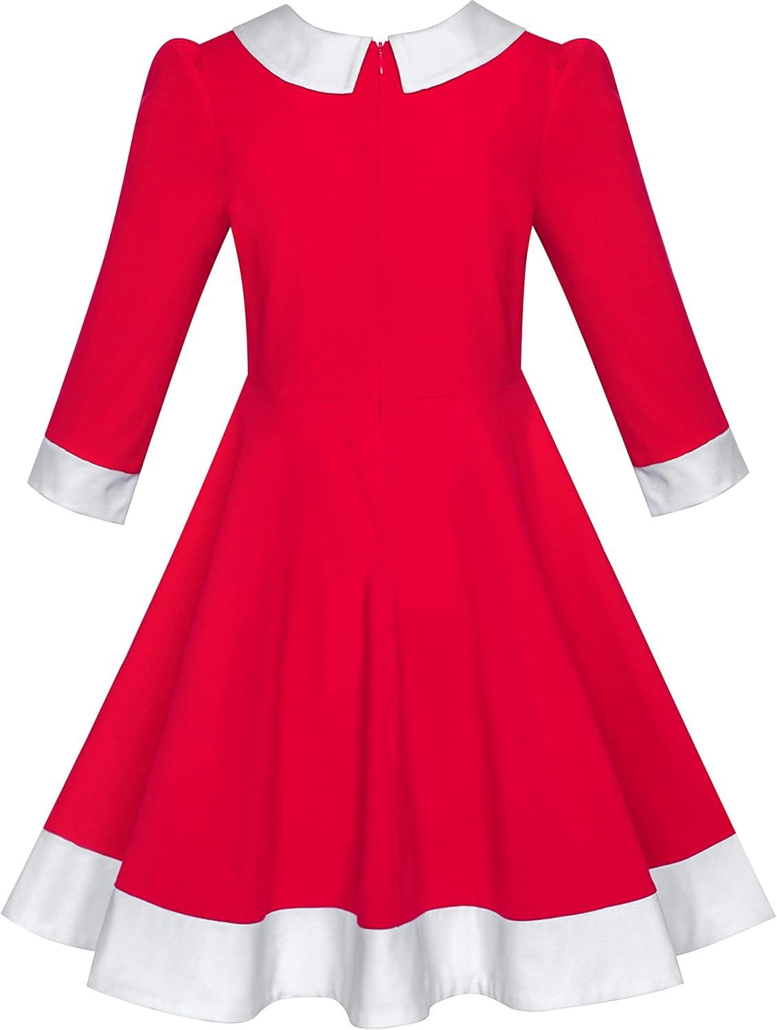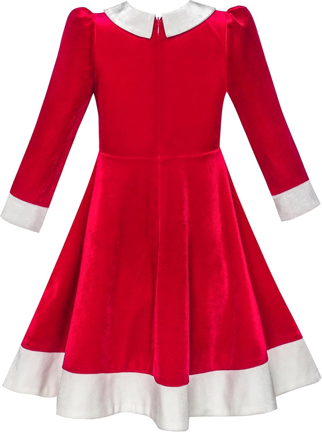 - Sunny Fashion Girls Dress Christmas Hat Red Velvet Long Sleeve Holiday Size 4-14(Red White Collar)
