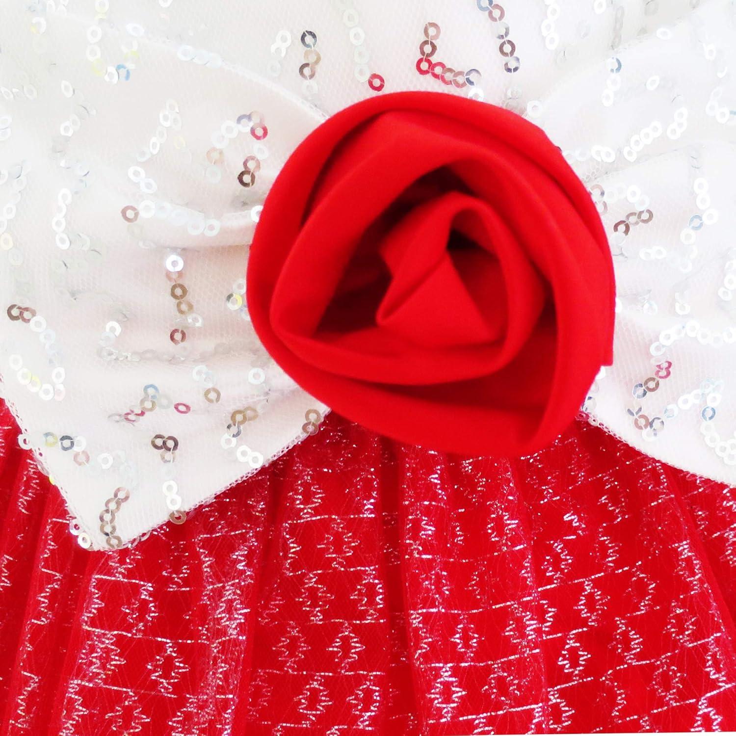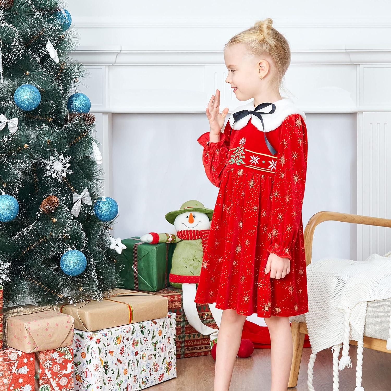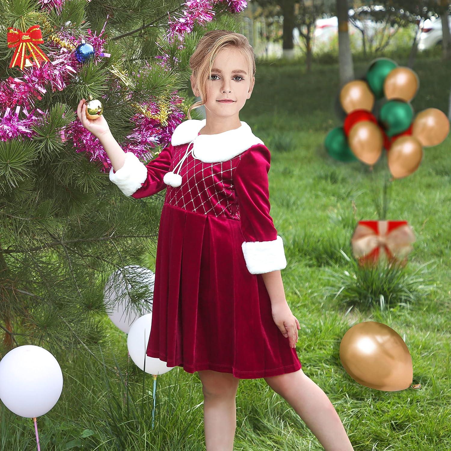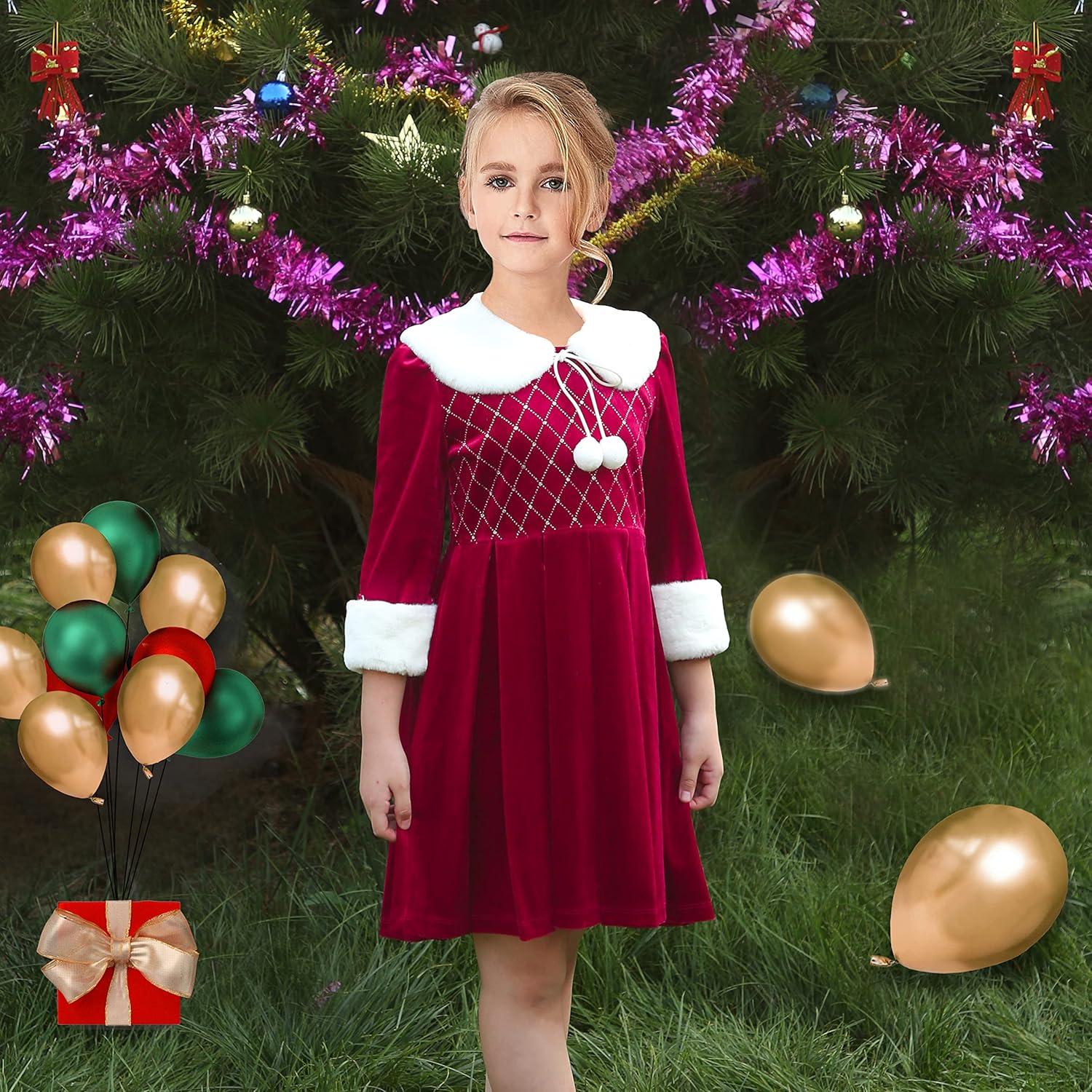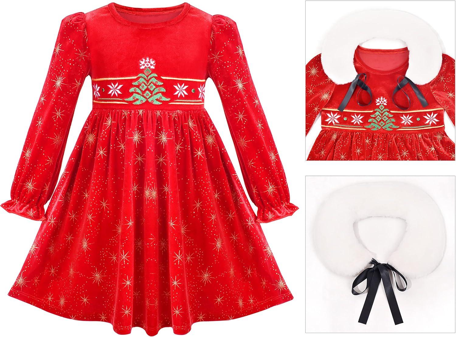 - Sunny Fashion Girls Dress Christmas Hat Red Velvet Long Sleeve Holiday Size 4-14(Red White Collar)
