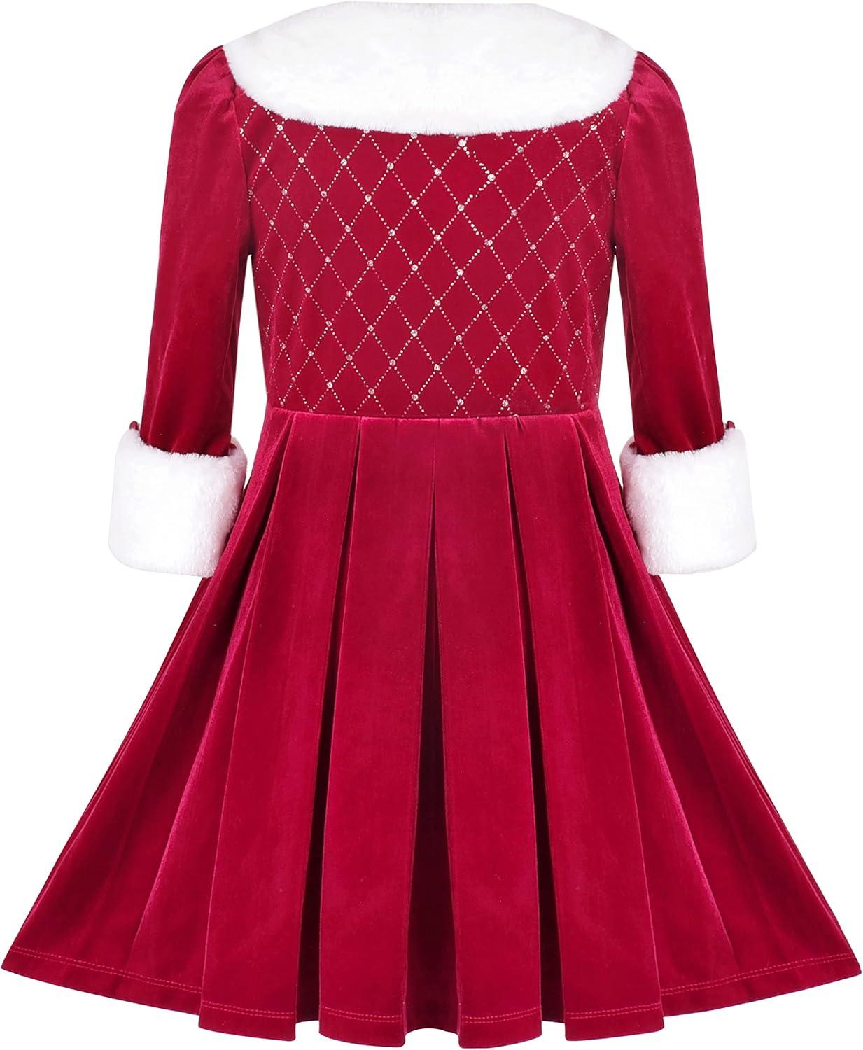 - Sunny Fashion Girls Dress Christmas Hat Red Velvet Long Sleeve Holiday Size 4-14(Red White Cuff)