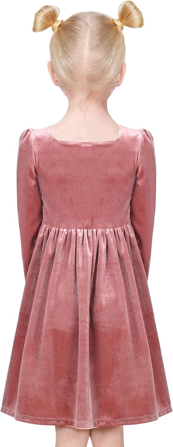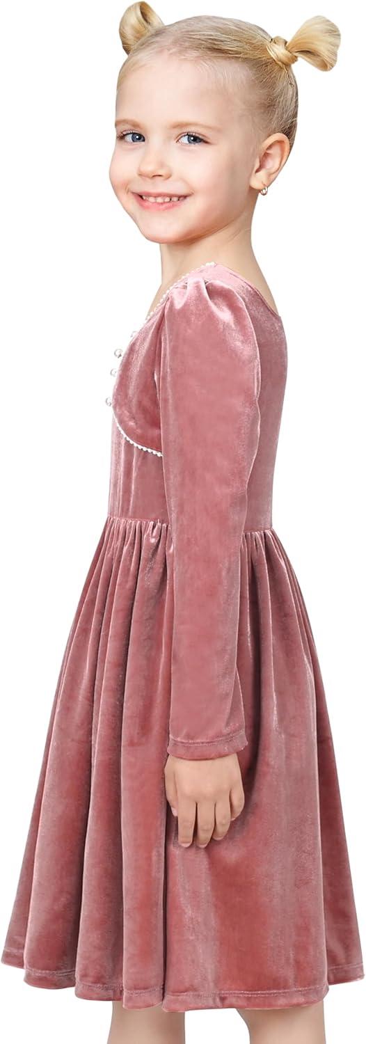 - Sunny Fashion Girls Dress Christmas Hat Red Velvet Long Sleeve Holiday Size 4-14(Salmon Pink Velvet)