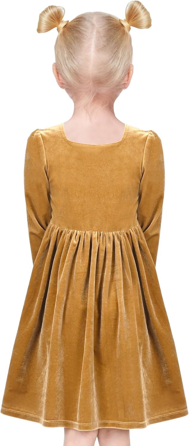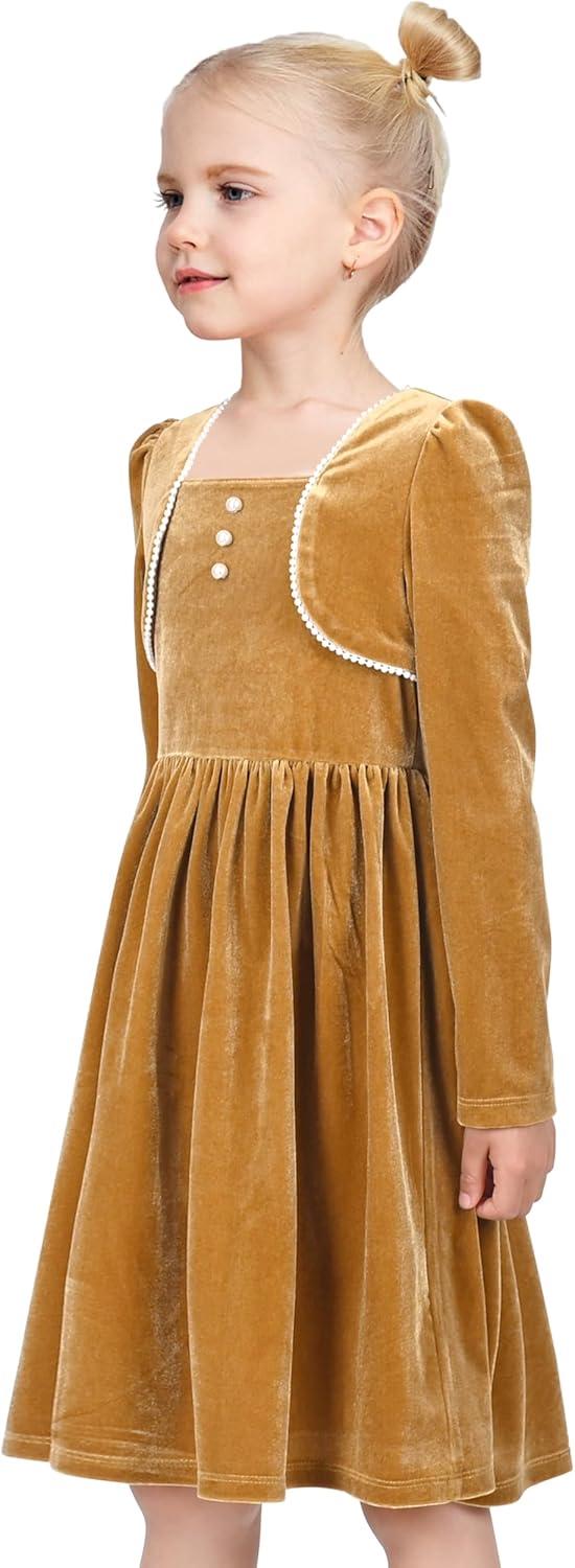 - Sunny Fashion Girls Dress Christmas Hat Red Velvet Long Sleeve Holiday Size 4-14(Yellow Velvet)