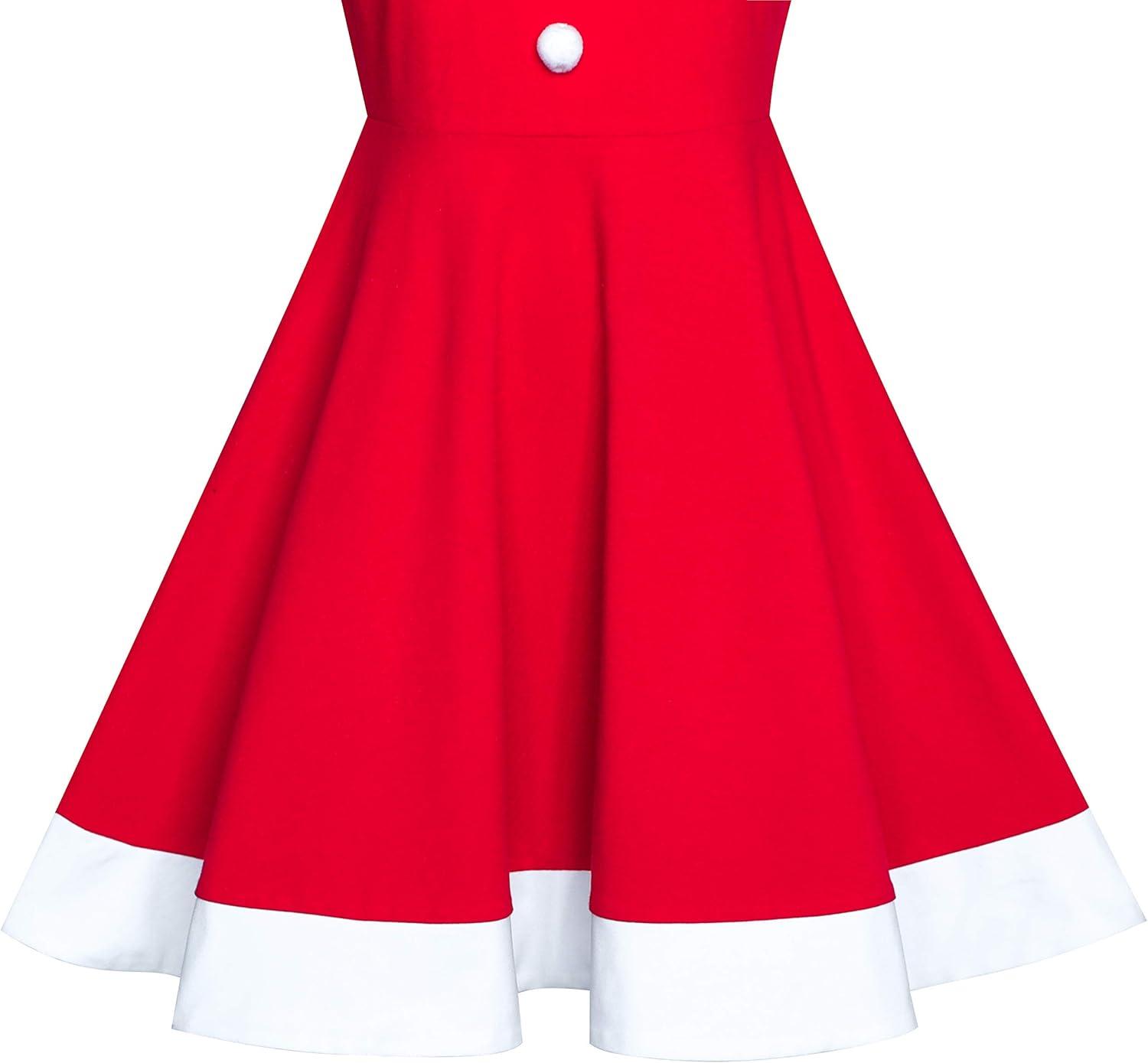 - Sunny Fashion Girls Dress Christmas Santa Hat Long Sleeve Party New Year(Red White)