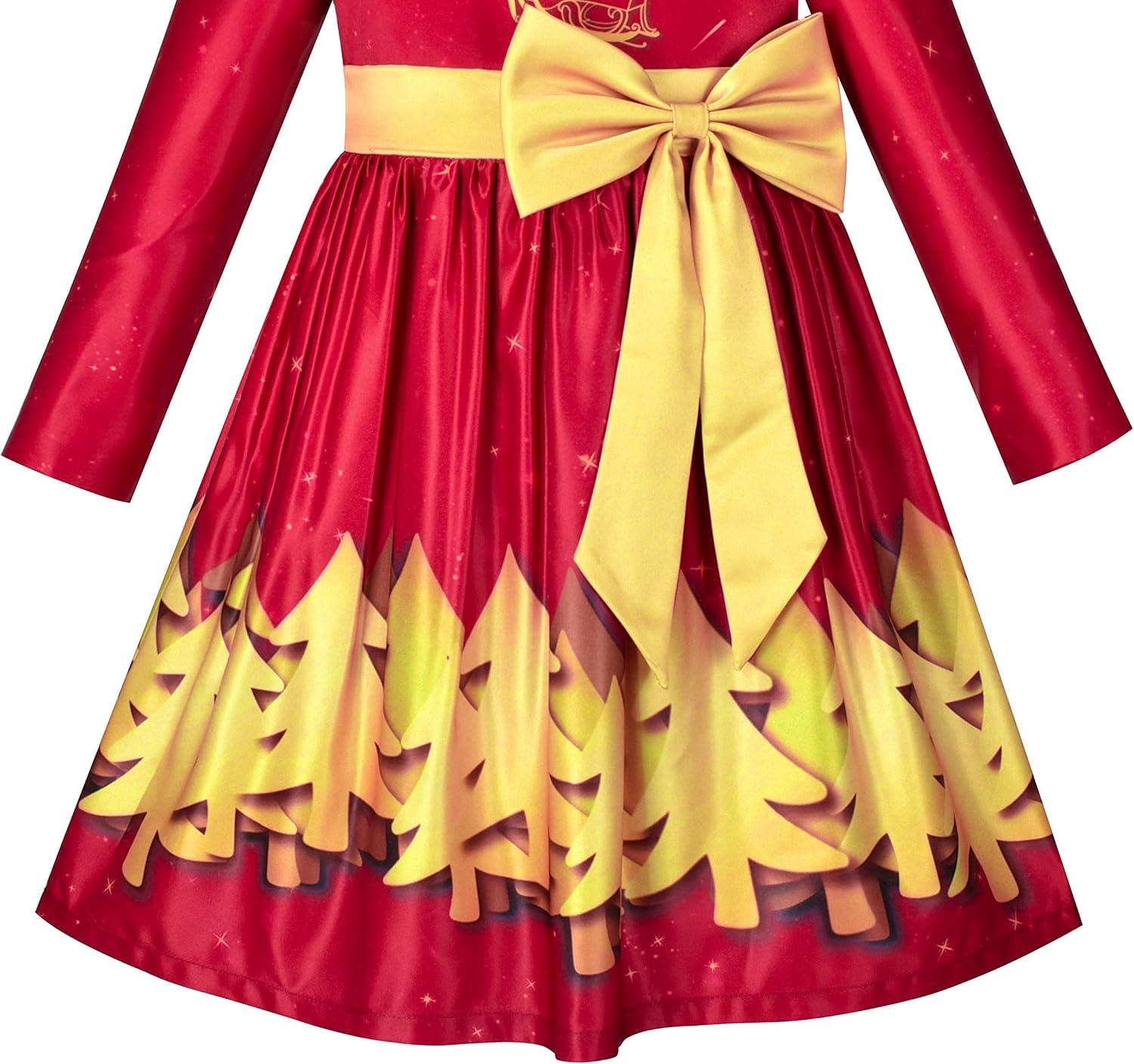 - Sunny Fashion Girls Dress Fit & Flare Glitter Jacquard Christmas Holiday(Red Reindeer)