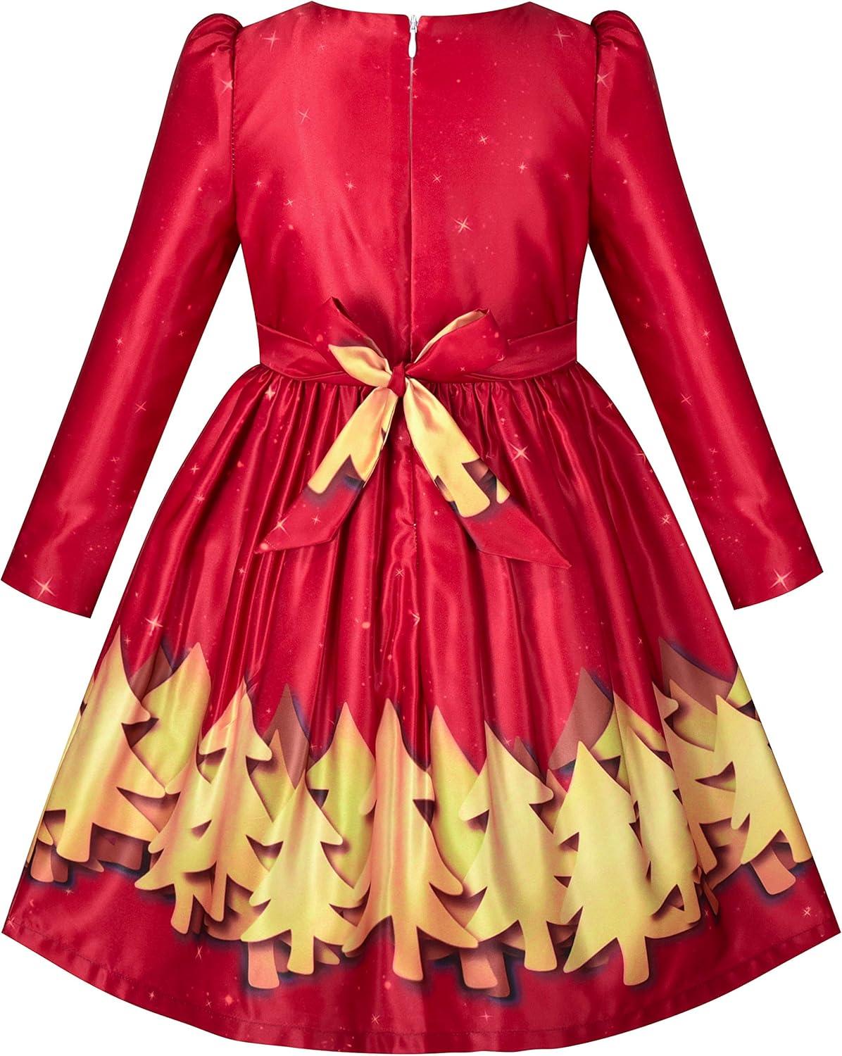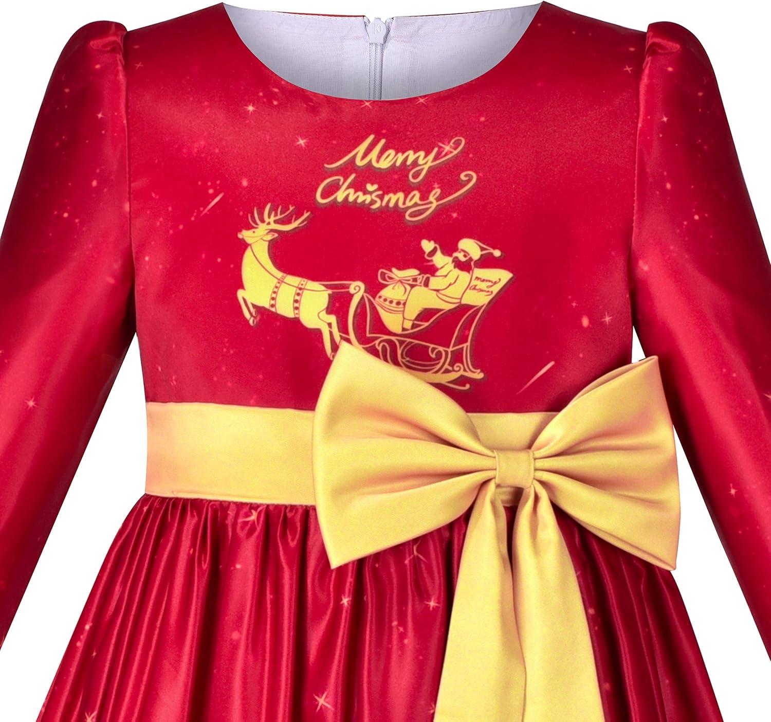 - Sunny Fashion Girls Dress Christmas Santa Hat Long Sleeve Party New Year(Red)