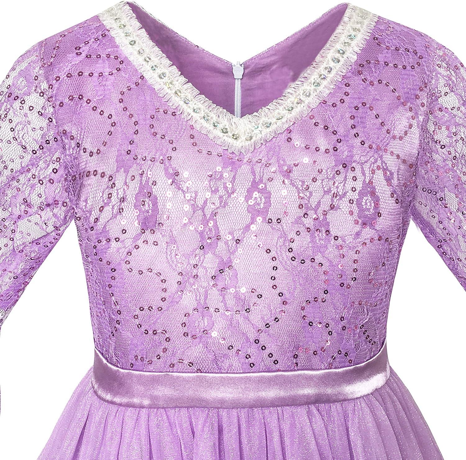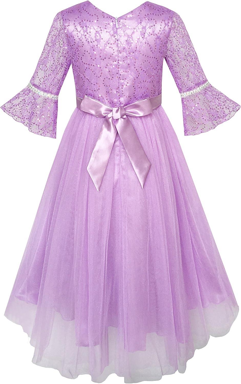 - Sunny Fashion Flower Girl Dress Lace Sequin Flare Pink Wedding Party Size 5-12(Purple)