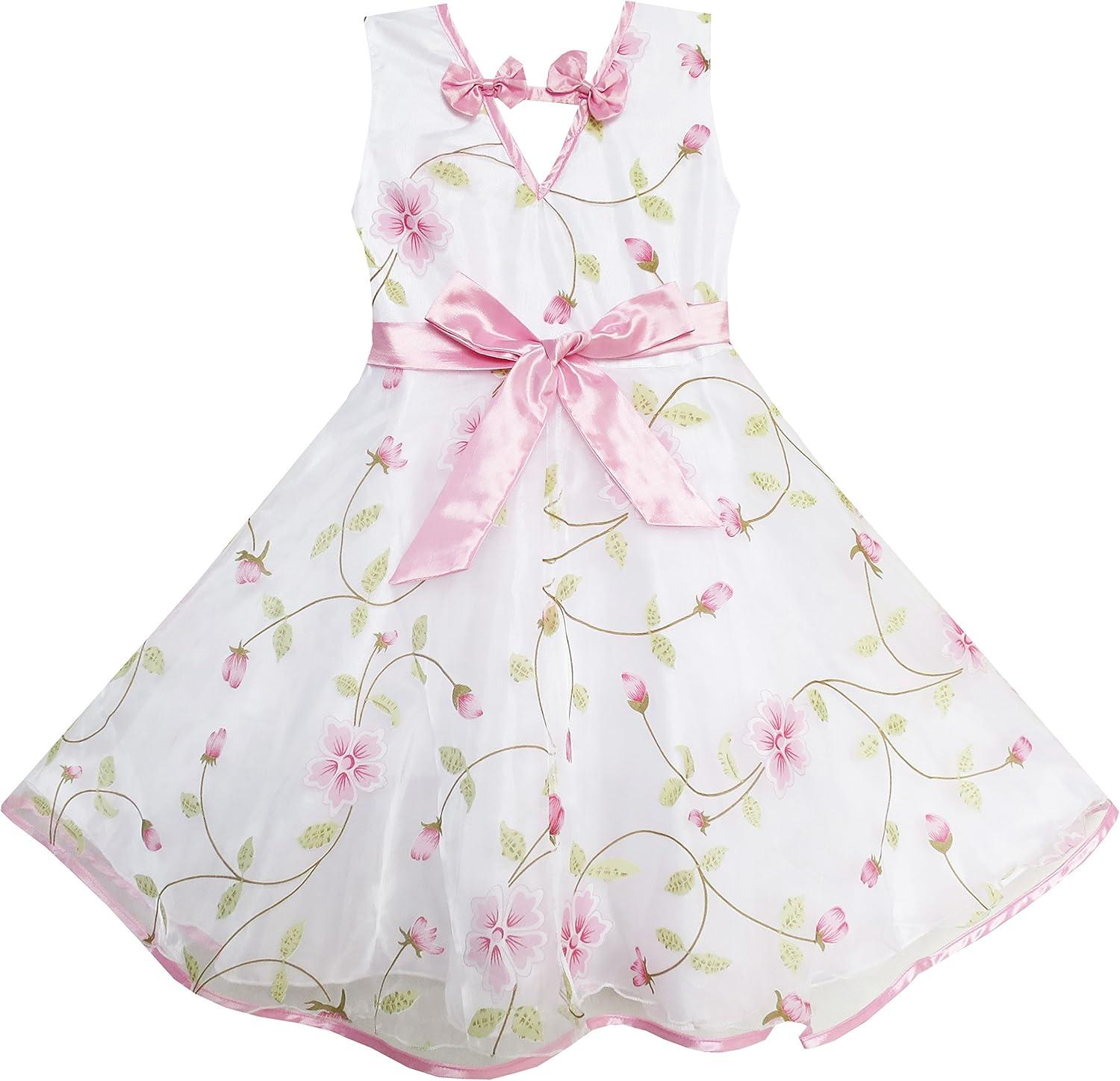 - Sunny Fashion Girls Dress White Pink Flower Wedding Bridesmaid Holiday
