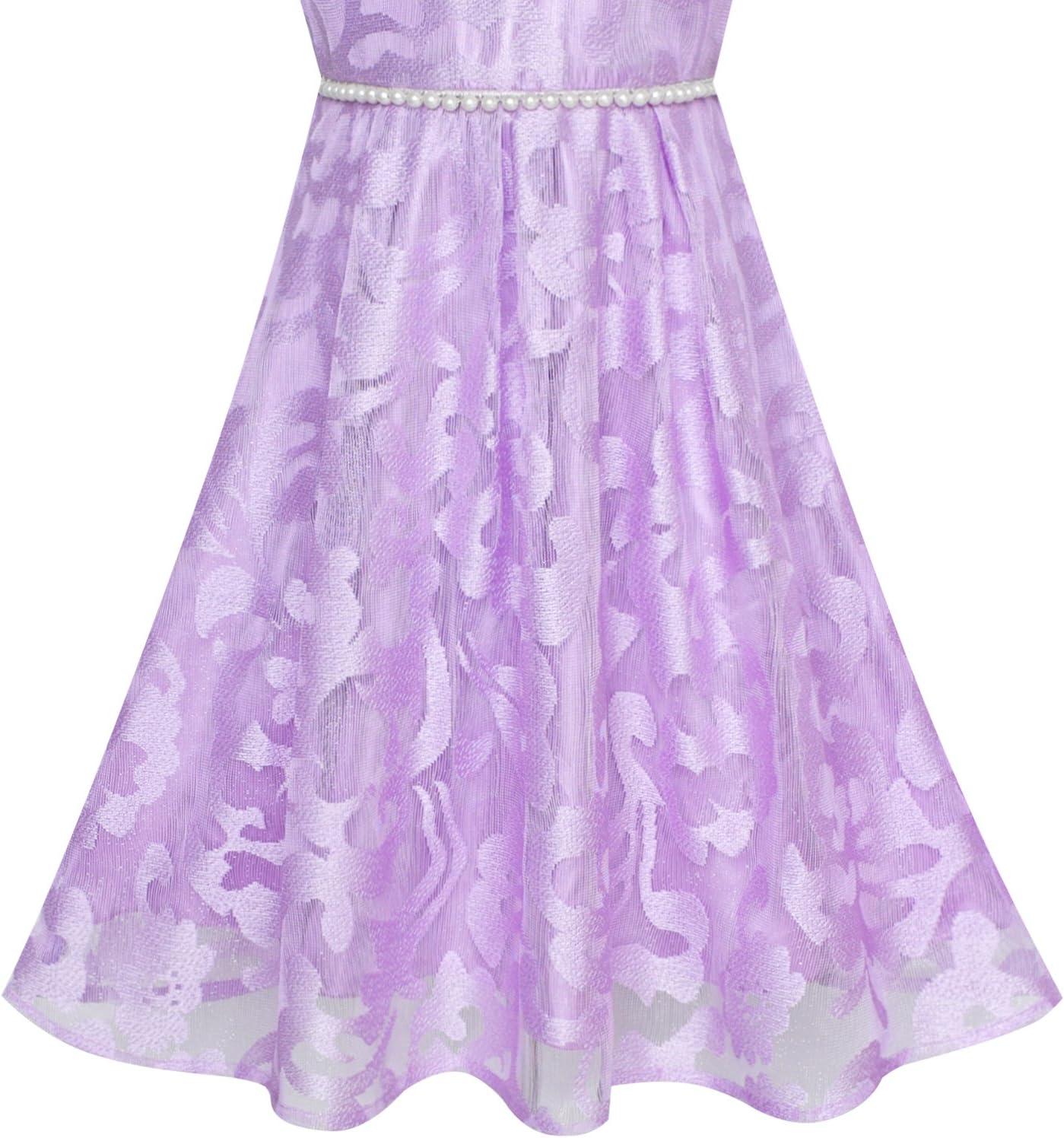 - Sunny Fashion Girls Dress Purple Lace Pearl Wedding Bridesmaid Gown Size 6-12